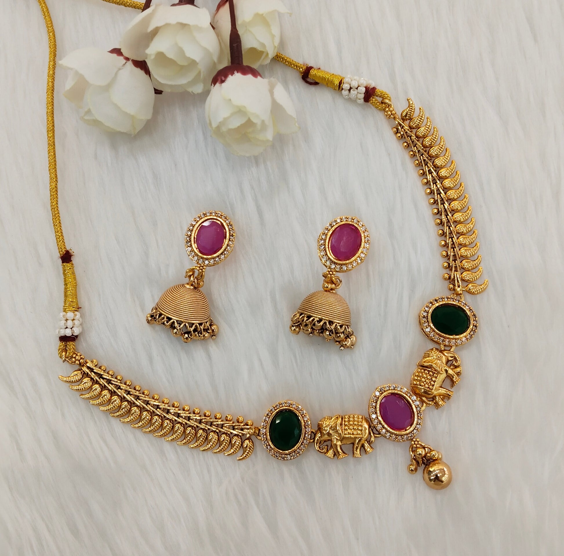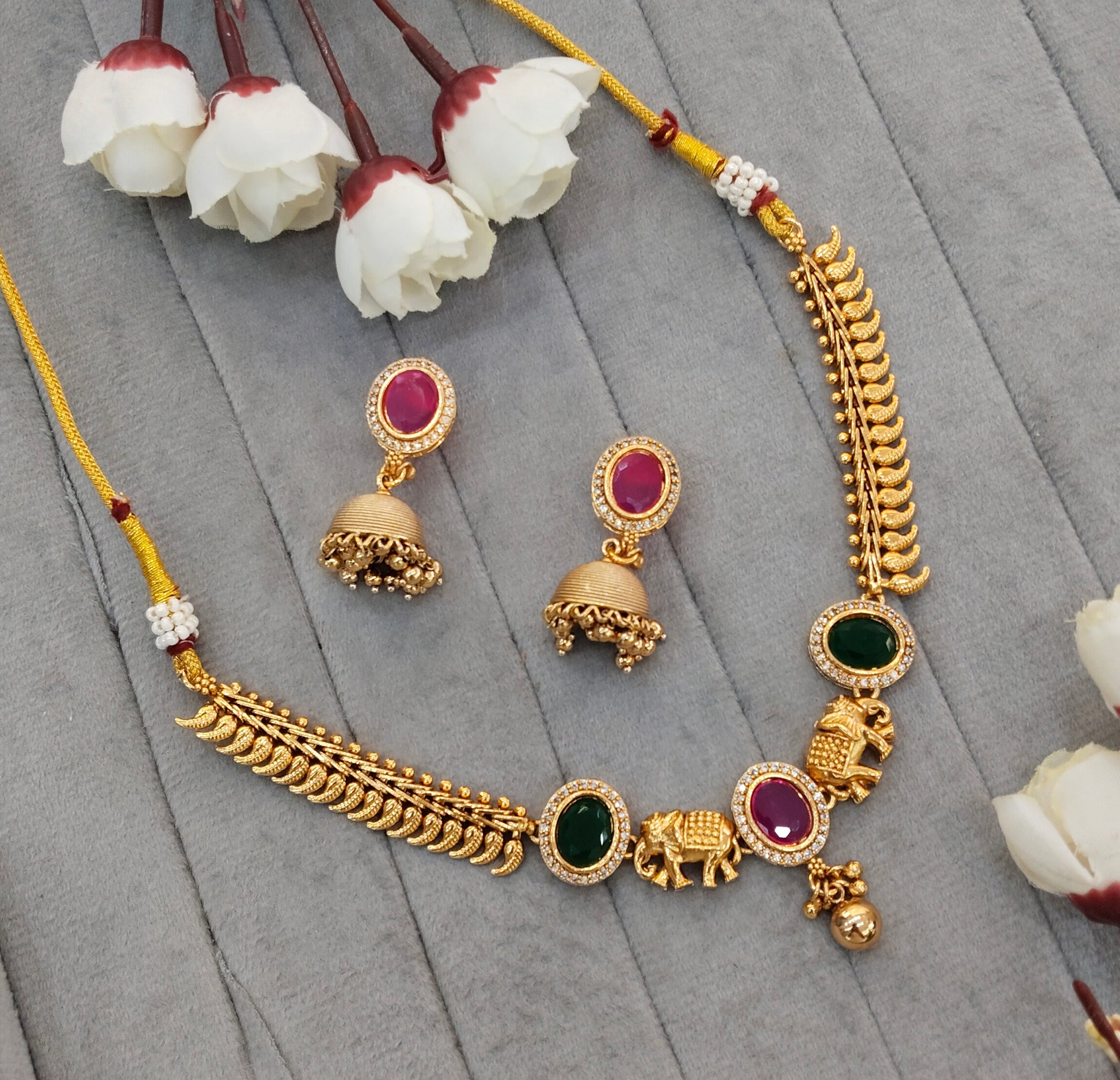 Ruby Green Gold Polki Necklace Jewellery Mulajam Set