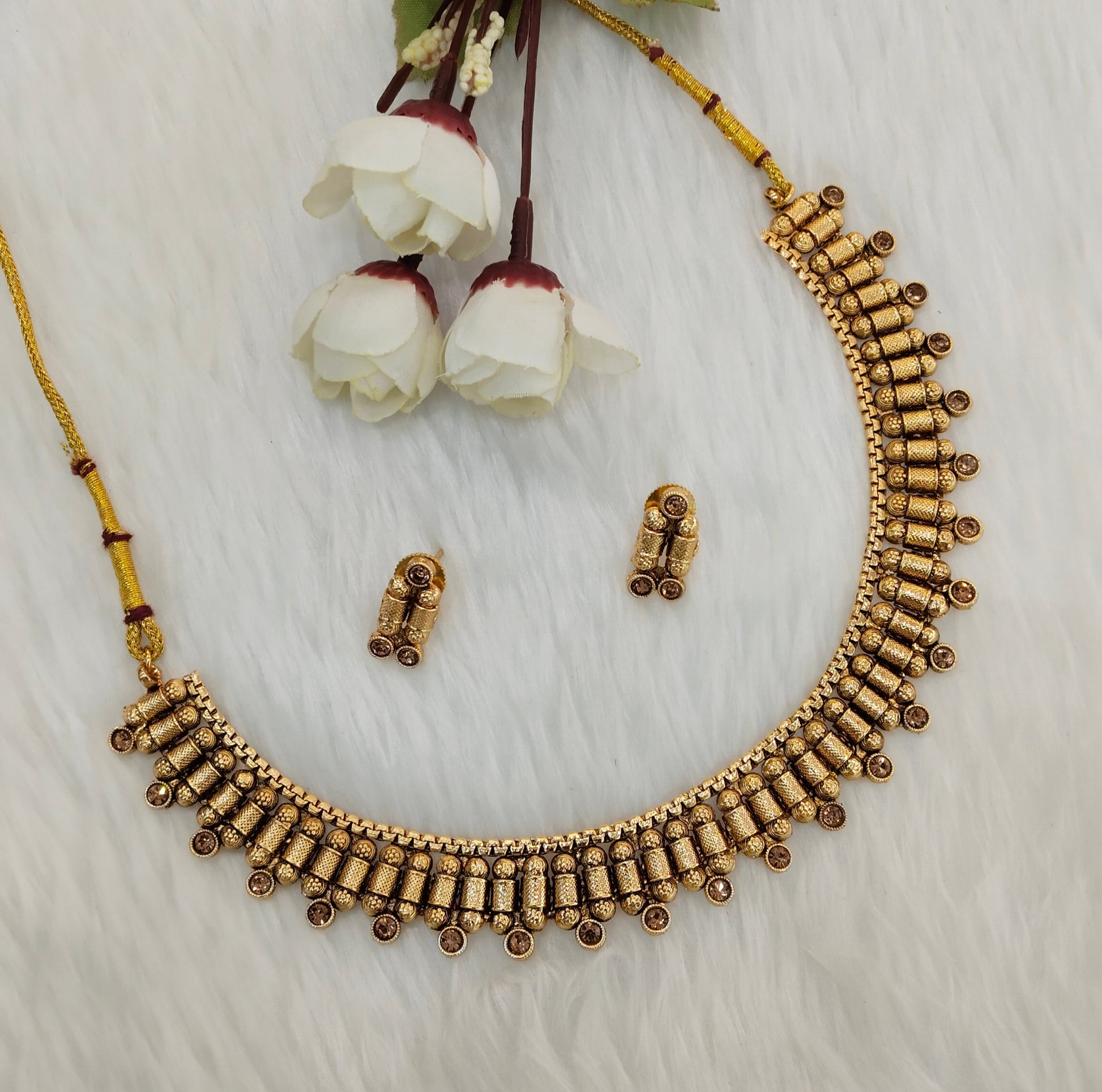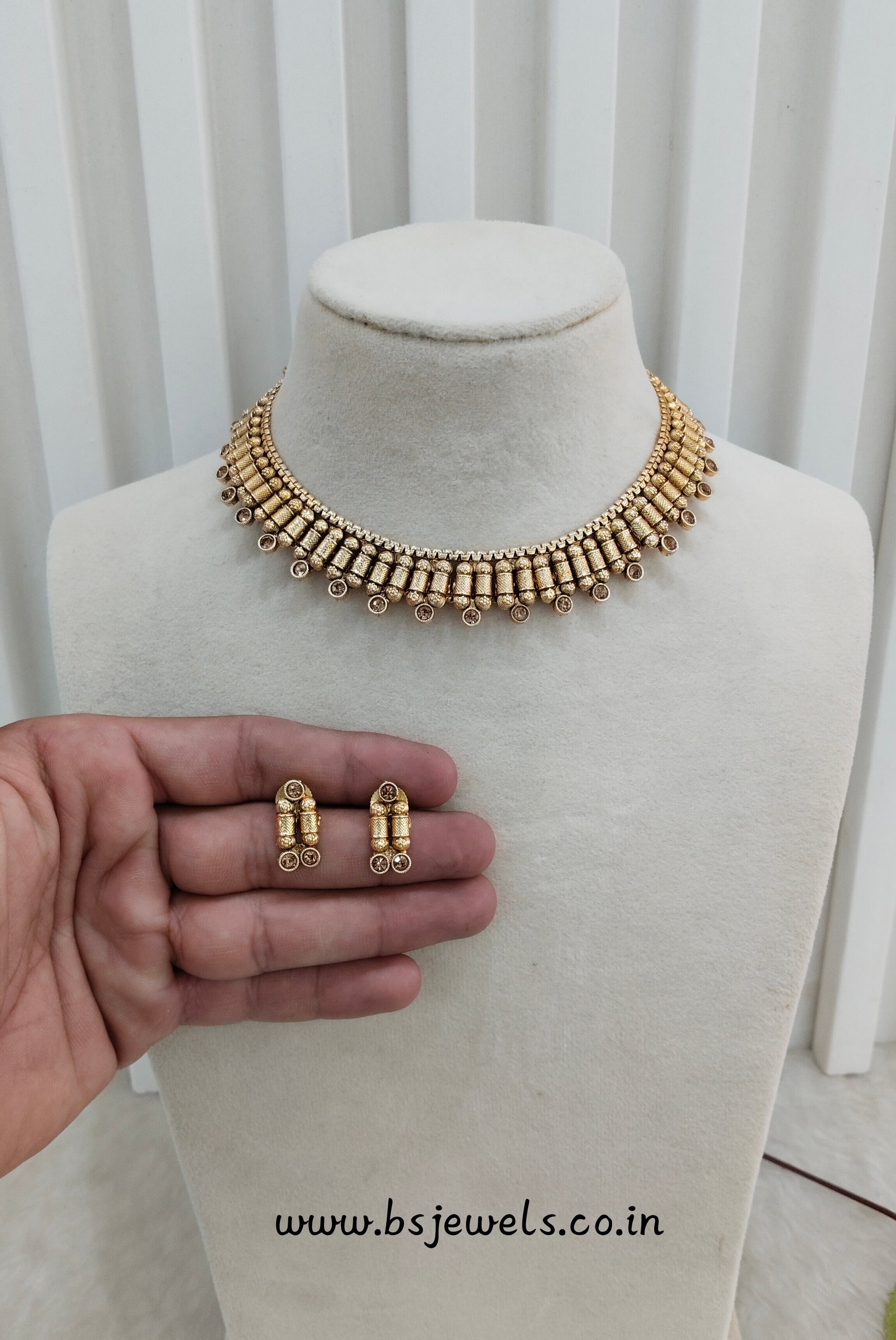 * Gold Finish Polki Necklace Set with earrings as shown in the pic.