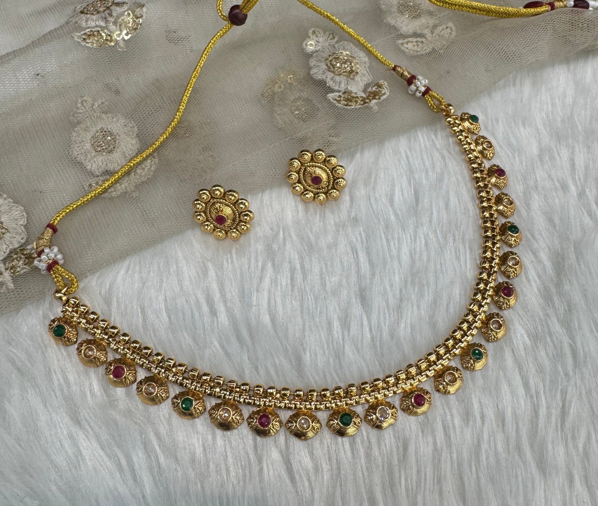 Ruby Green Gold Polki Necklace Jewellery Pawan Set