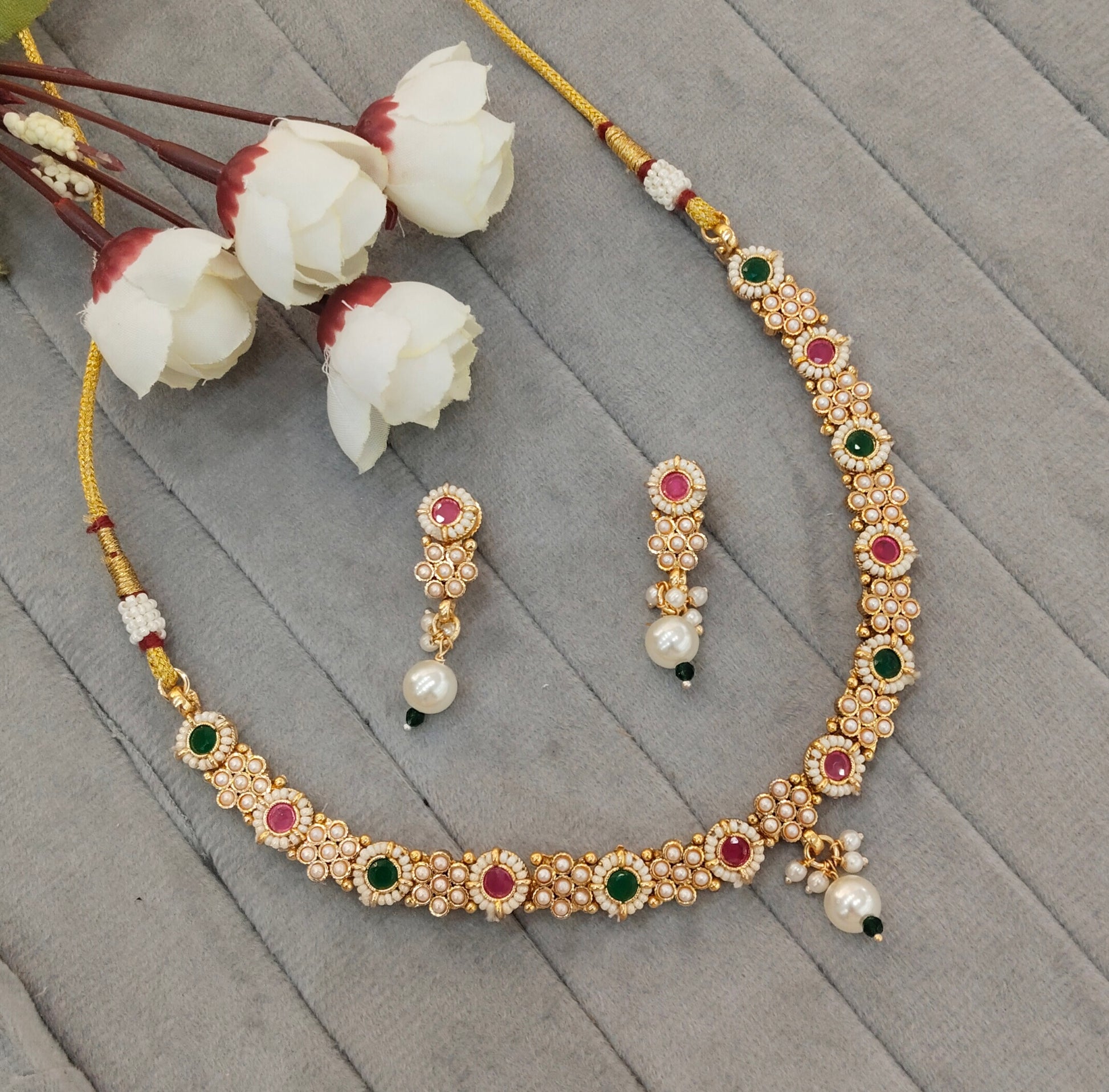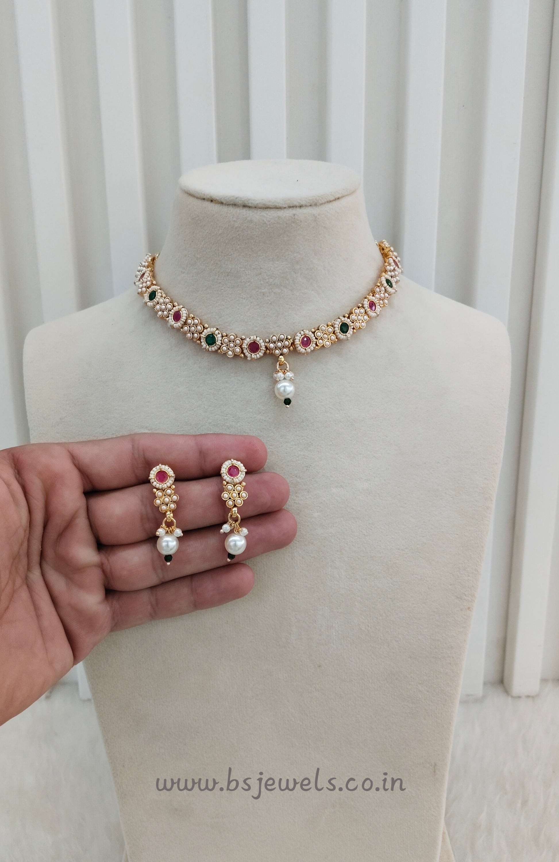 Ruby Green Gold Polki Necklace Jewellery Pawan Set