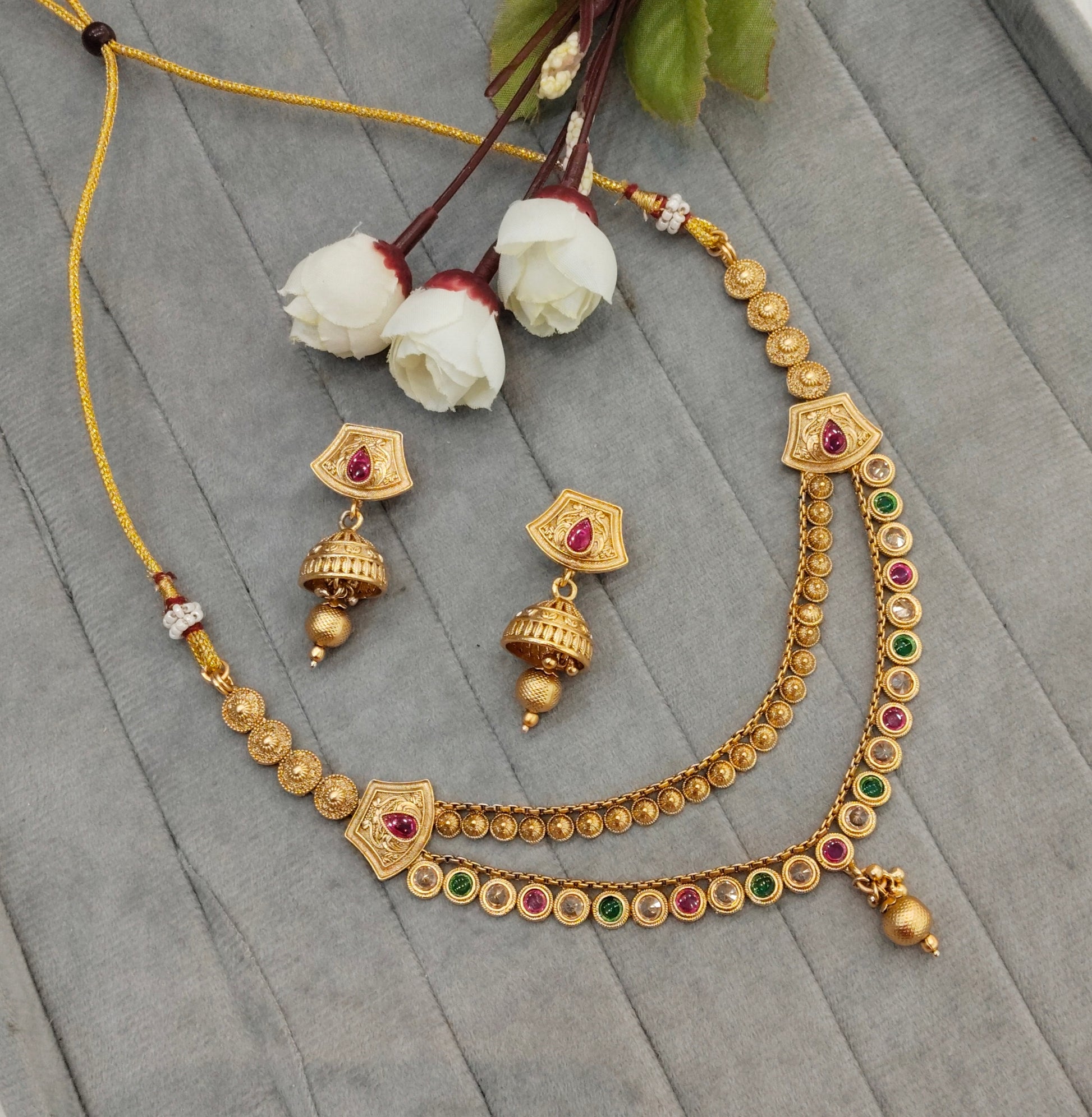 Ruby Green Gold Polki Necklace Jewellery Pawan Set