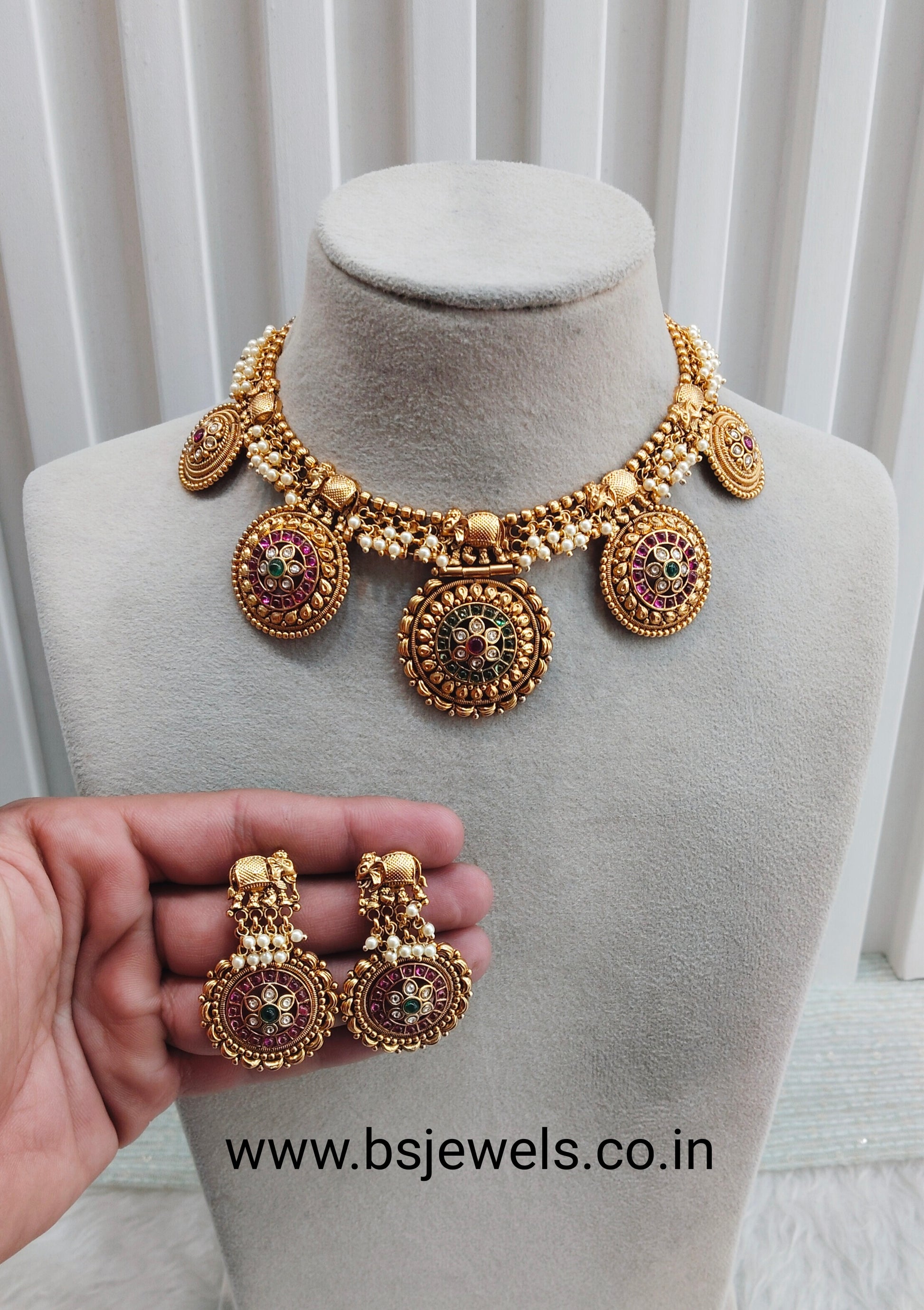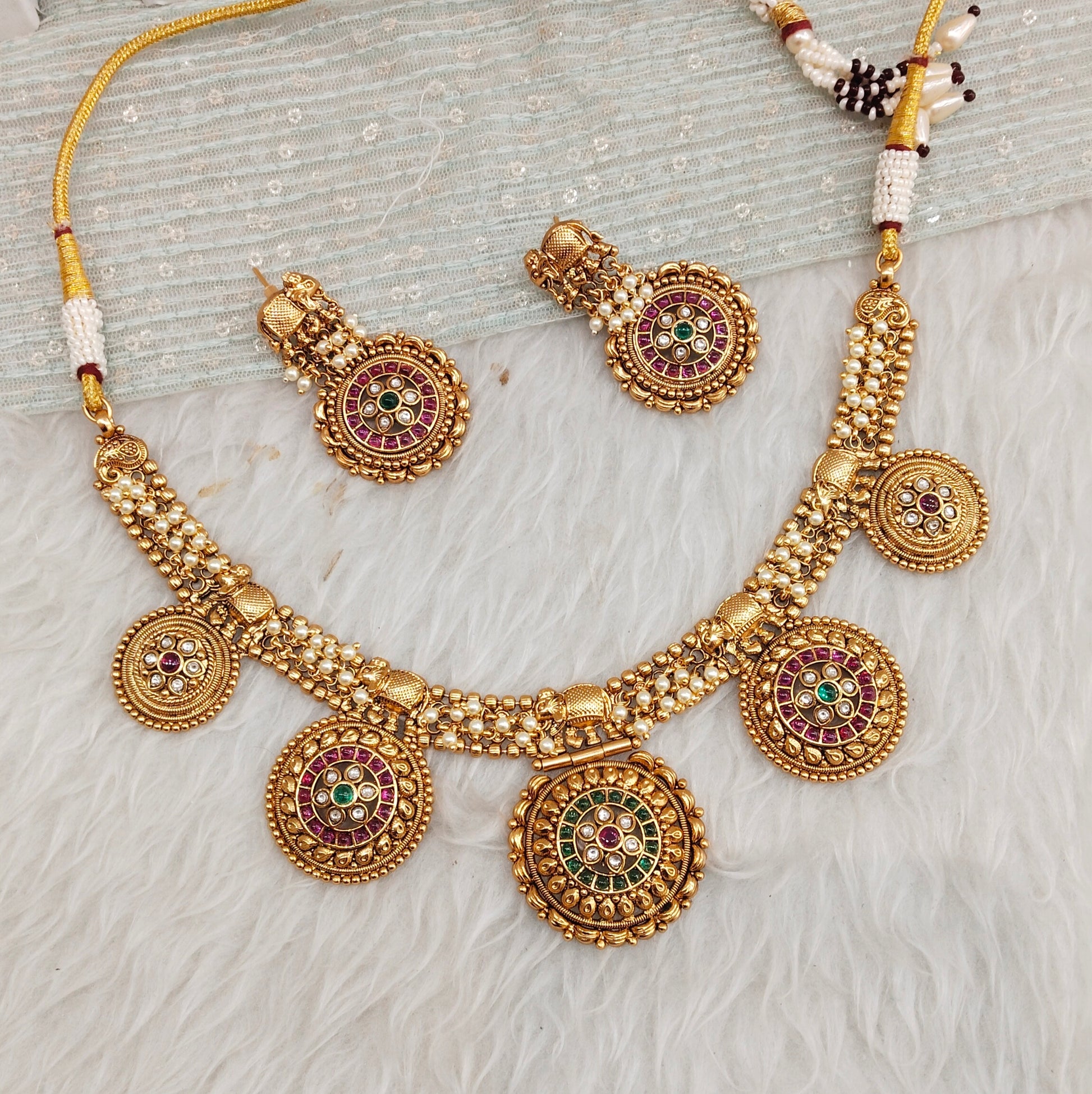 Ruby Green Gold Polki Necklace Jewellery Rana Set