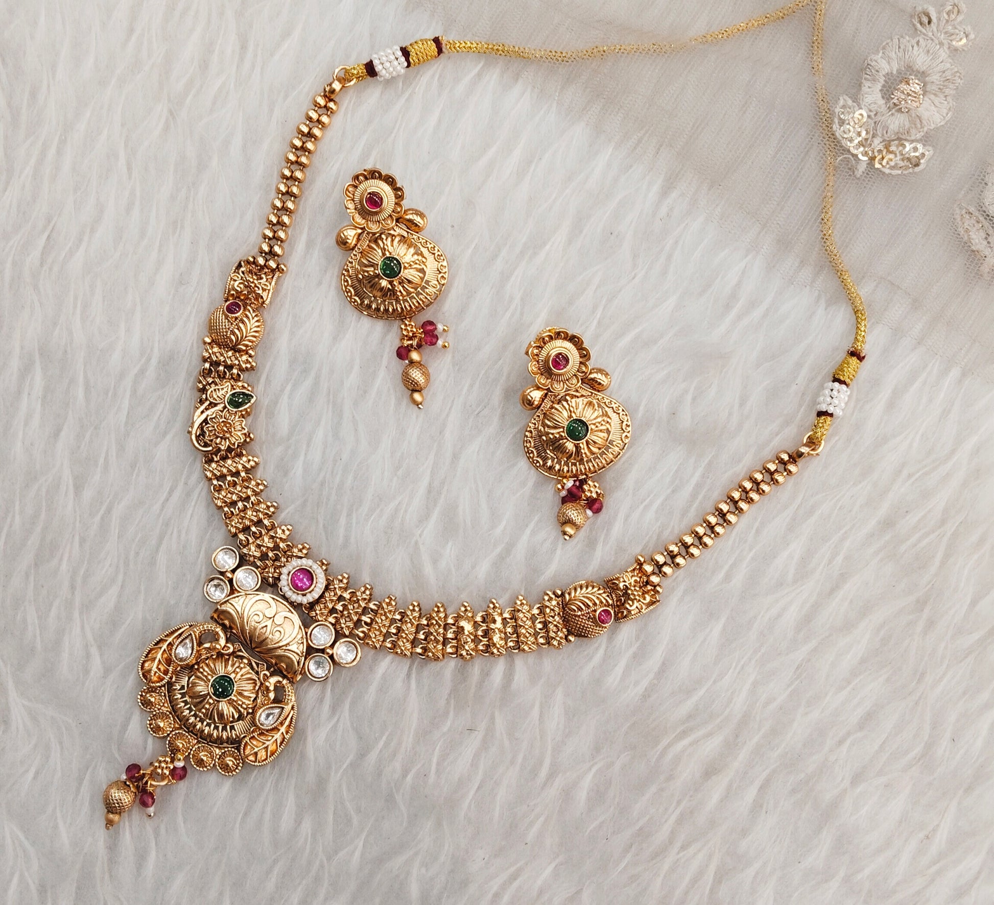 * Gold Finish Polki Necklace Set with earrings as shown in the pic.