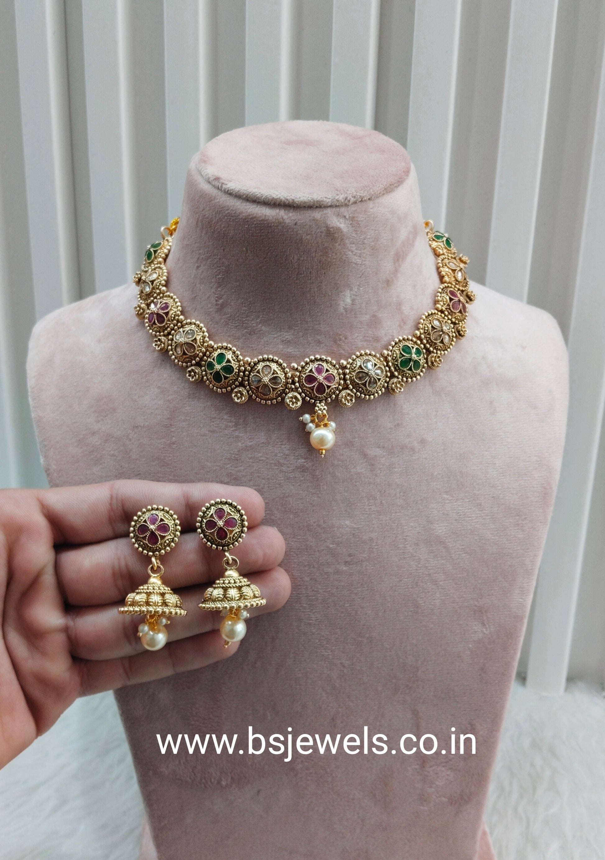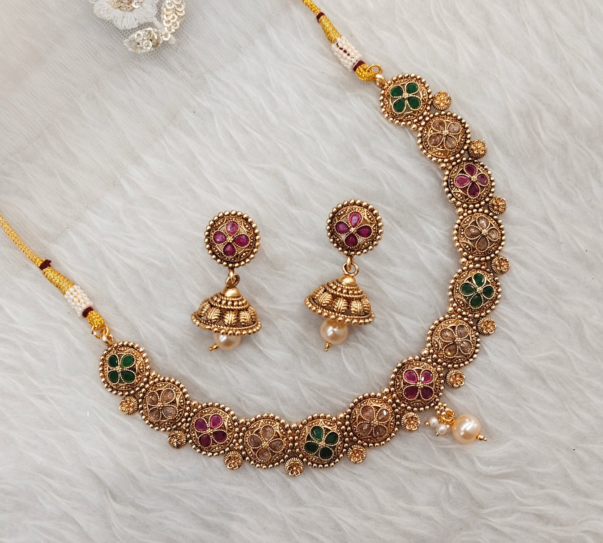 * Gold Finish Polki Necklace Set with earrings as shown in the pic.