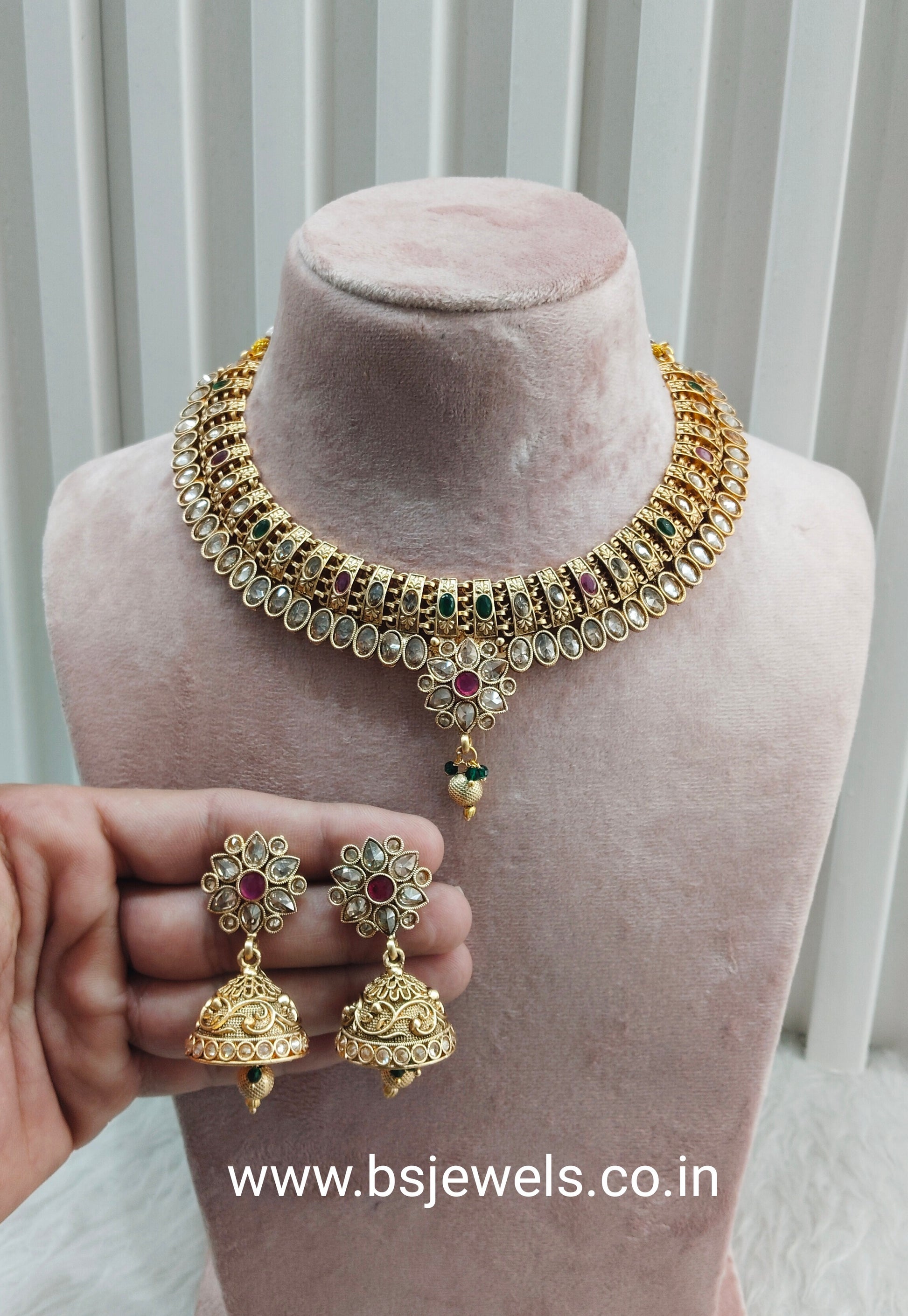 * Gold Finish Polki Necklace Set with earrings as shown in the pic.
