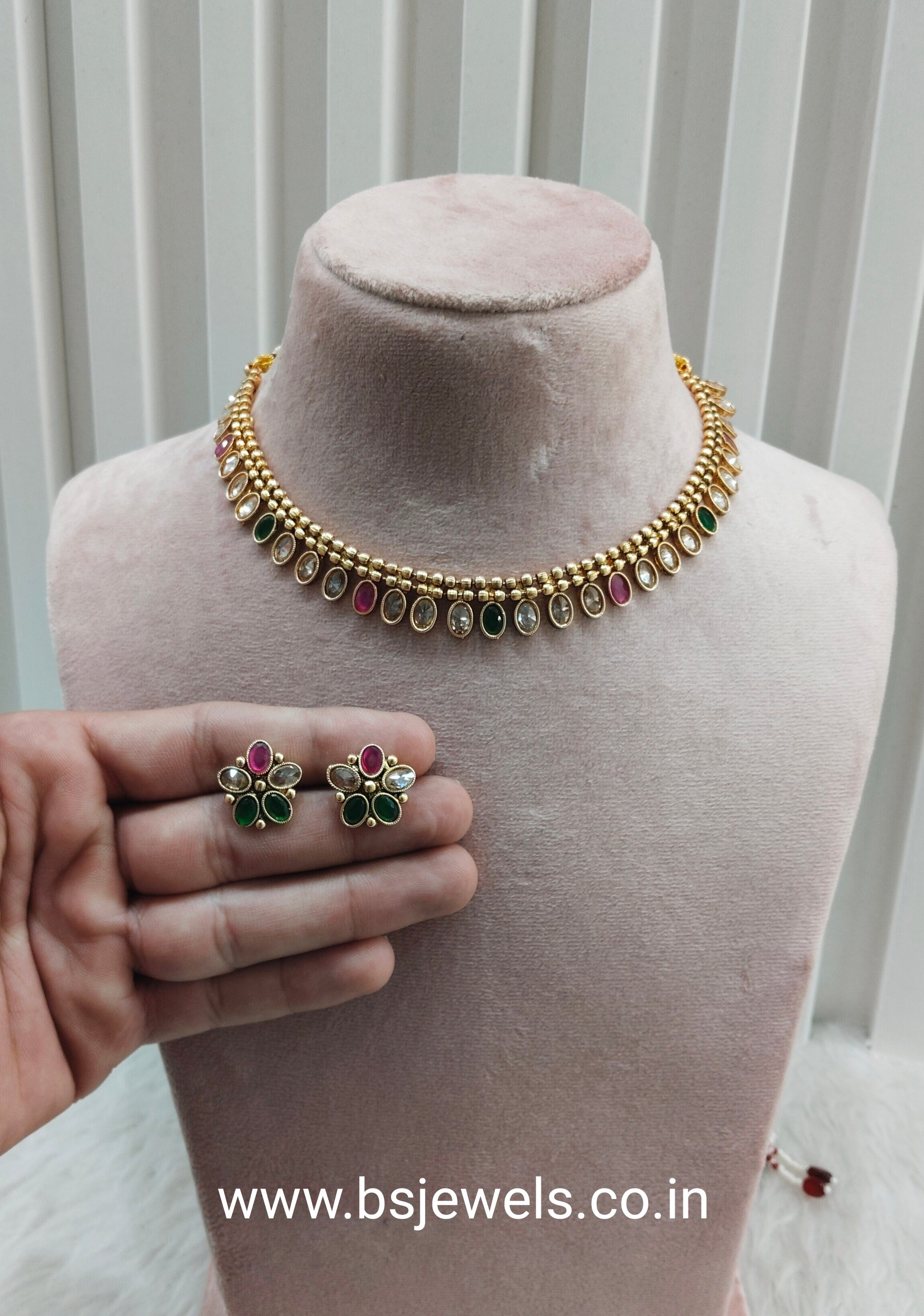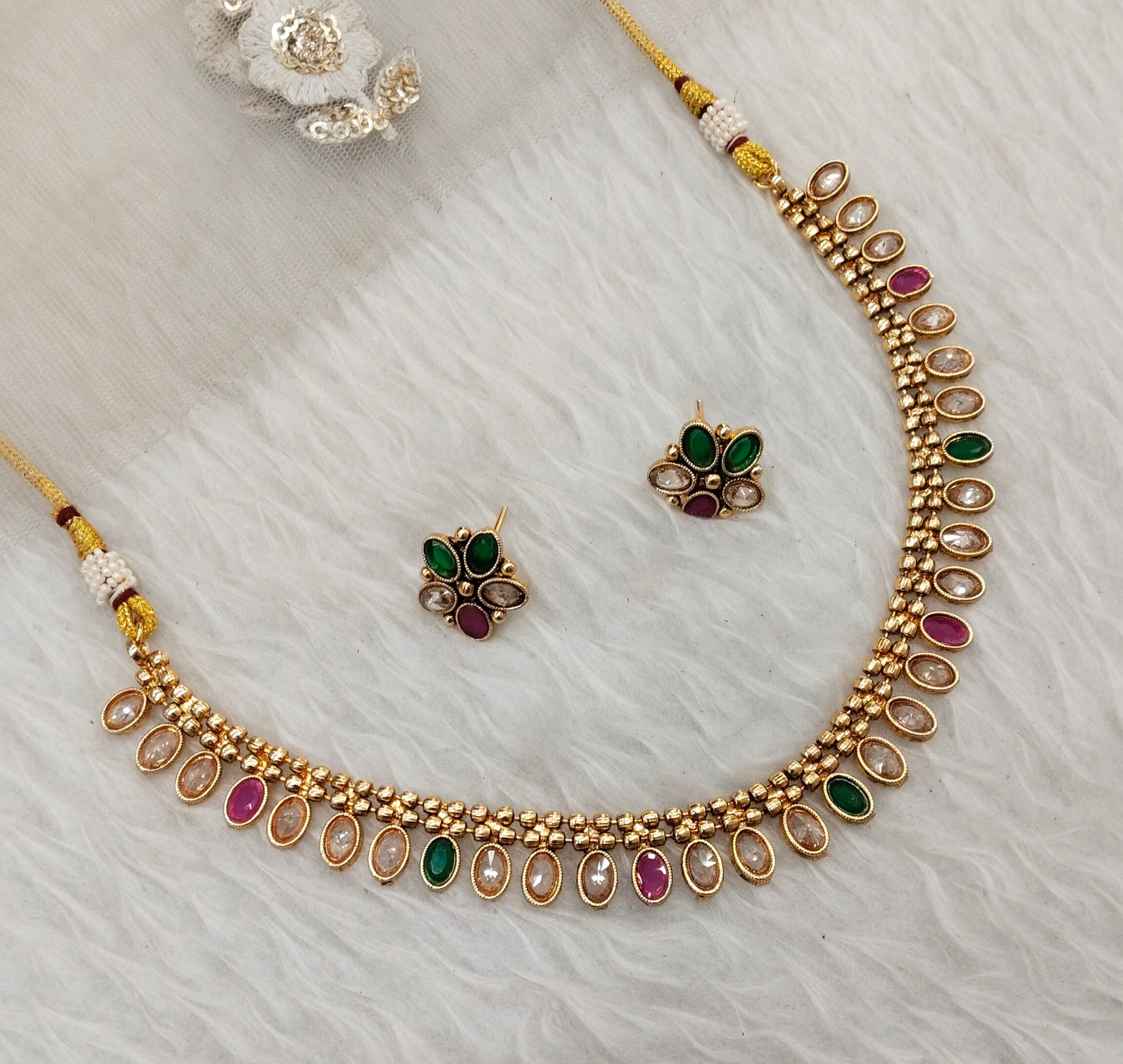 * Gold Finish Polki Necklace Set with earrings as shown in the pic.