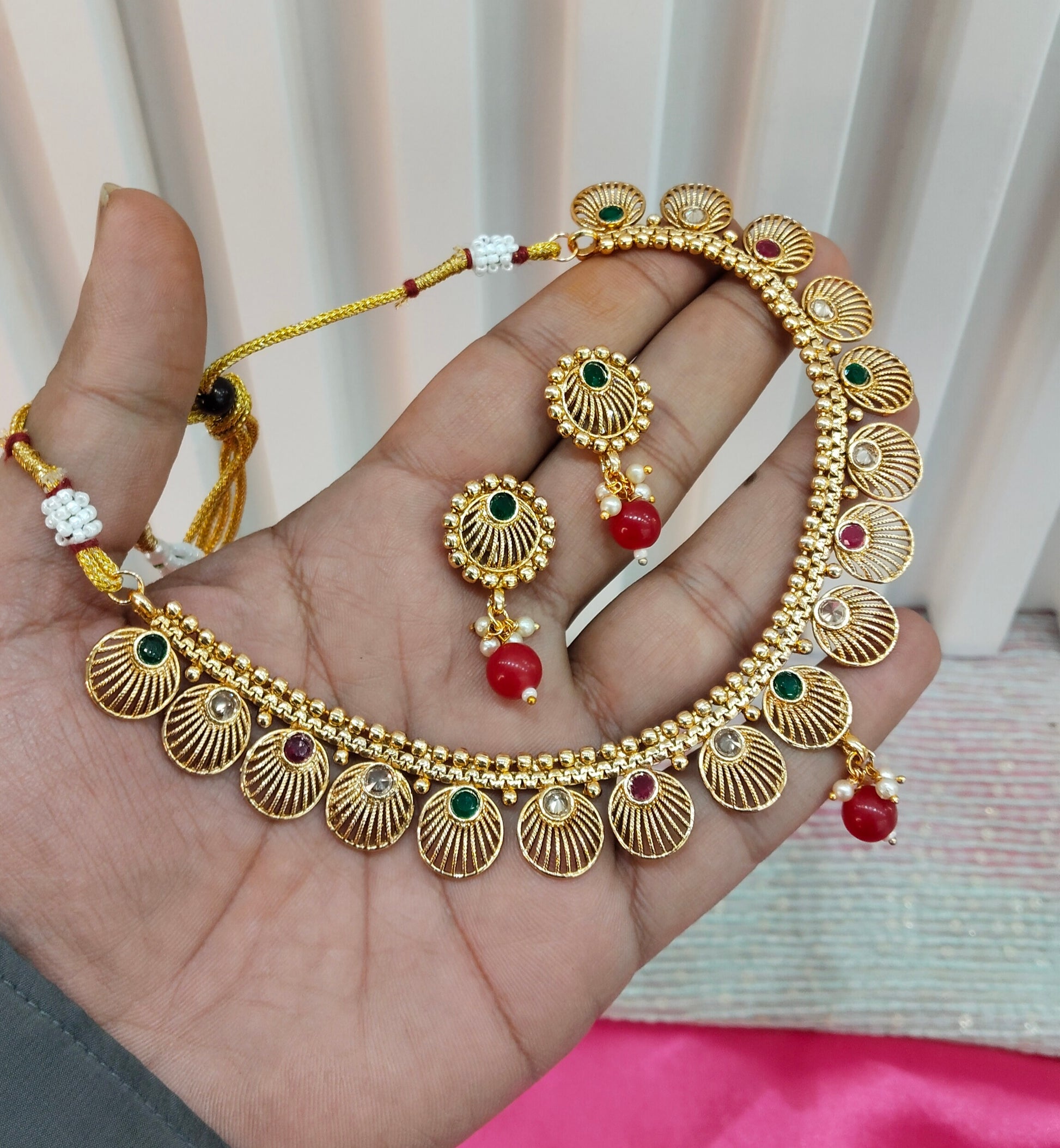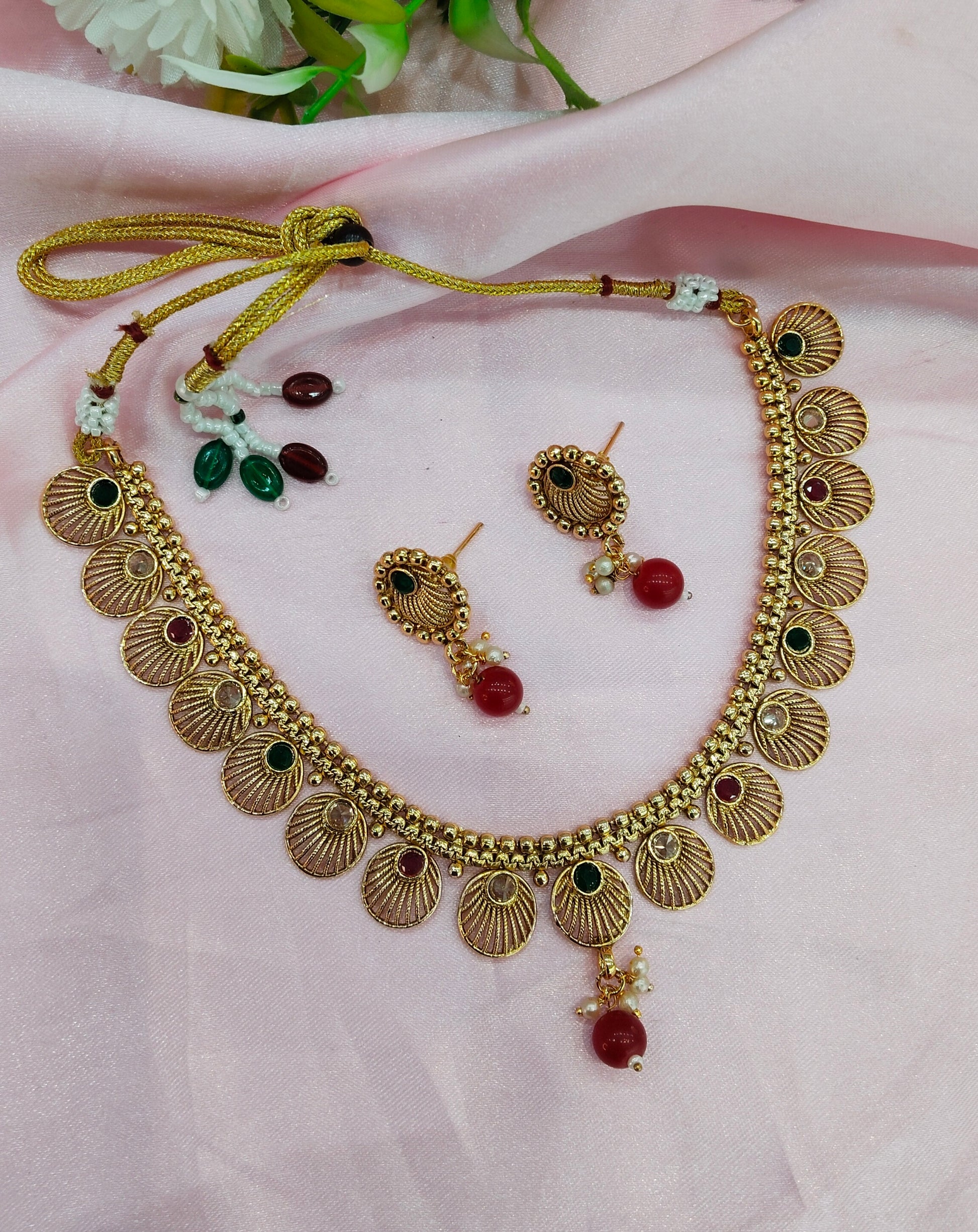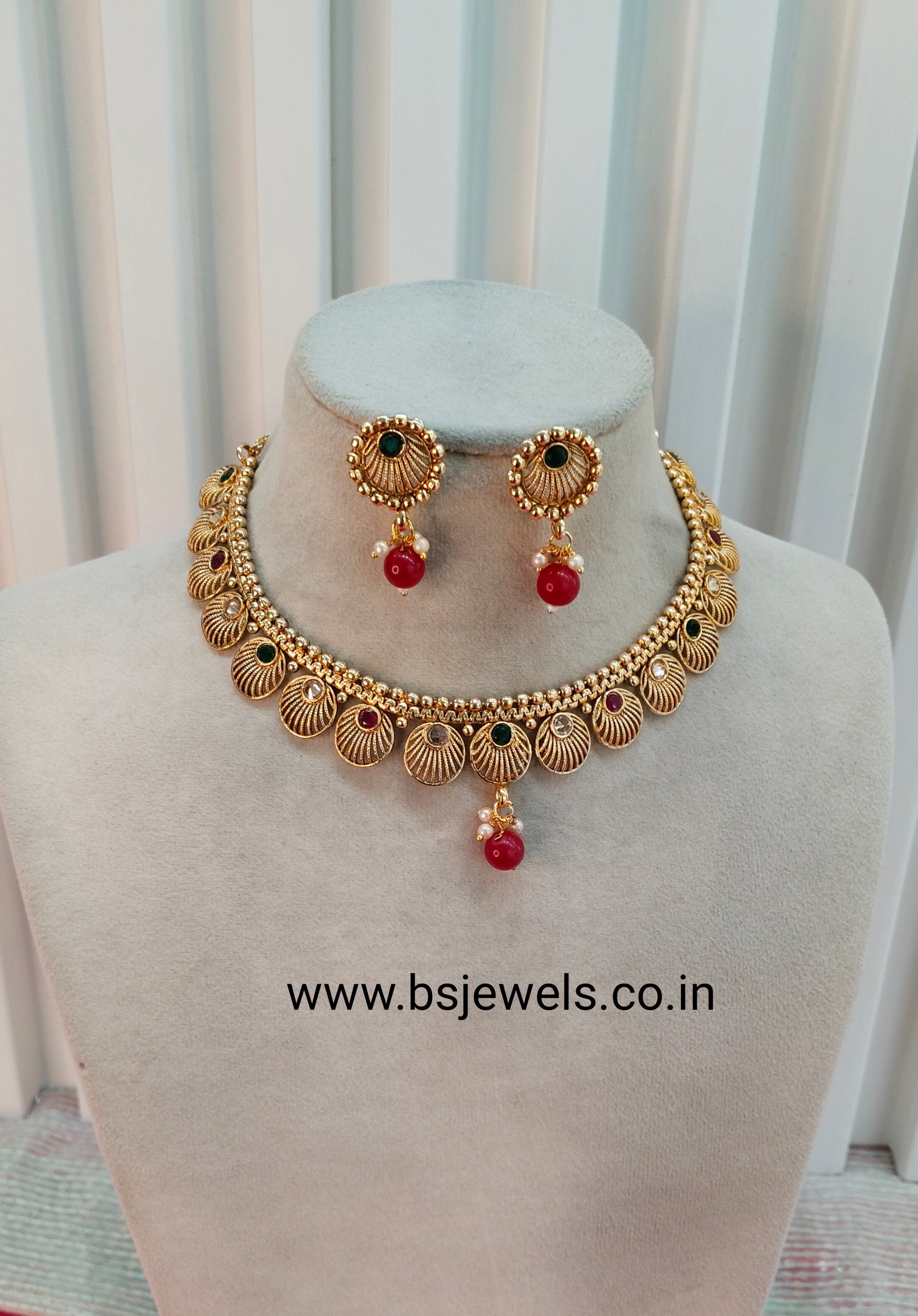 Ruby Green Gold Polki Necklace Jewellery Studio Set