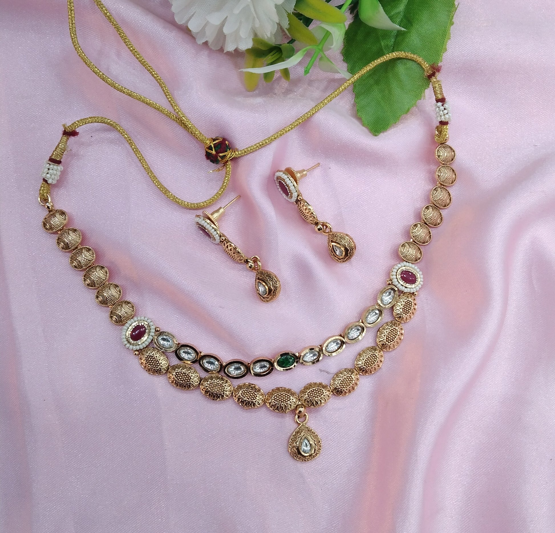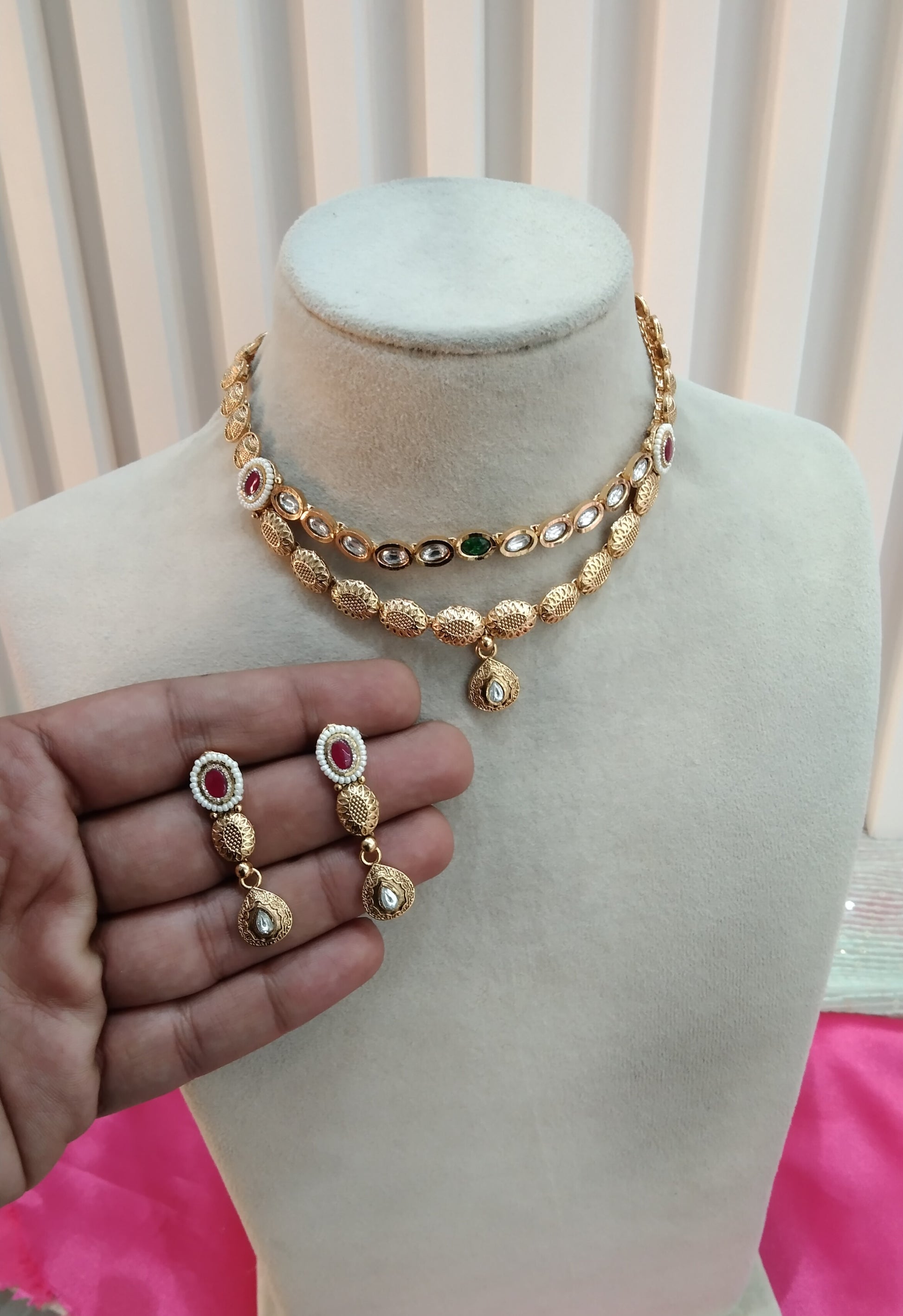 Ruby Green Gold Polki Necklace Jewellery Studio Set