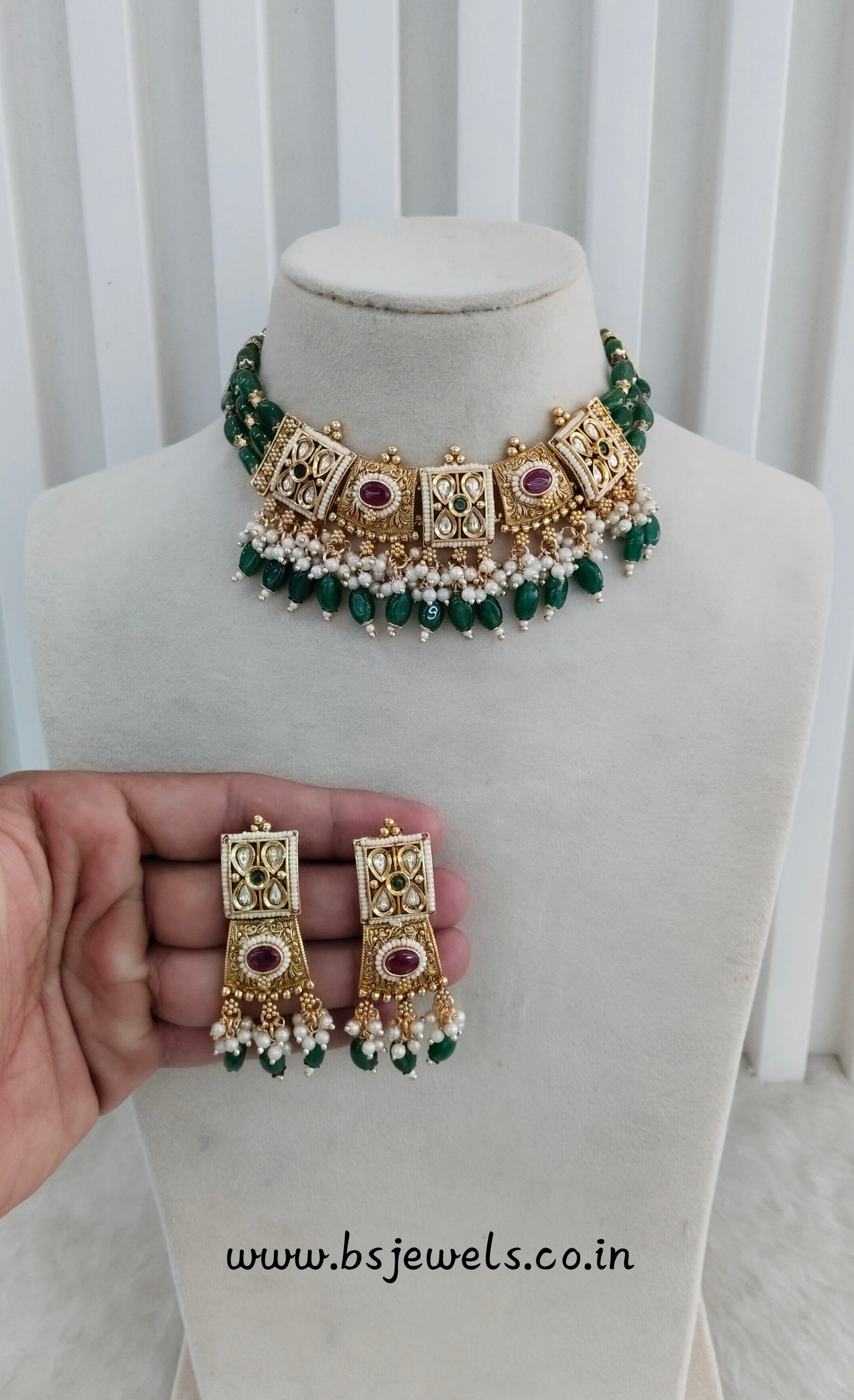 Ruby Green Gold Polki Necklace Jewellery Udham Set