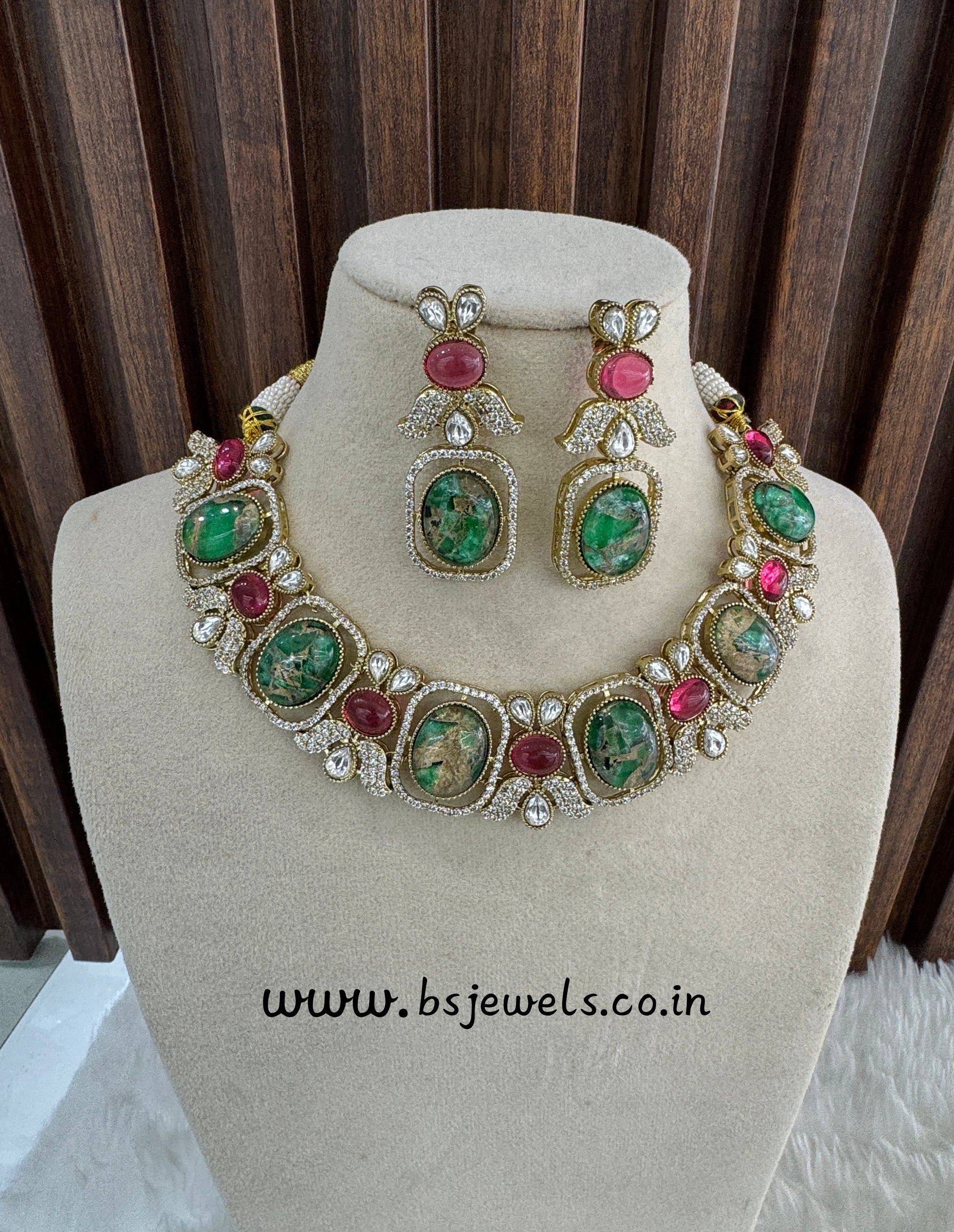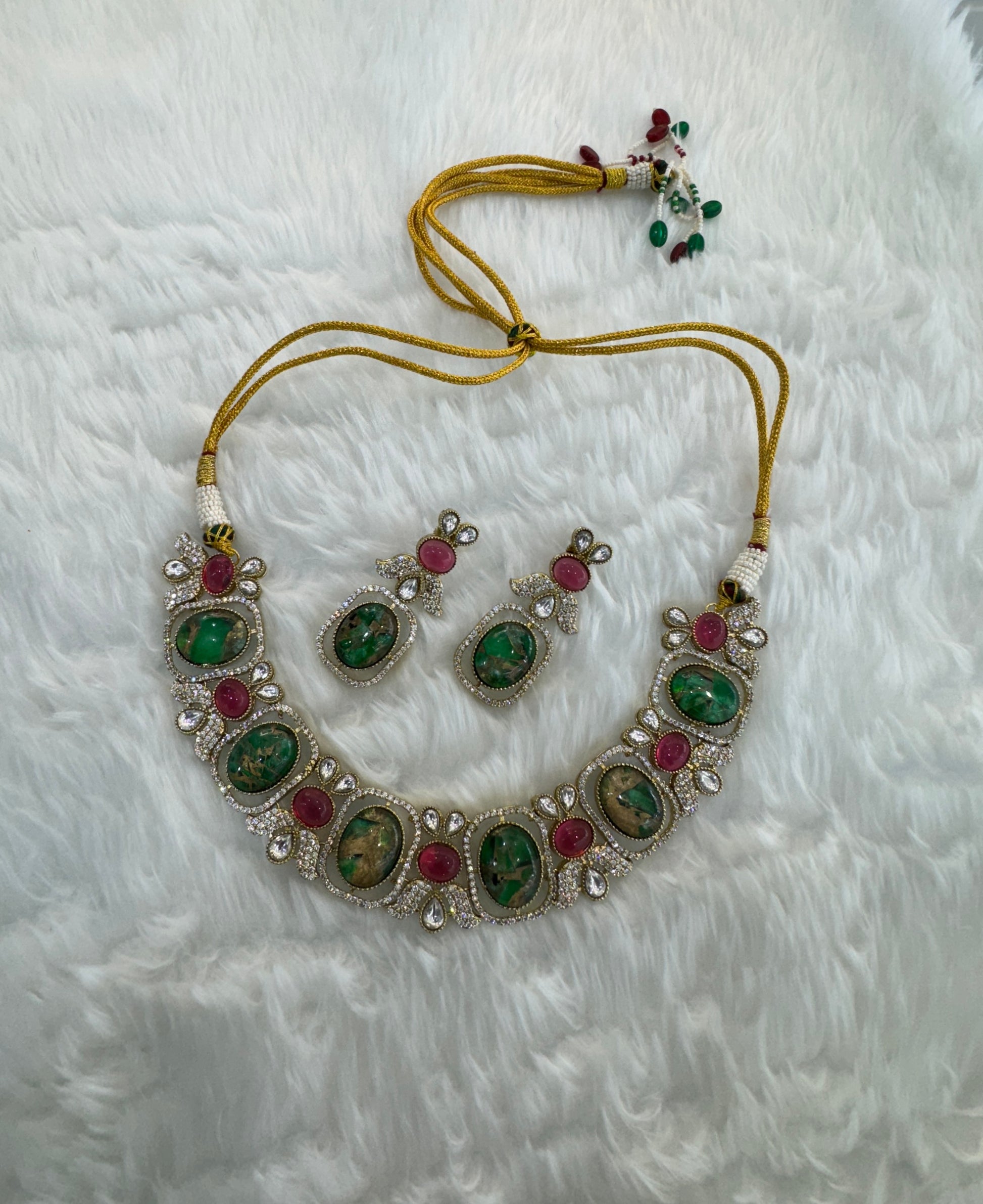 Ruby Green Necklace Jewellery Ria Set