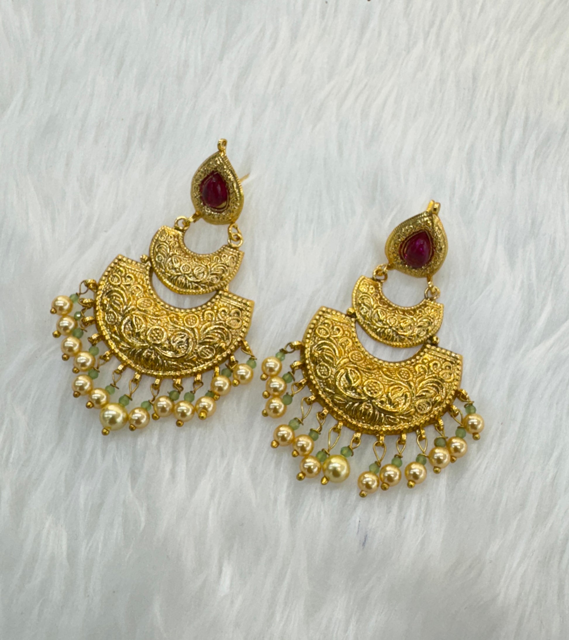 Ruby Jadau Patra Bollywood Guggu Earrings
