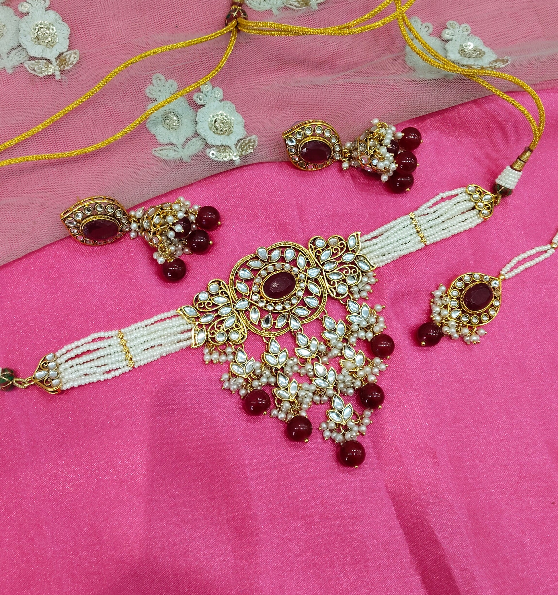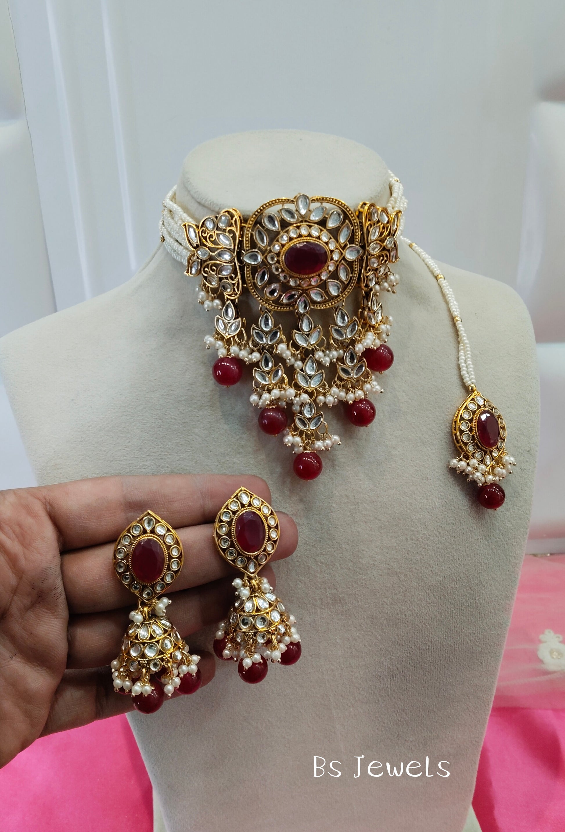 Ruby Kundan Choker Jhumka Jewellery Arsh Set