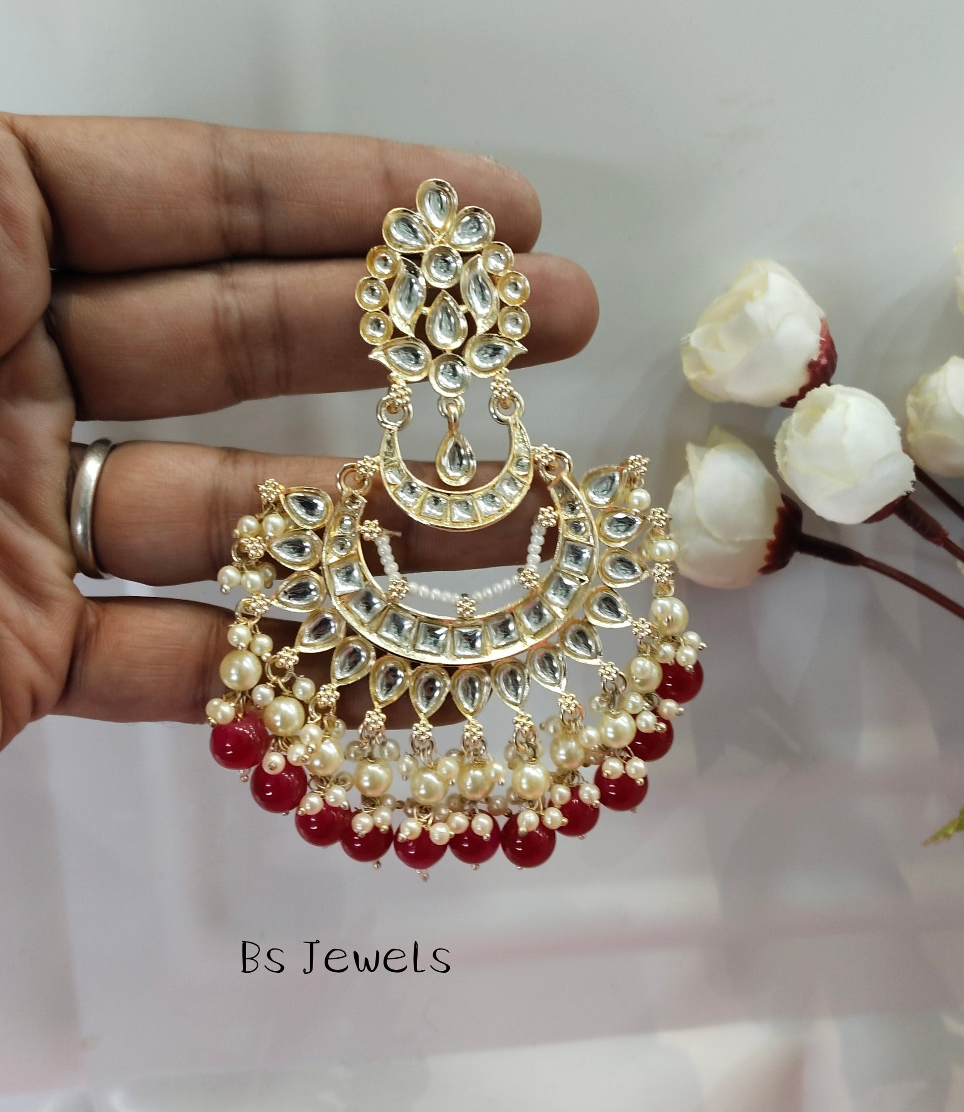 Ruby Kundan Reading Bollywood Earrings