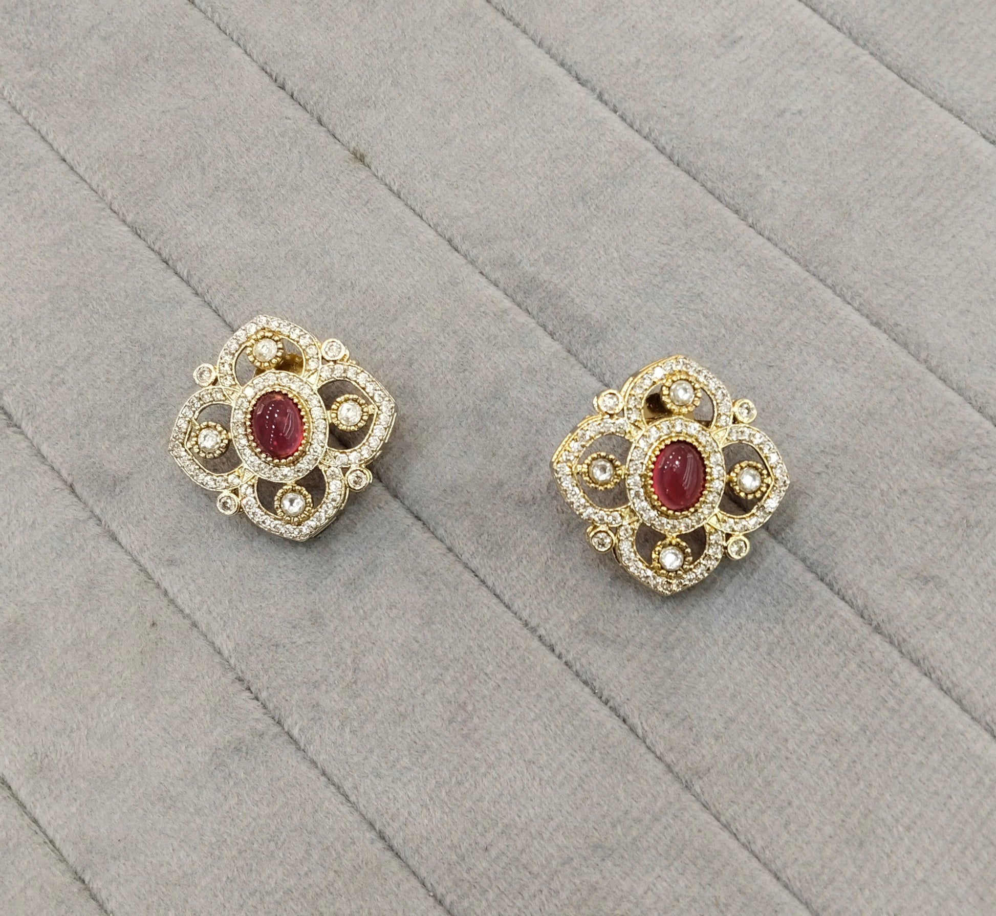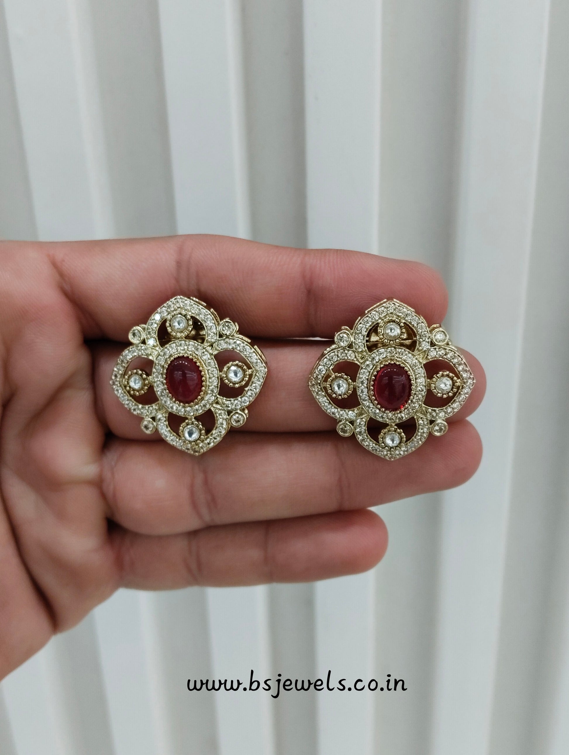 Ruby Moissanite Kundan Bollywood Dhillon Earrings