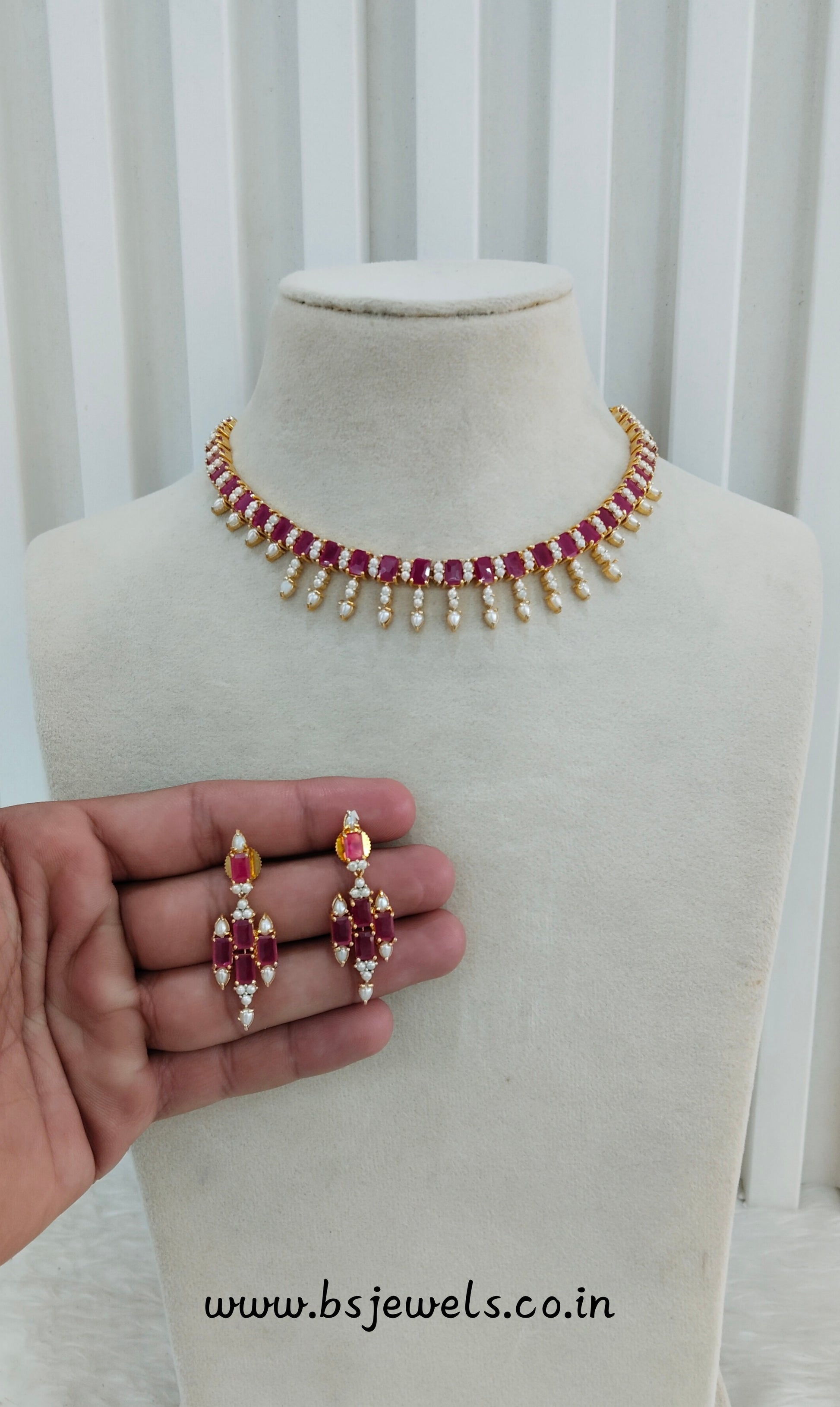 Ruby Pearl Necklace Jewellery Spike Set