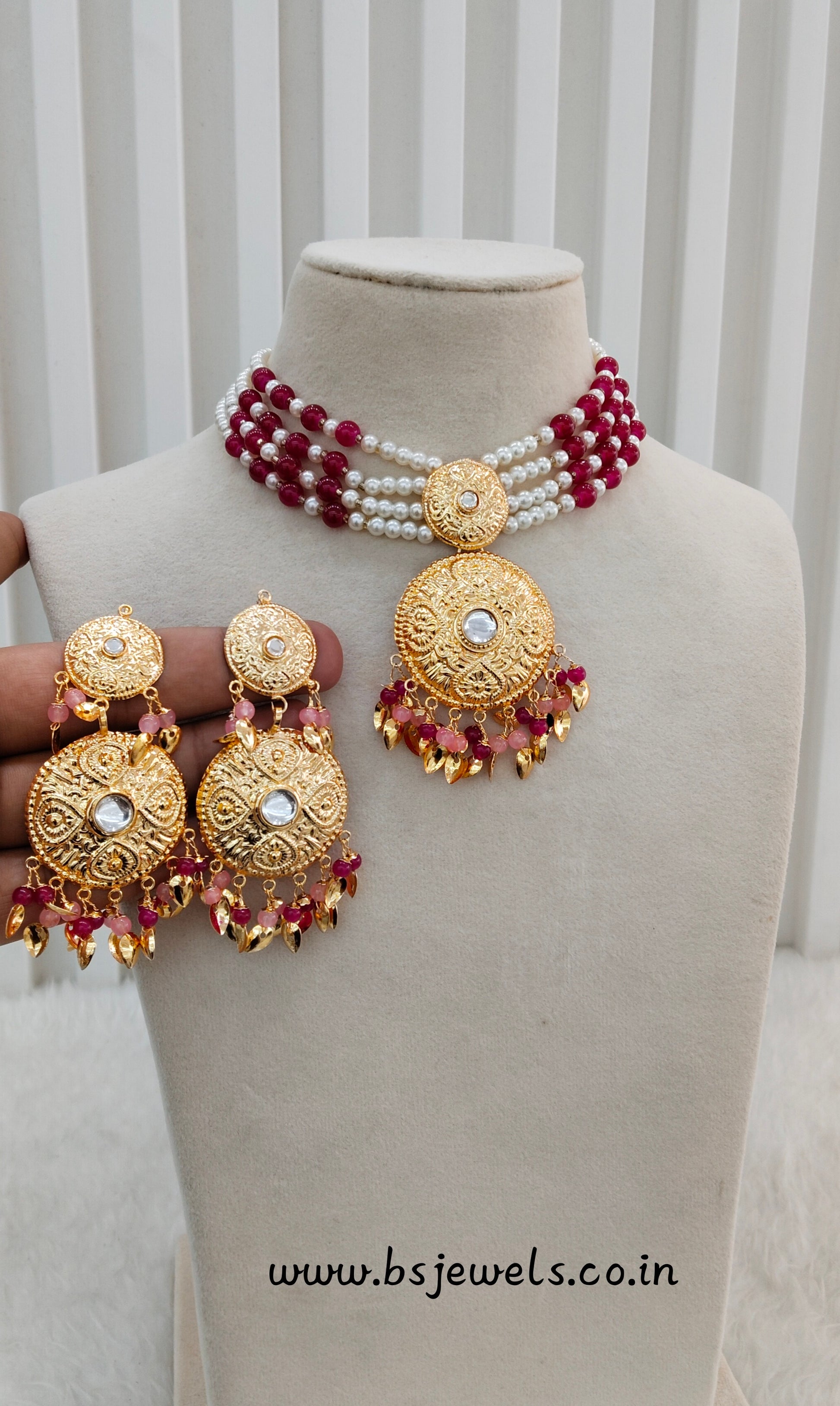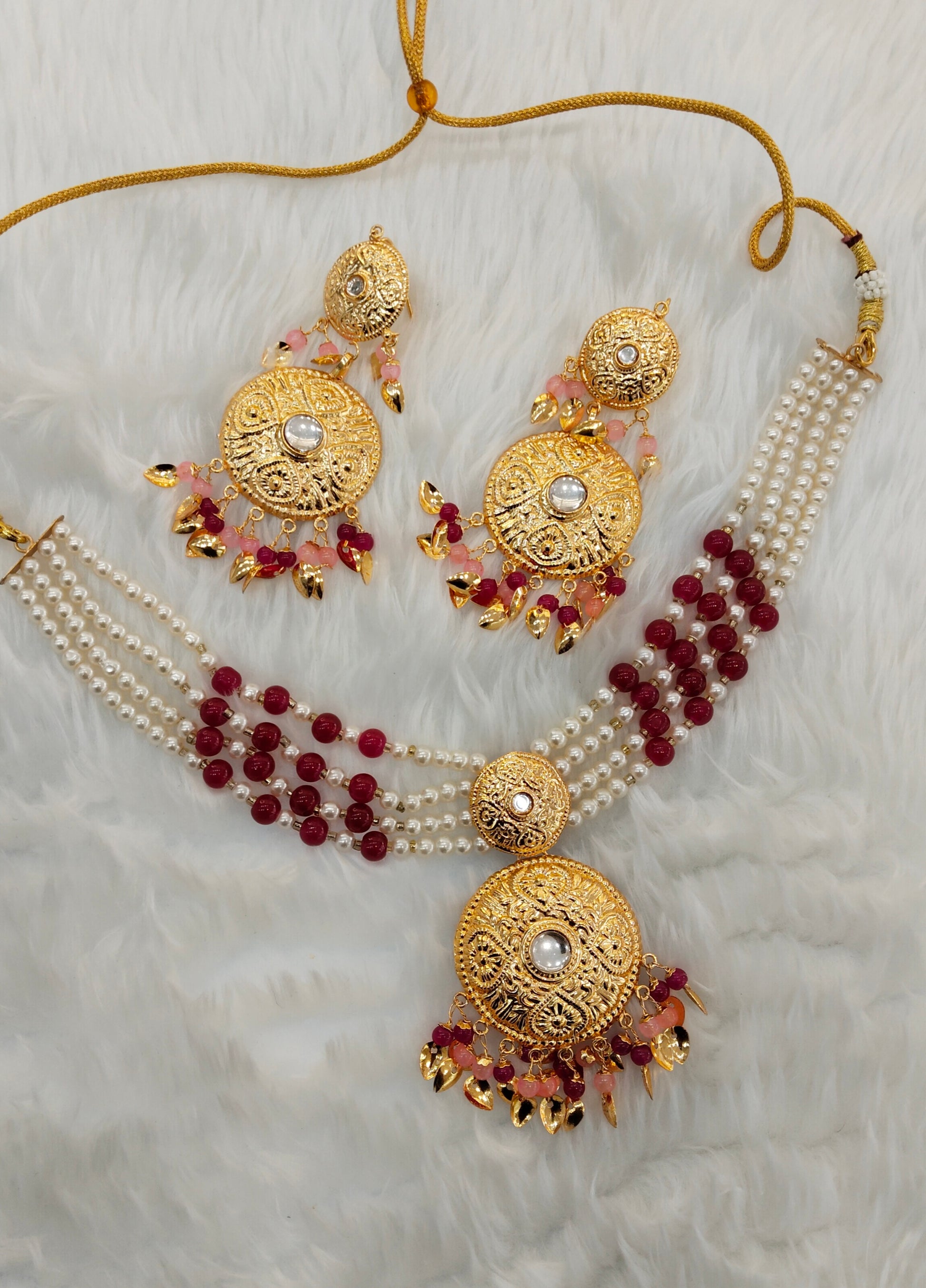 Ruby Pink Gold Jadau Punjabi Style Choker Jewellery Worldwide Set
