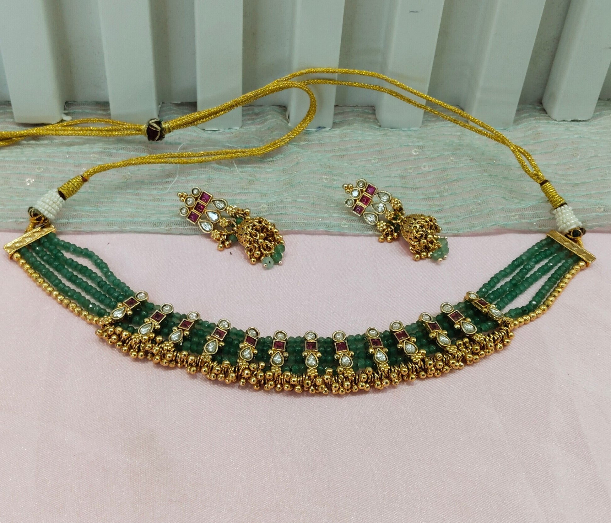 * Gold Finish Polki Choker Necklace Set with earrings as shown in the pic.