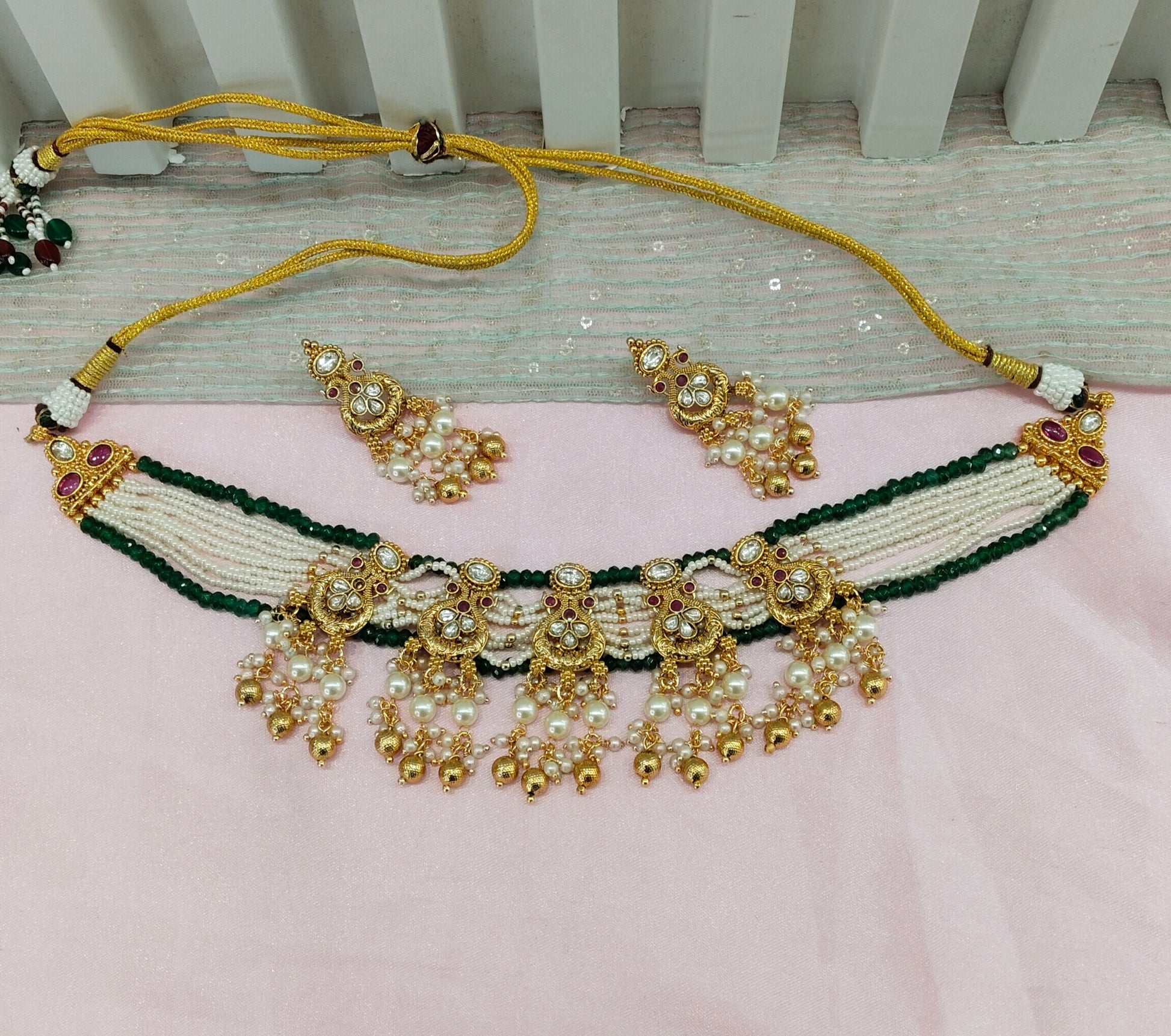 Ruby Sage Green Gold Polki Kundan Choker Necklace Jewellery Jennet Set
