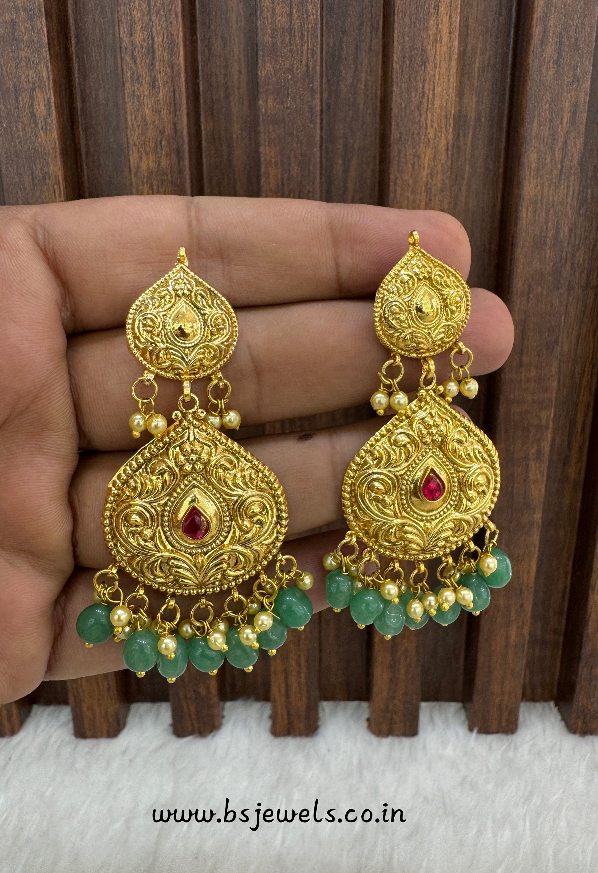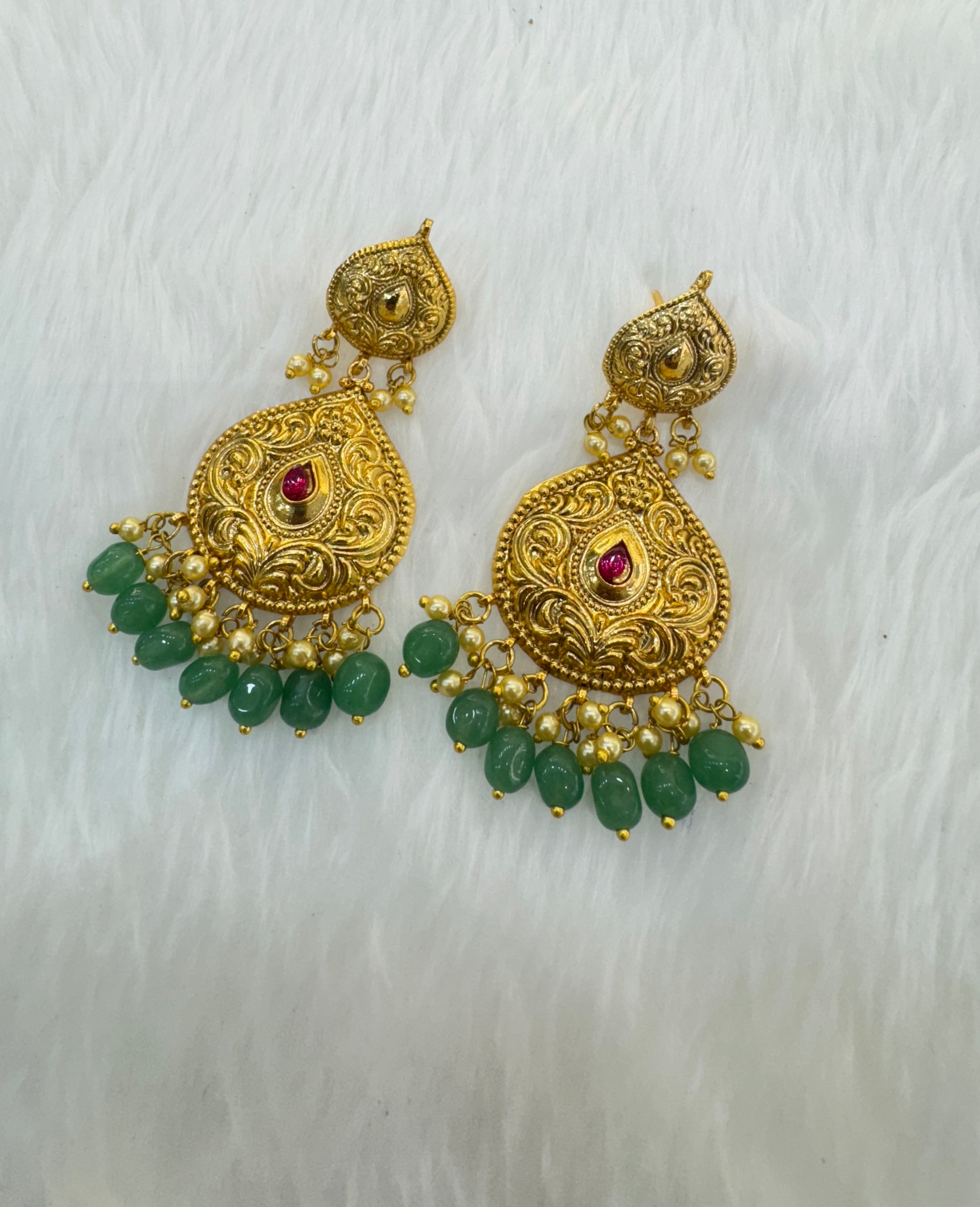 Ruby Sage Green Jadau Patra Bollywood Guggu Earrings