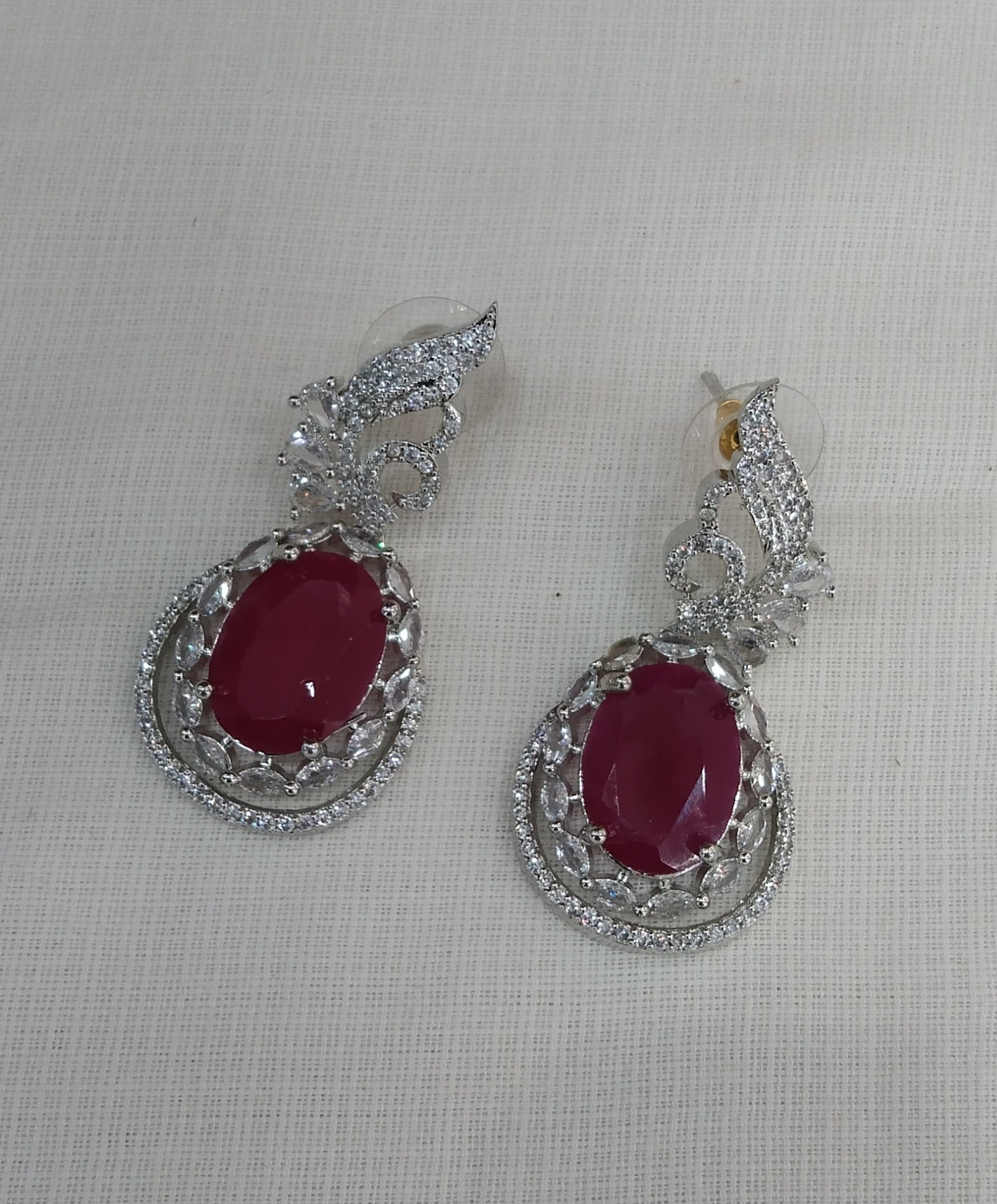 Ruby Silver Cz American Diamond Earrings Kiran Jewellery Online