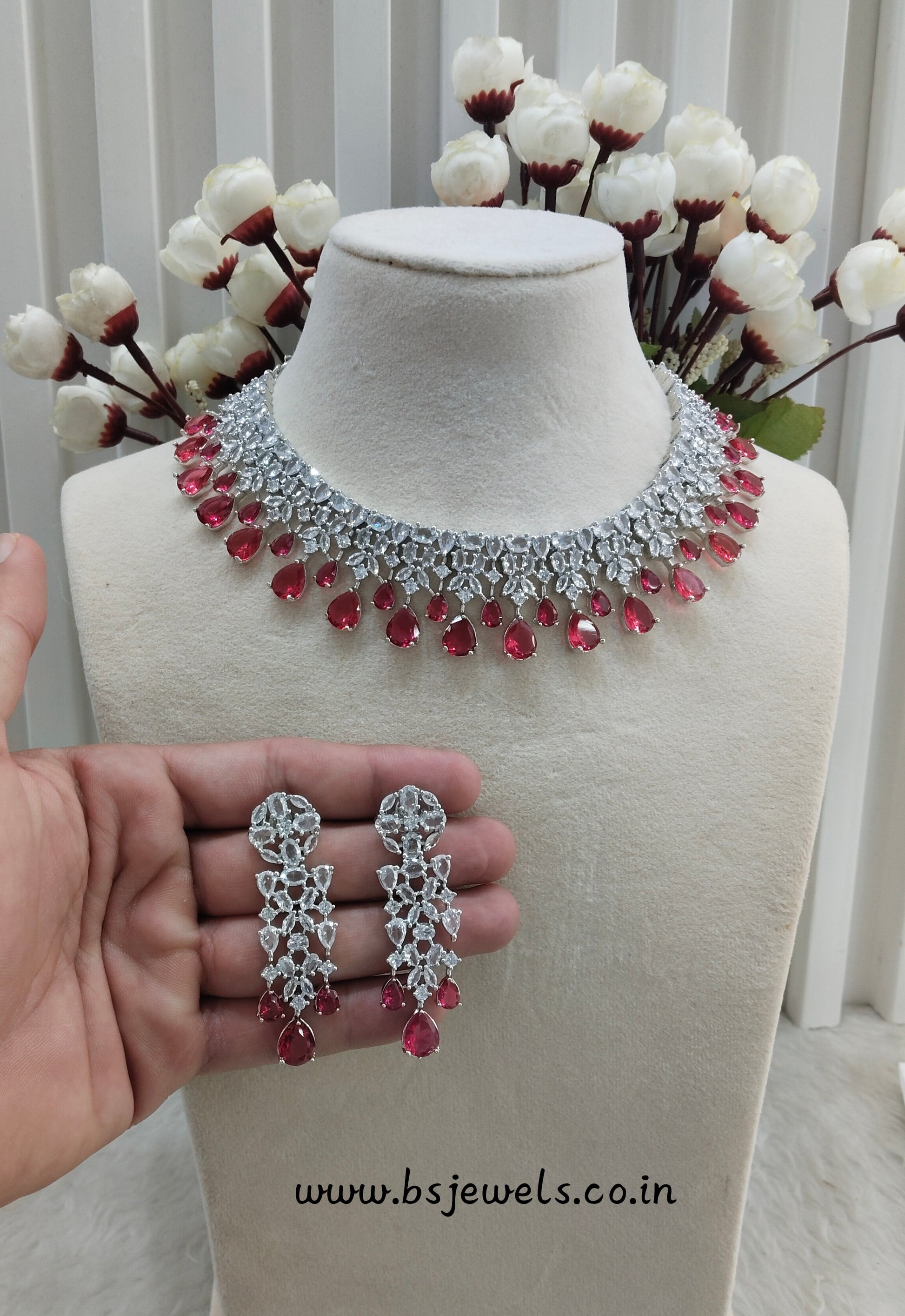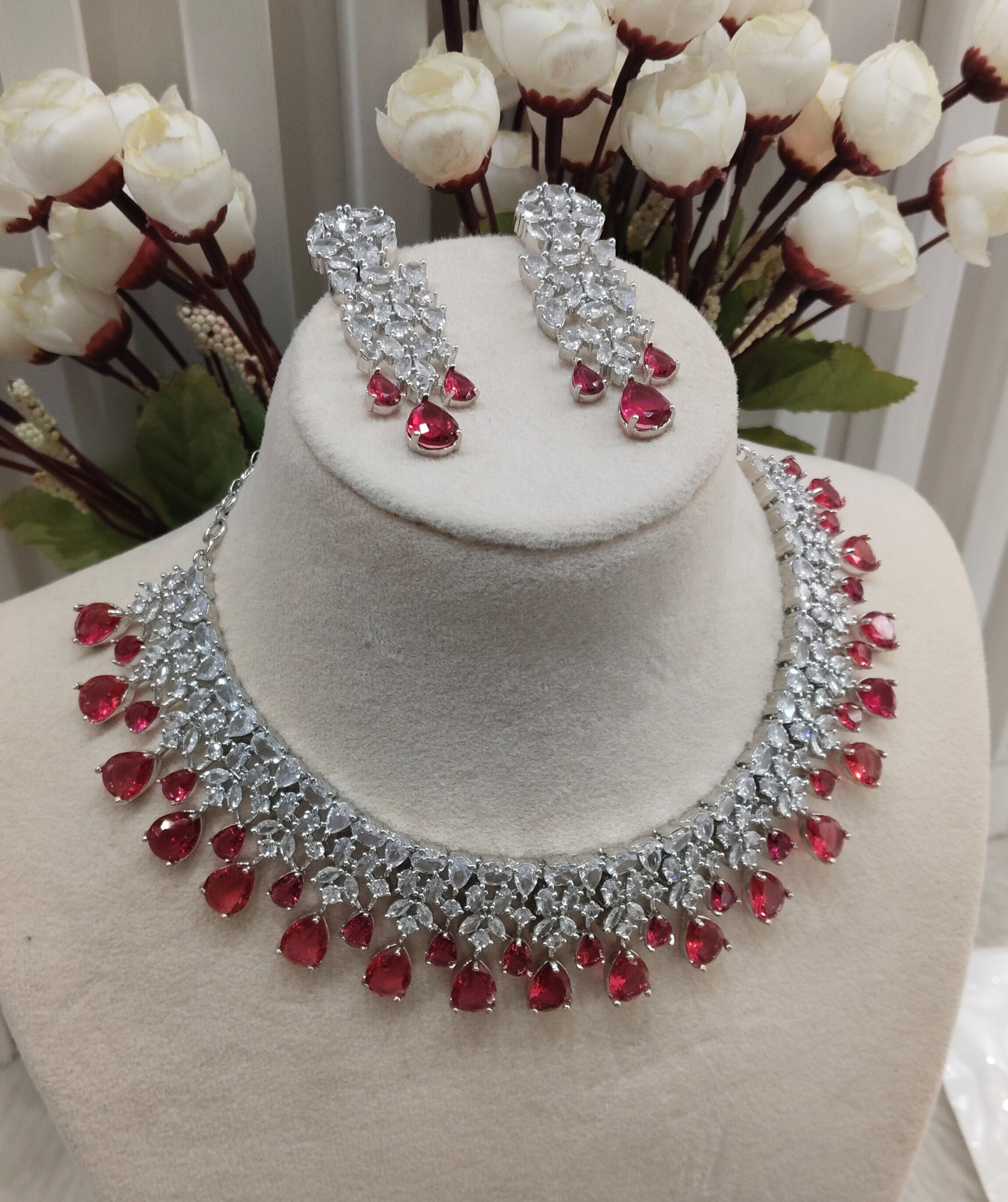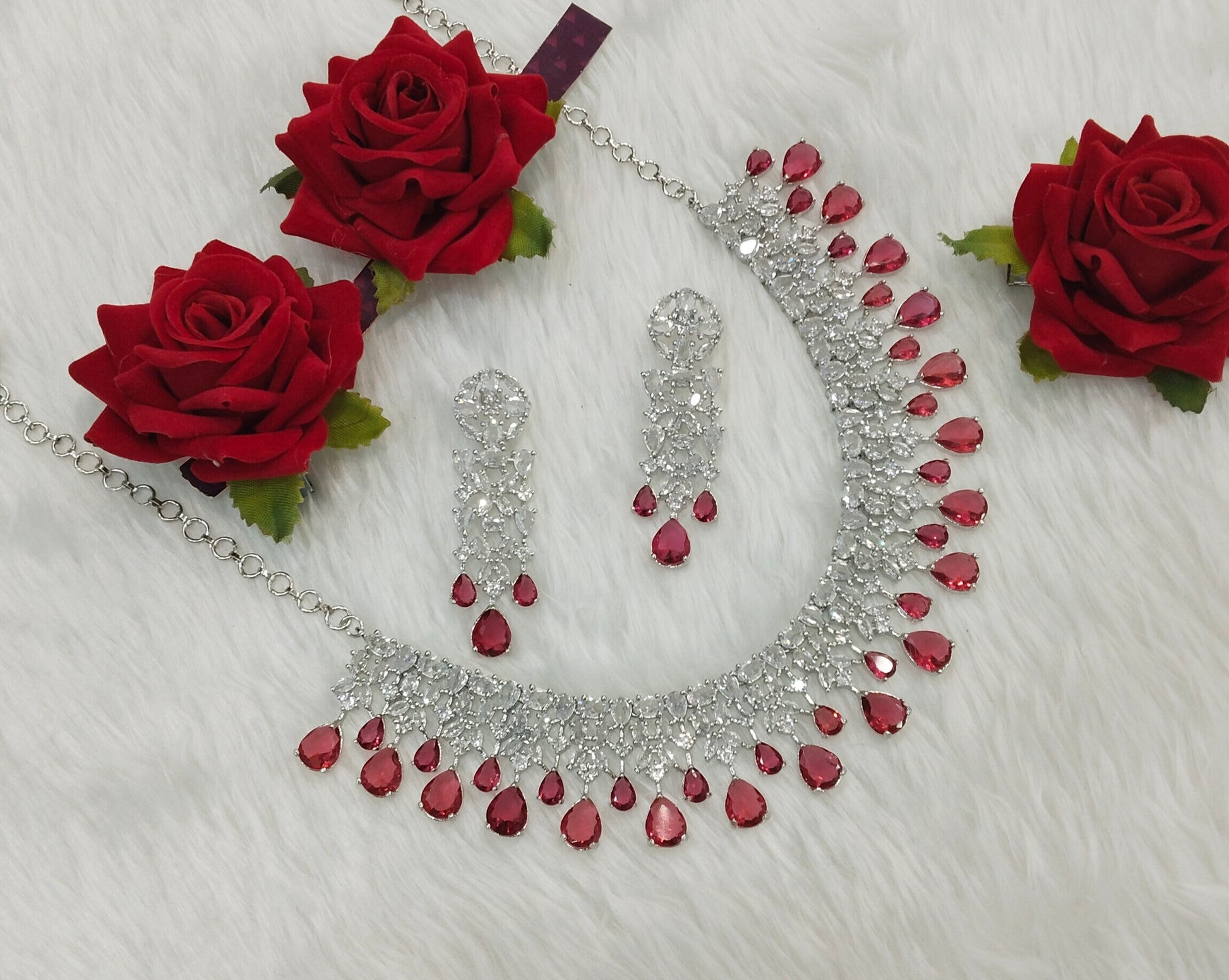 Ruby Silver CZ Necklace Jewellery Dilshan Set