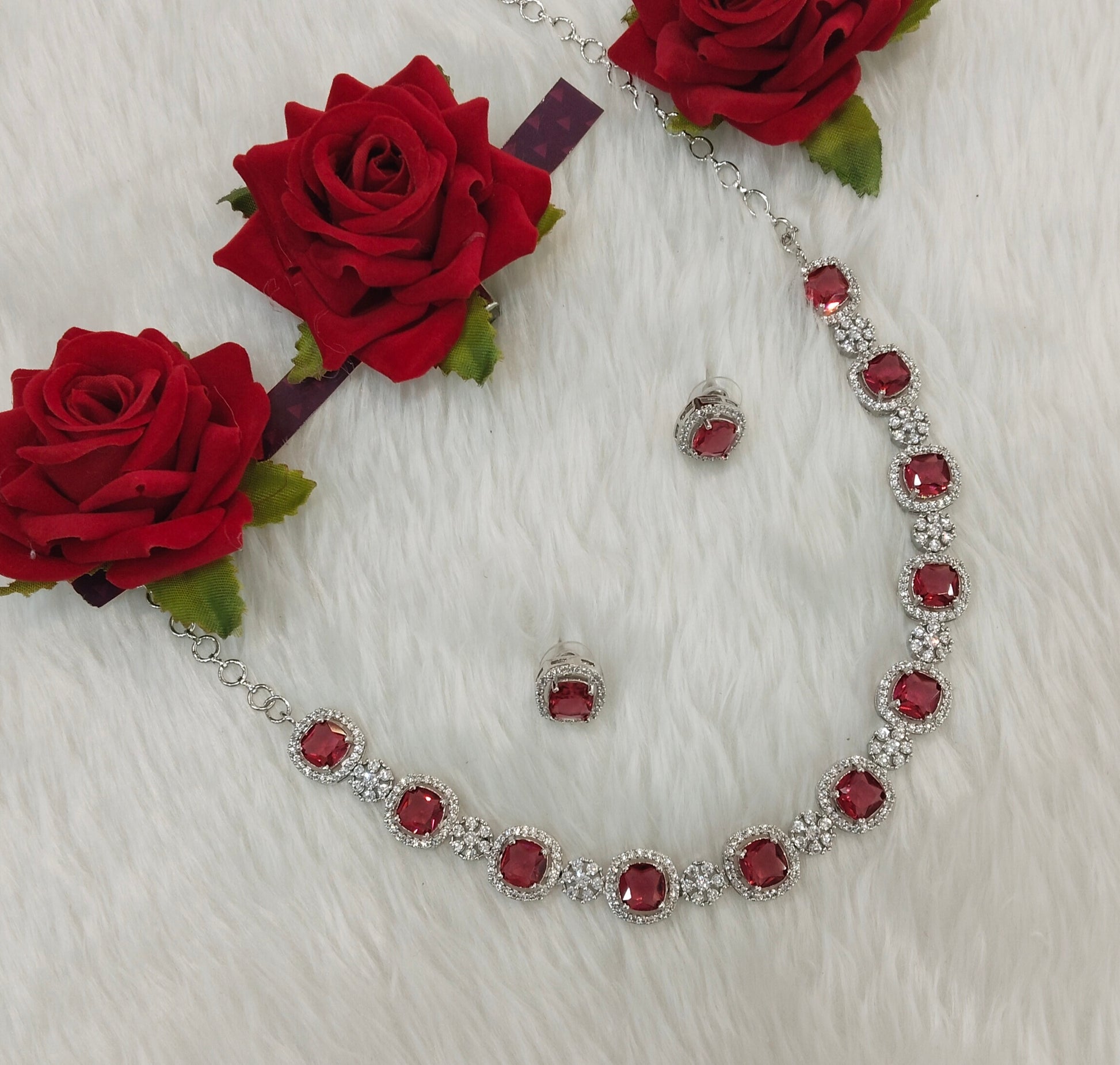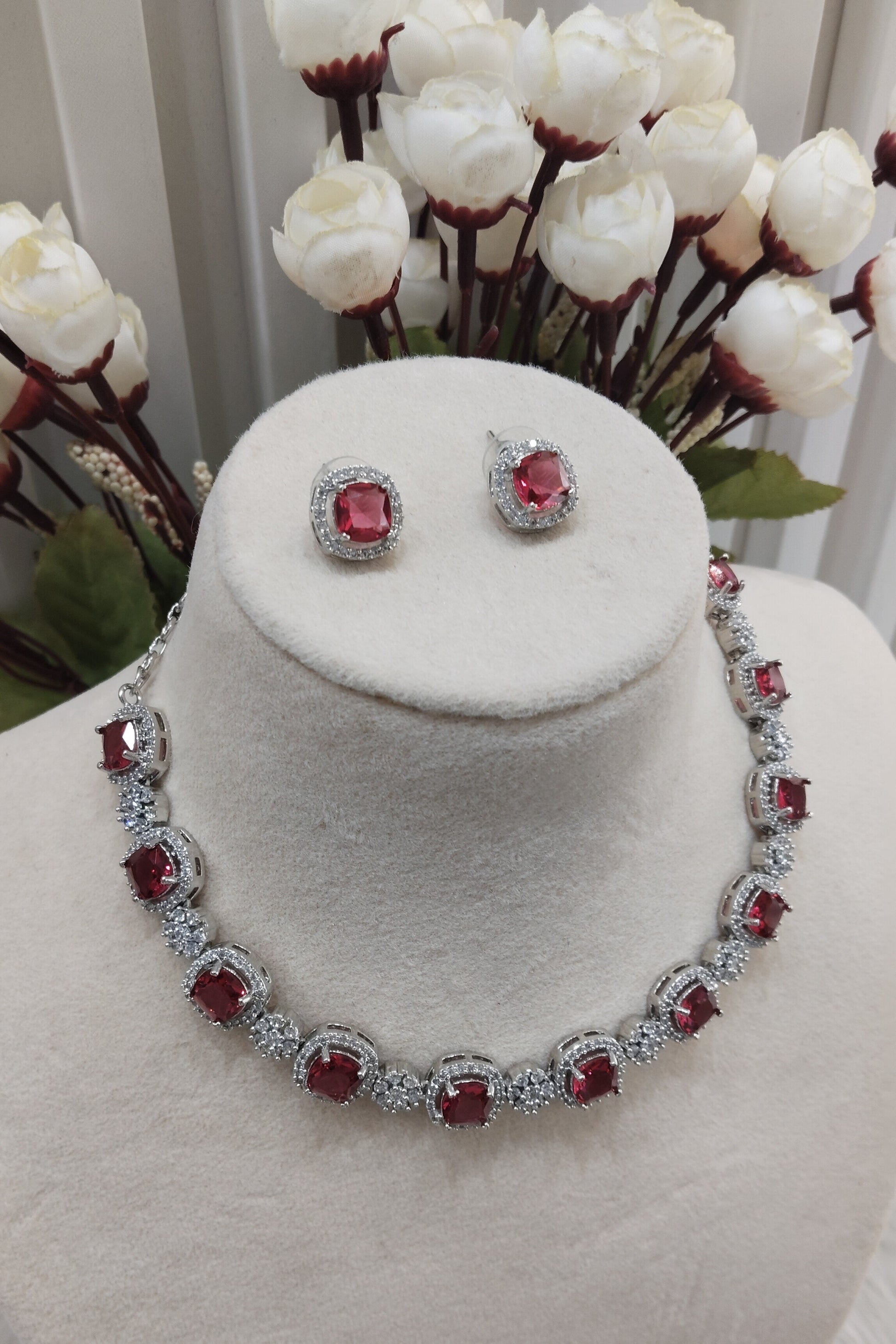 Ruby Silver CZ Necklace Jewellery Kavin Set