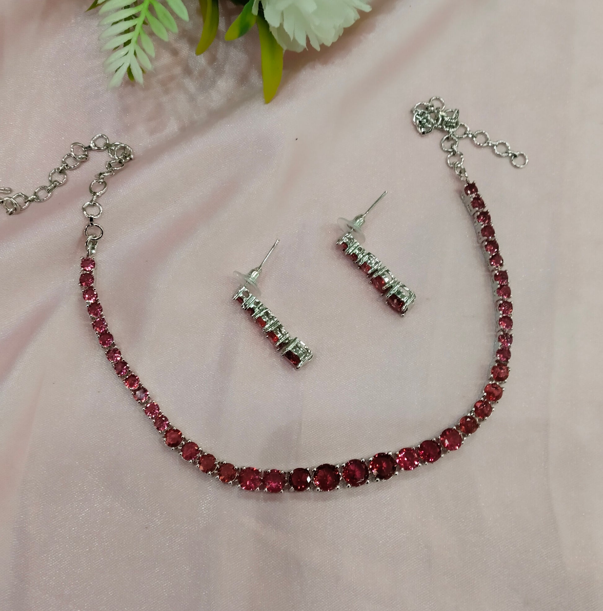 Ruby Silver CZ Necklace Jewellery Lisbon Set