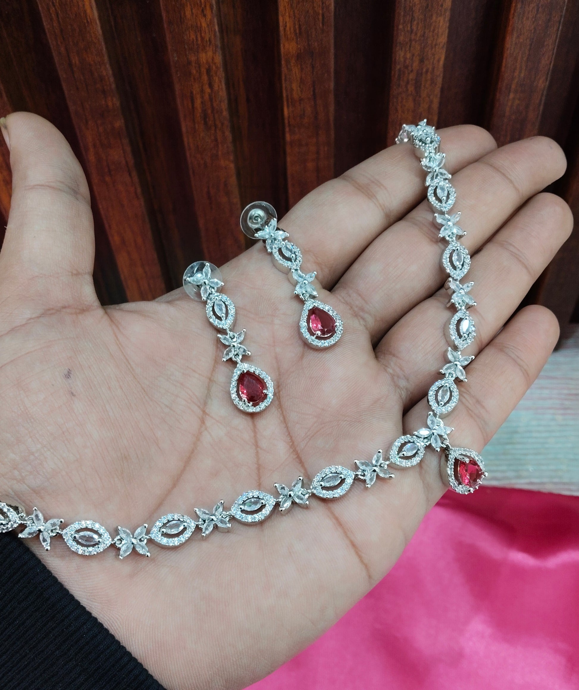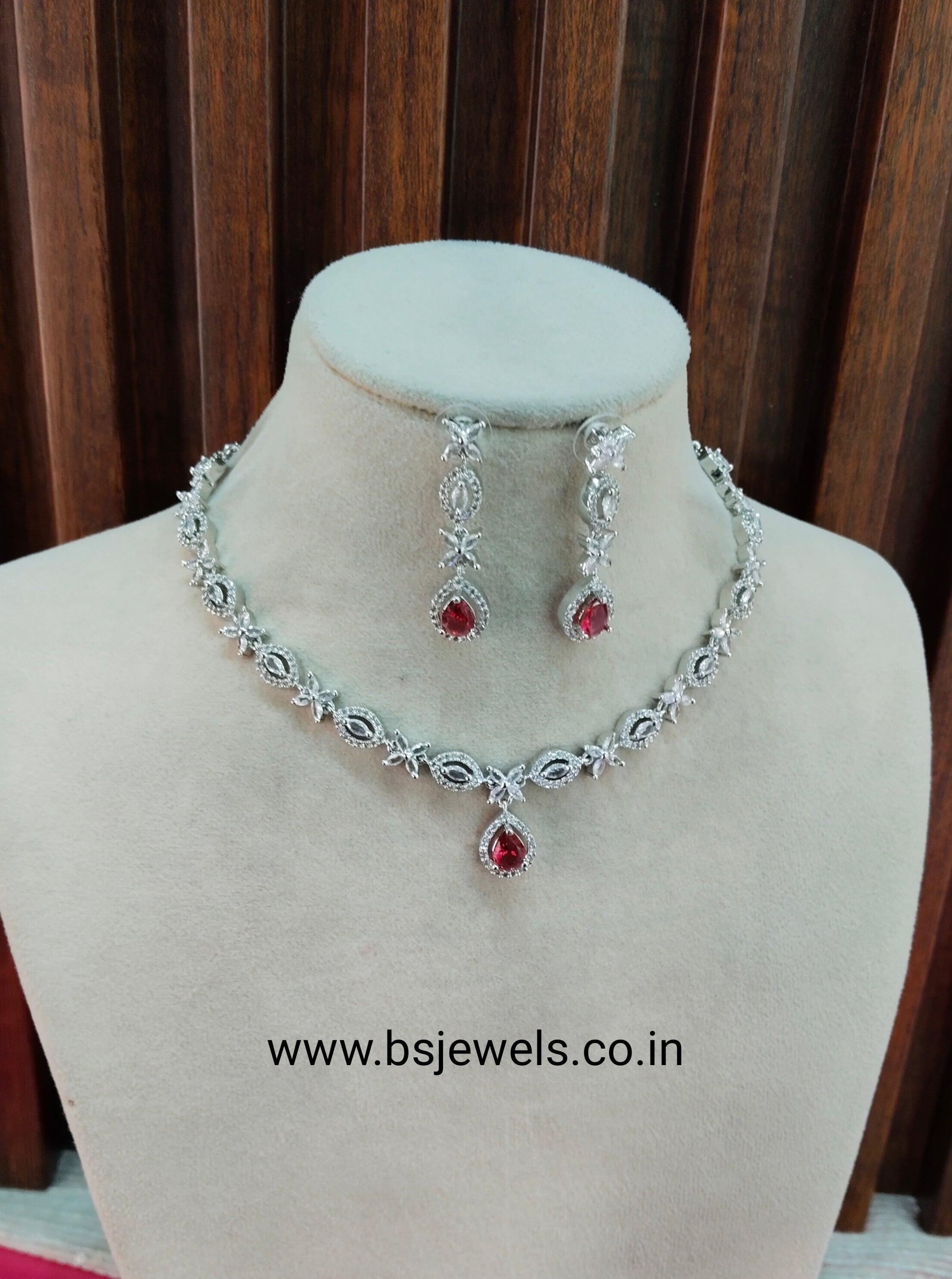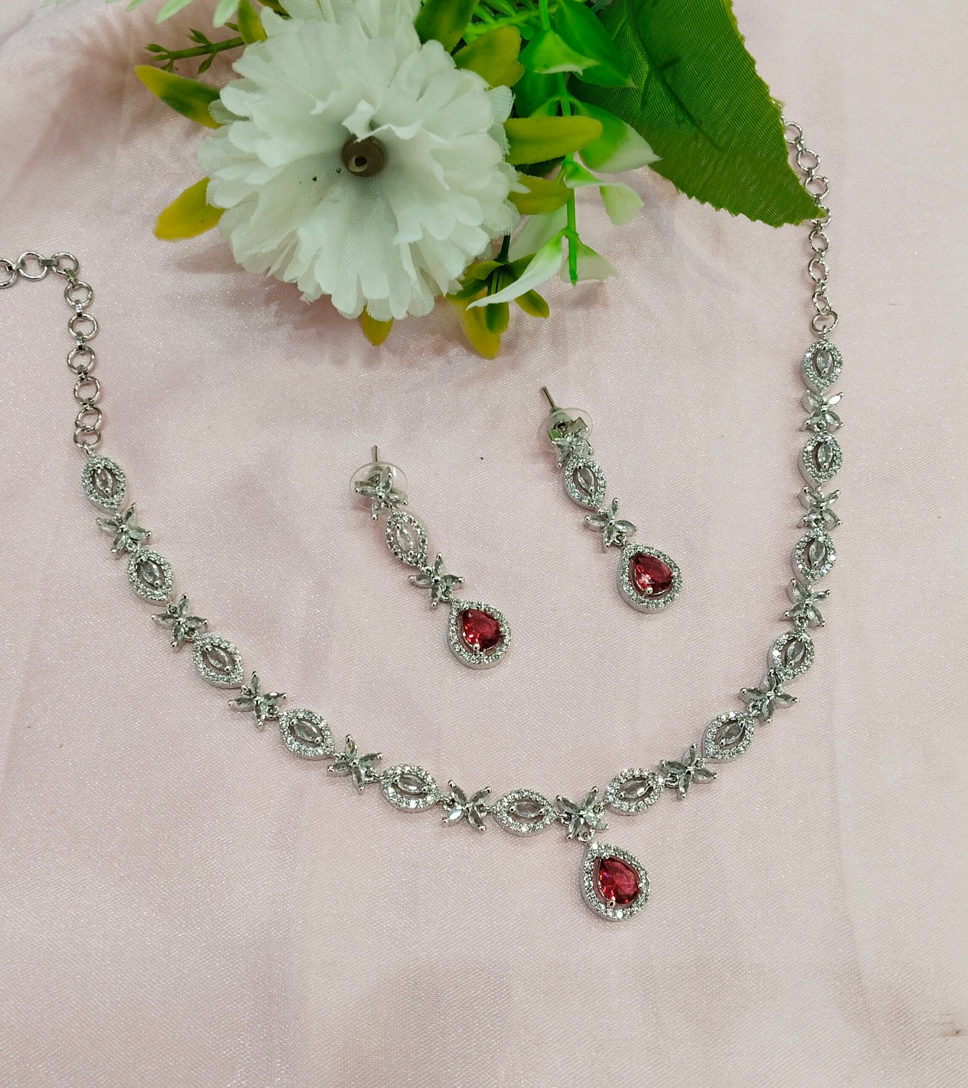 Ruby Silver CZ Necklace Jewellery Berlin Set