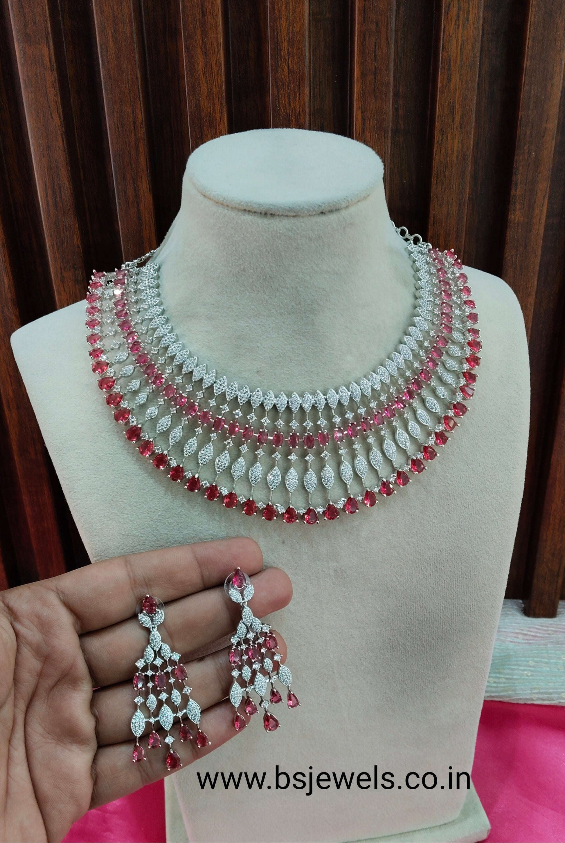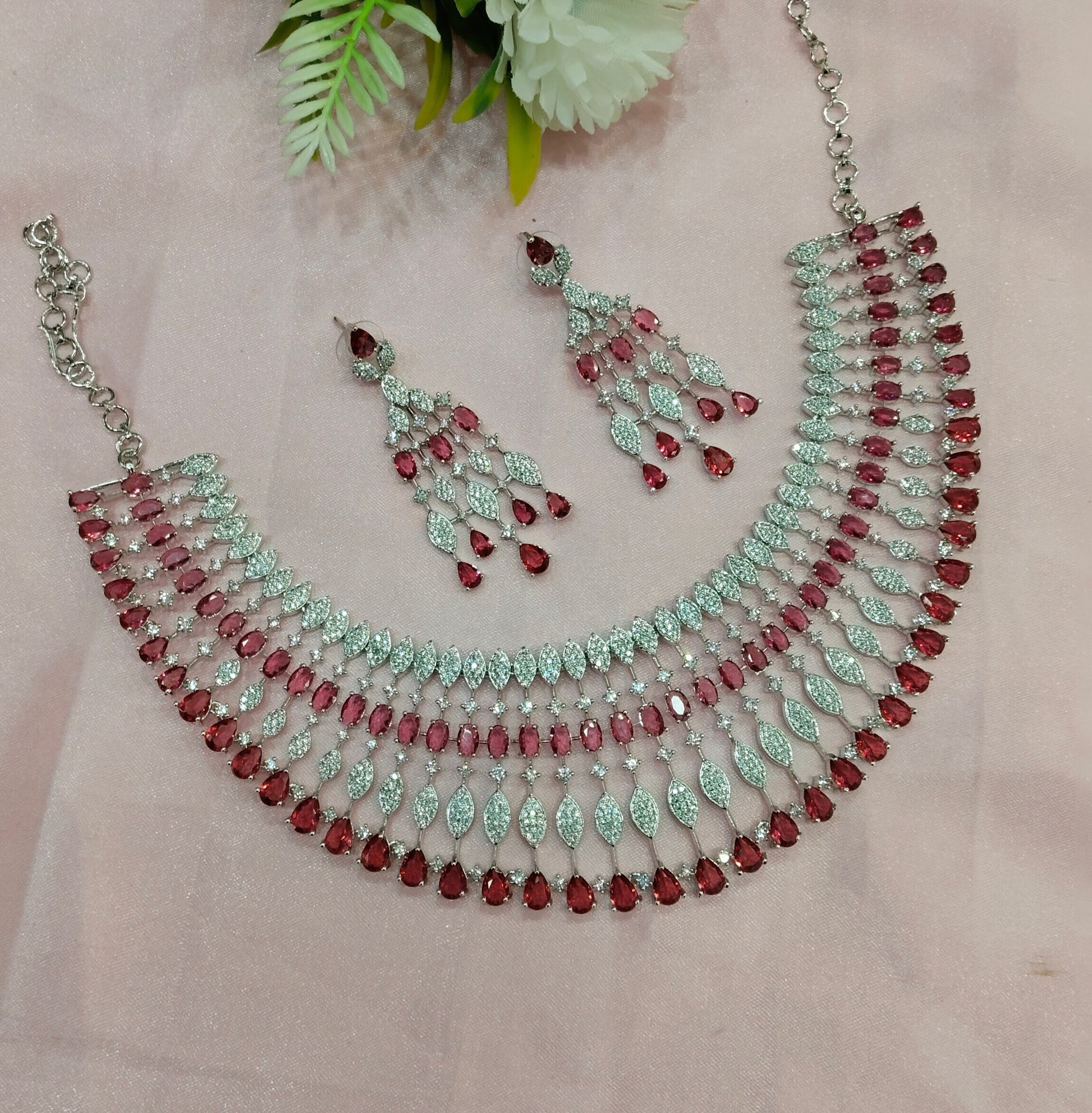 Ruby Silver CZ Necklace Jewellery Rich Set