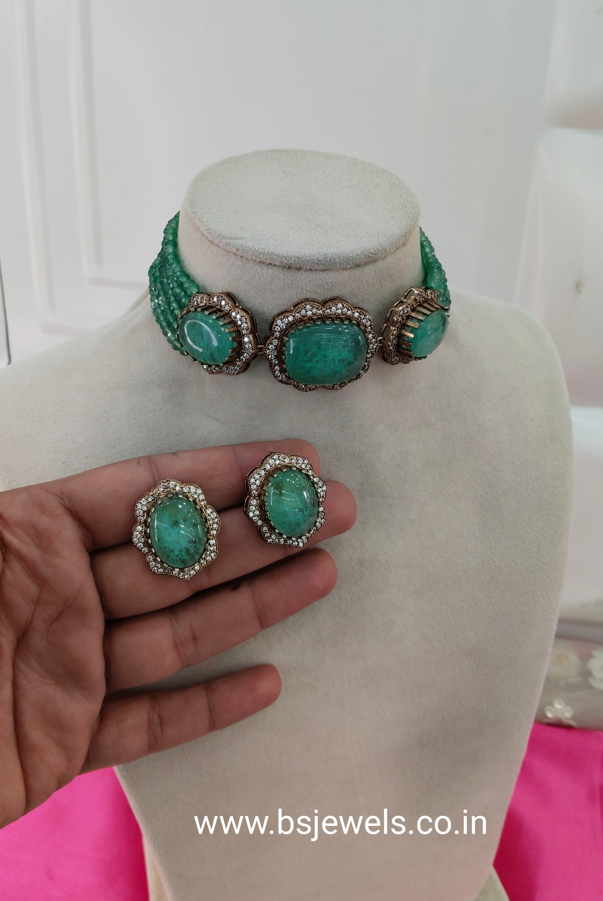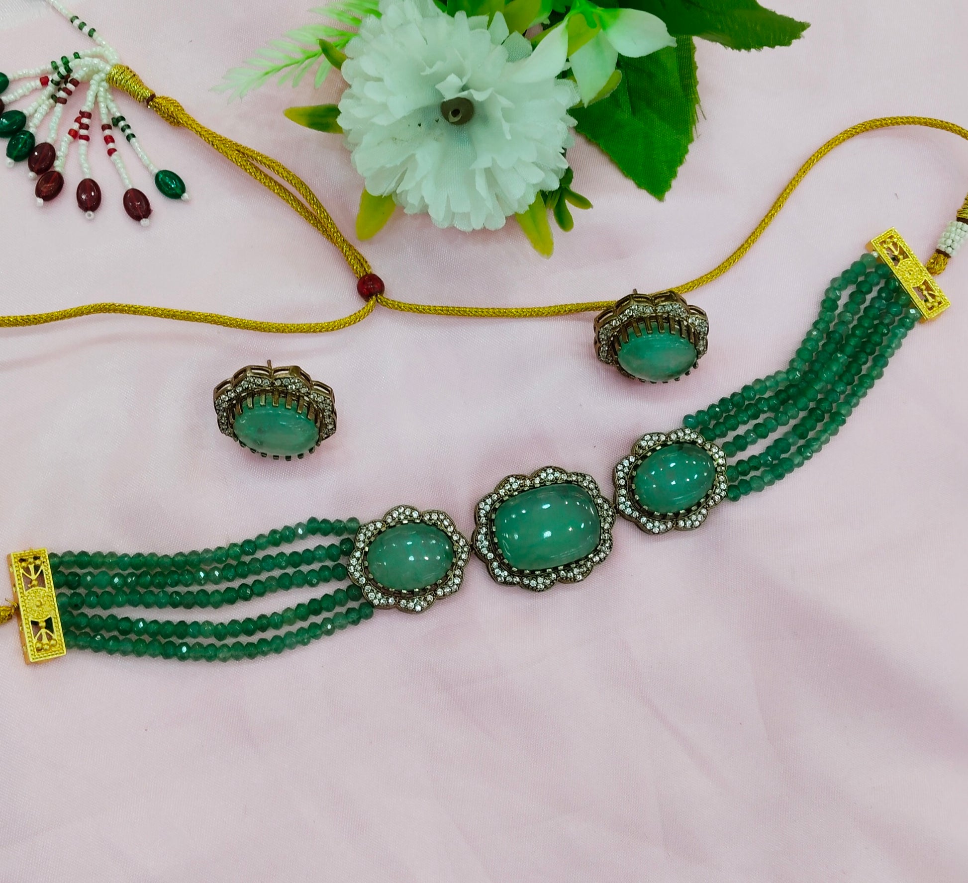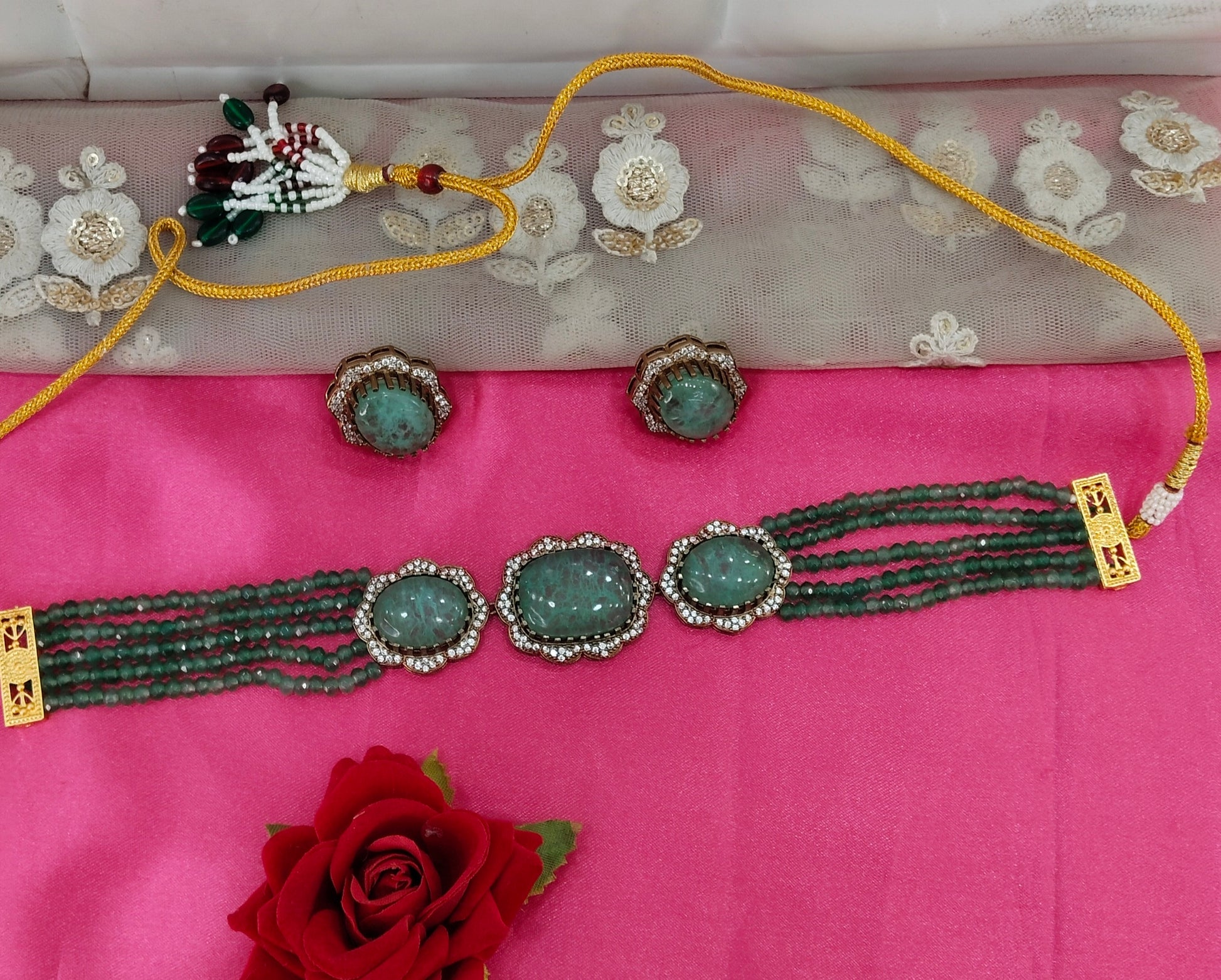 Sage Green Moissanite Kundan Choker Jewellery Sunita Set