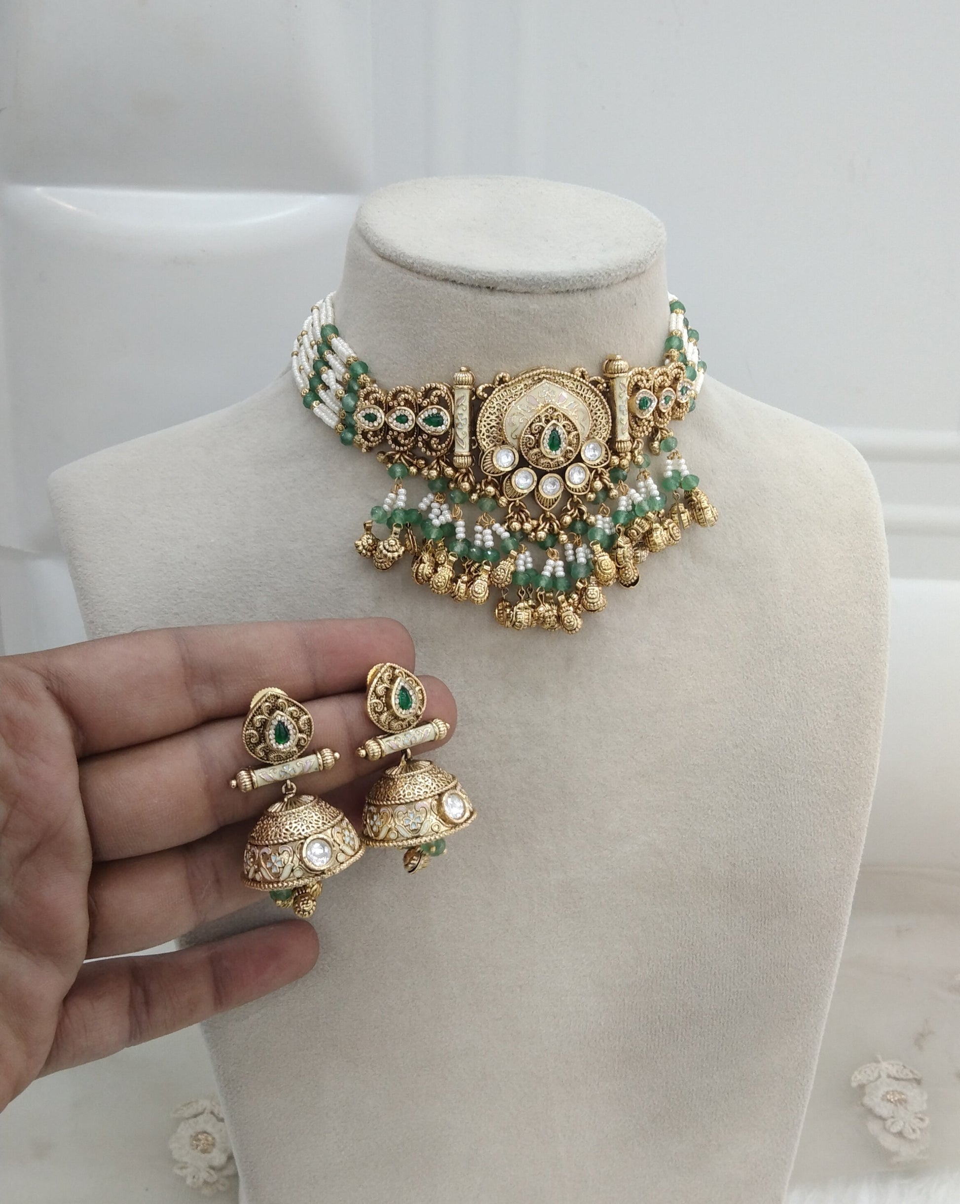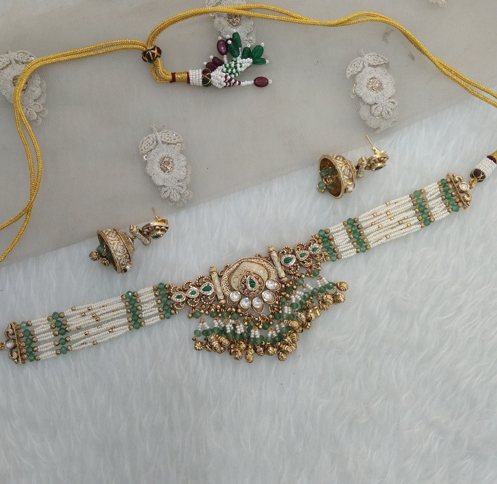 Sage Green polki Kundan Choker Jewellery jasika Set