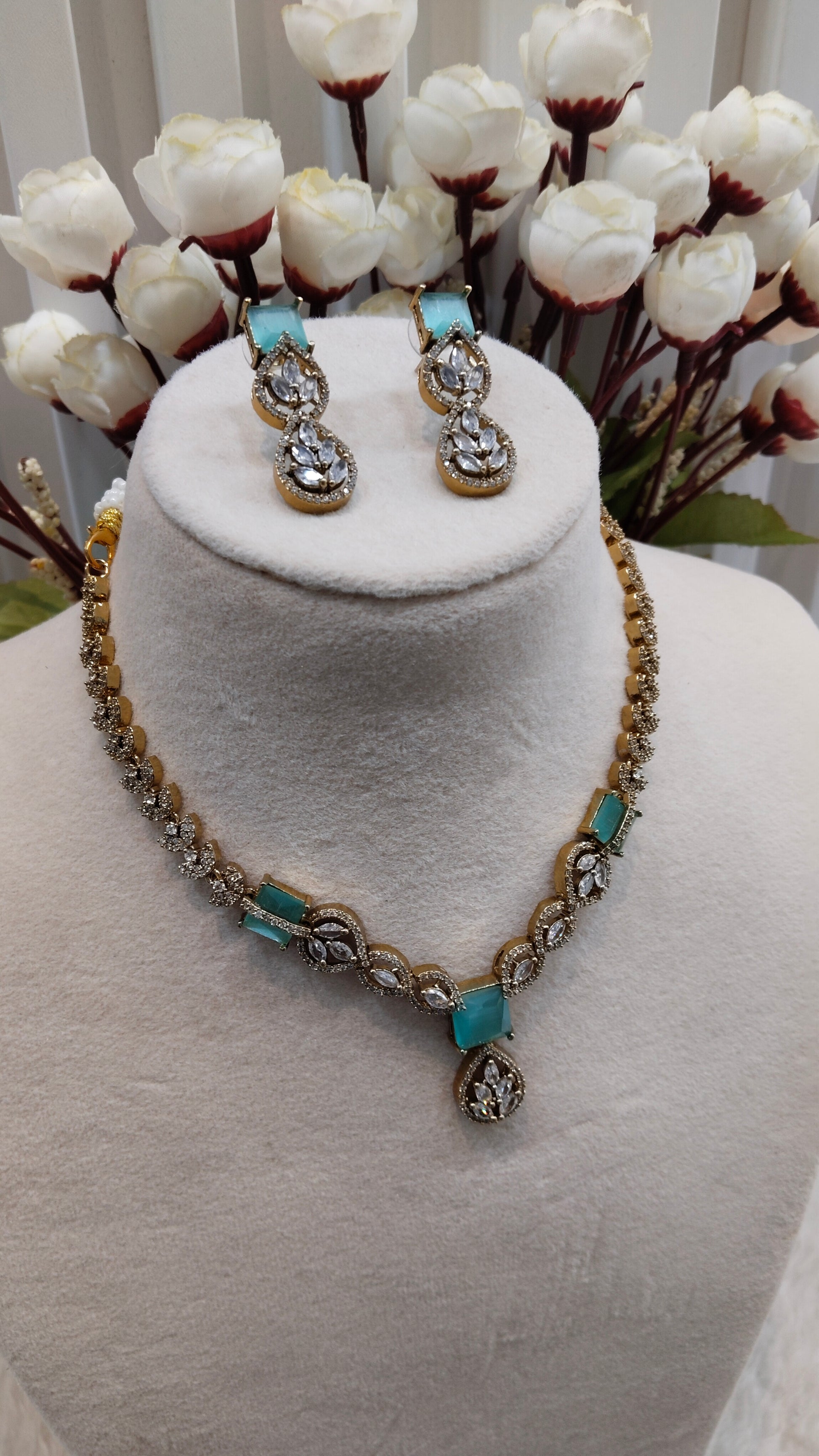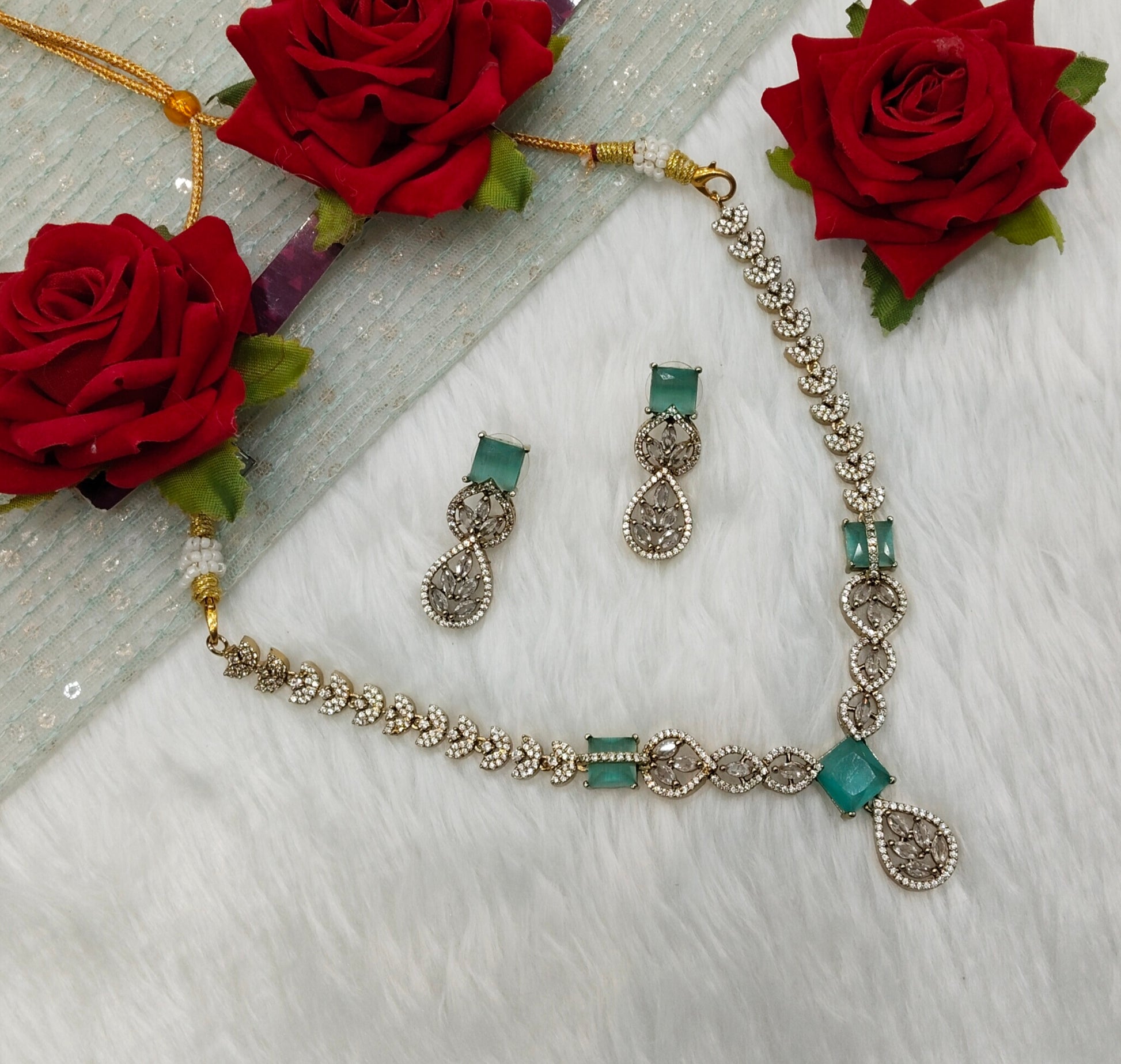Sea Geen Antique Gold CZ Necklace Jewellery Peterson Set