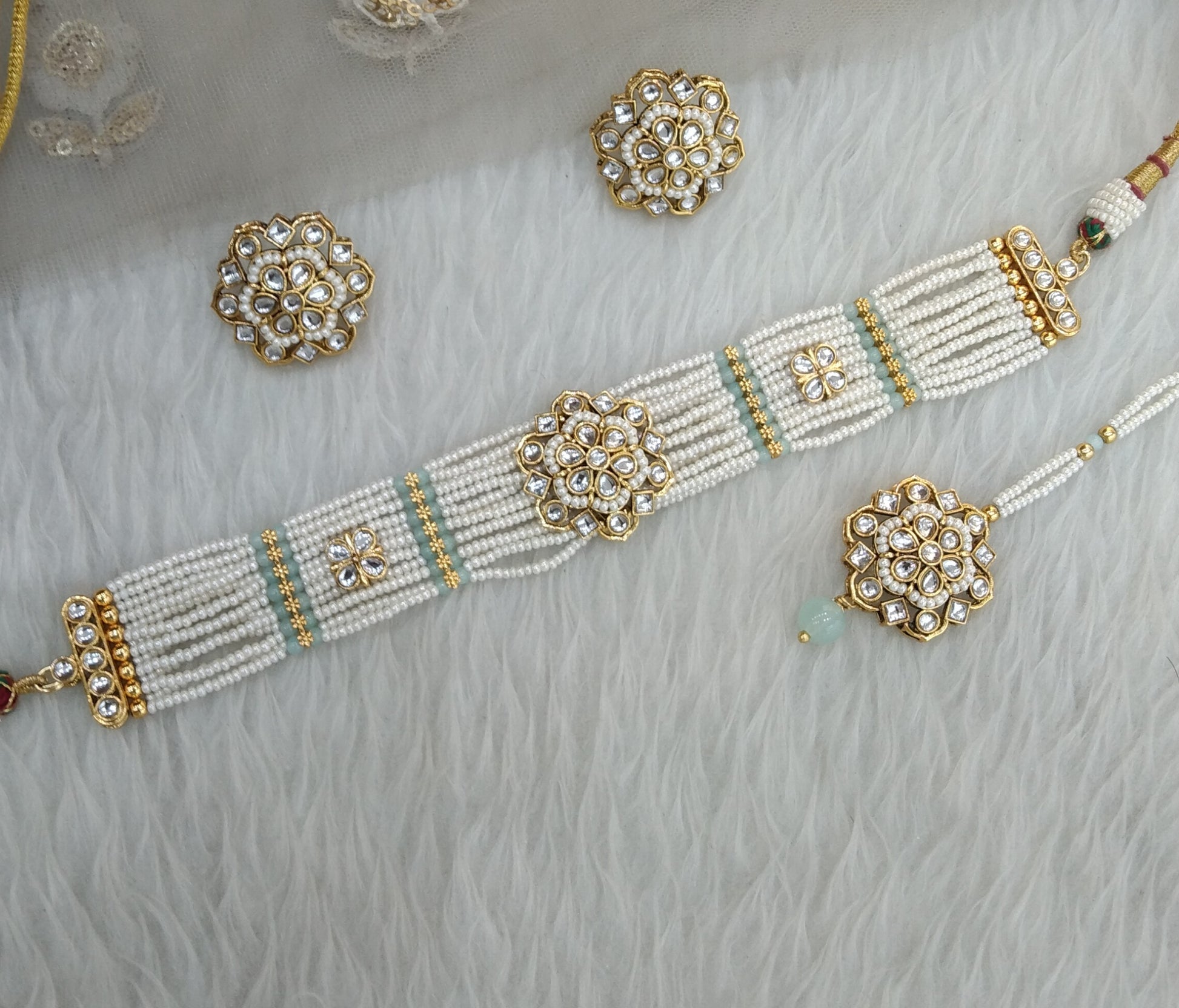 Sea Green Kundan Choker Jewelry Sandeep Set