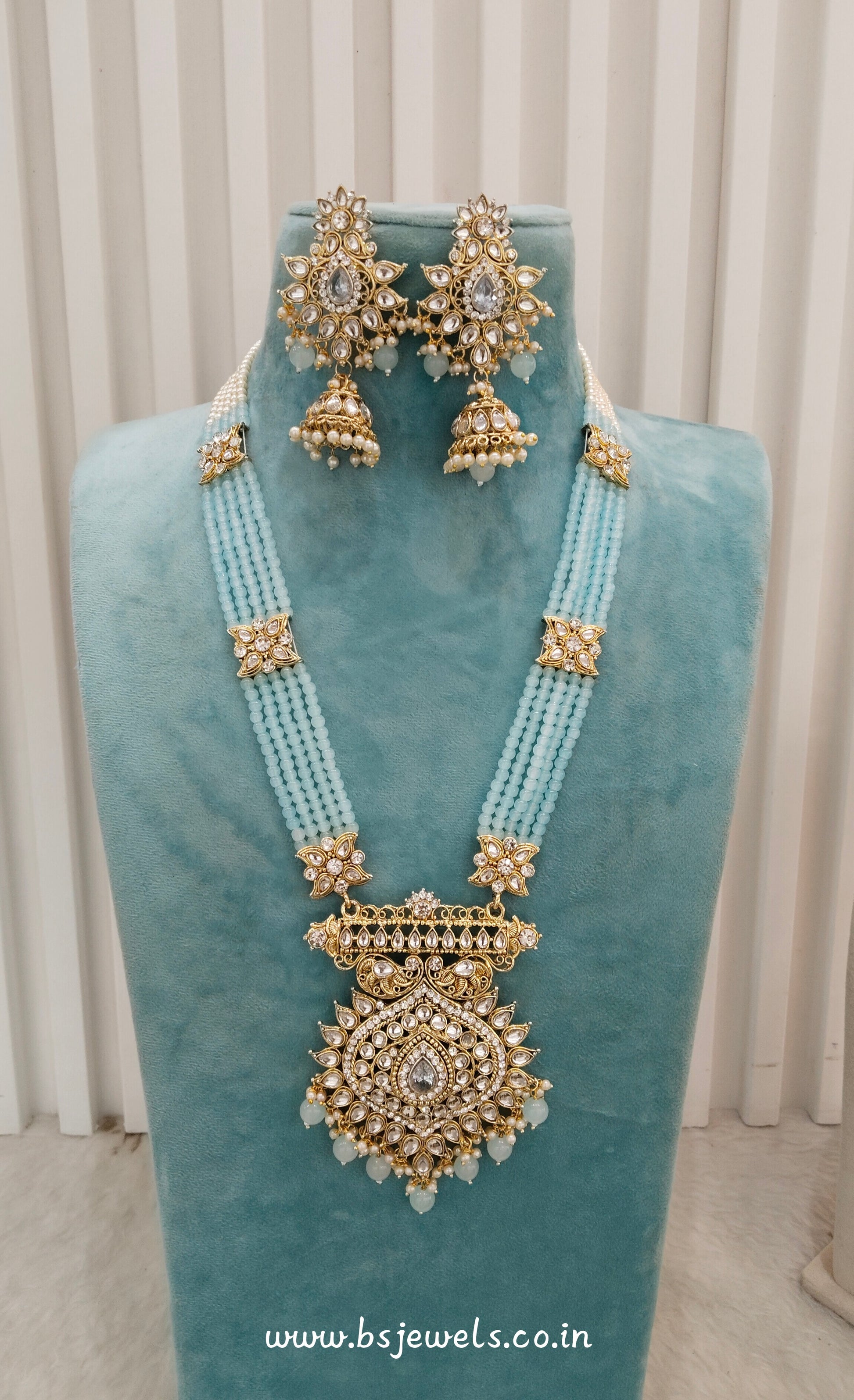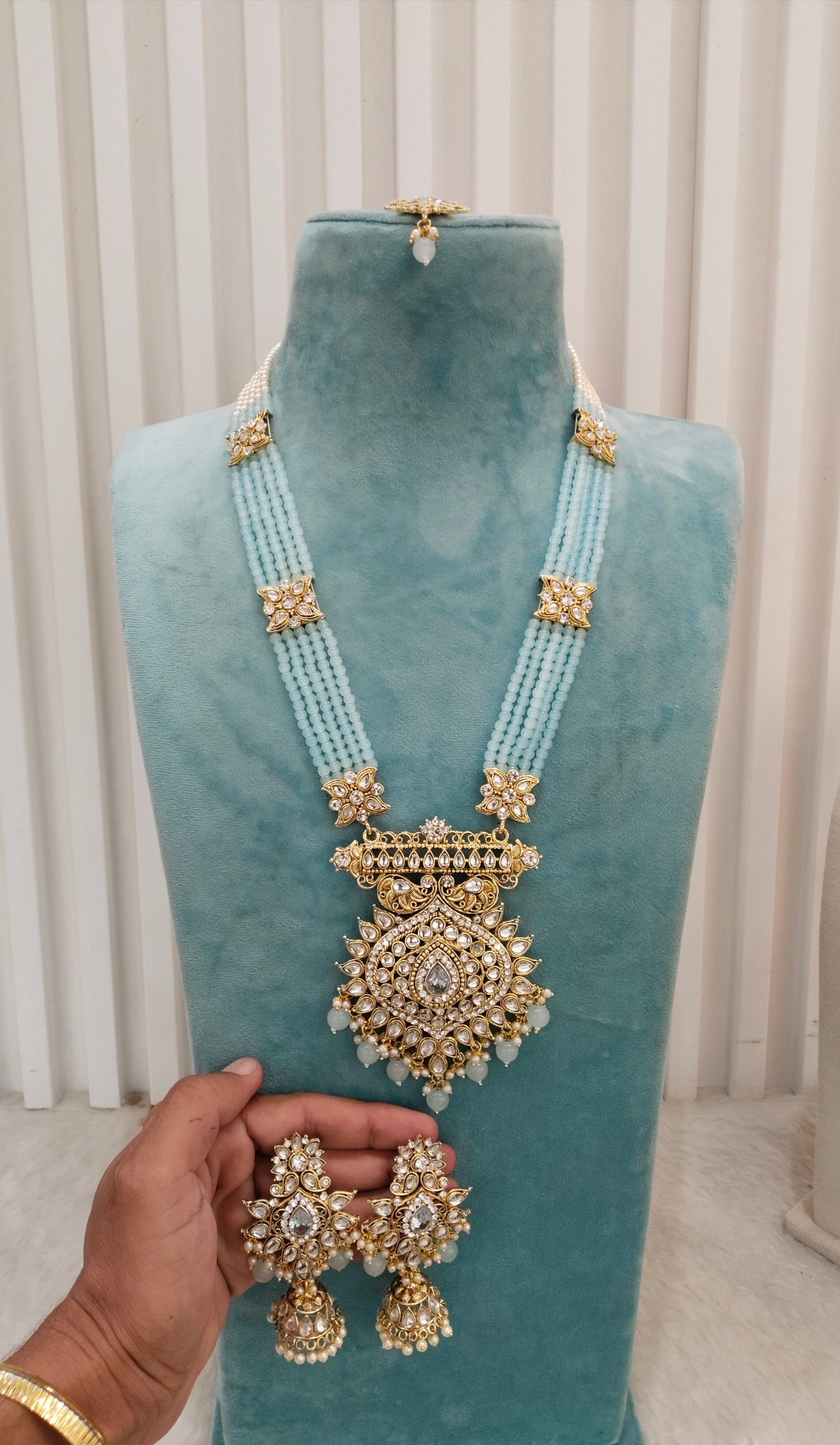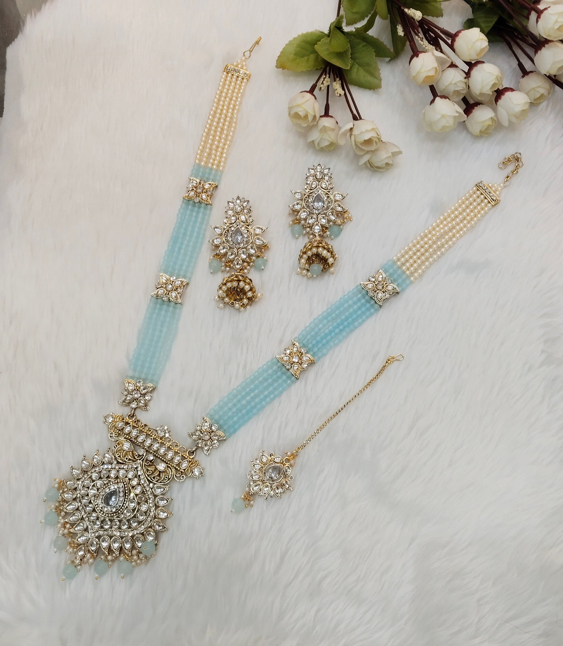 Sea Green Kundan Rani Haar Indian Jewelry Set