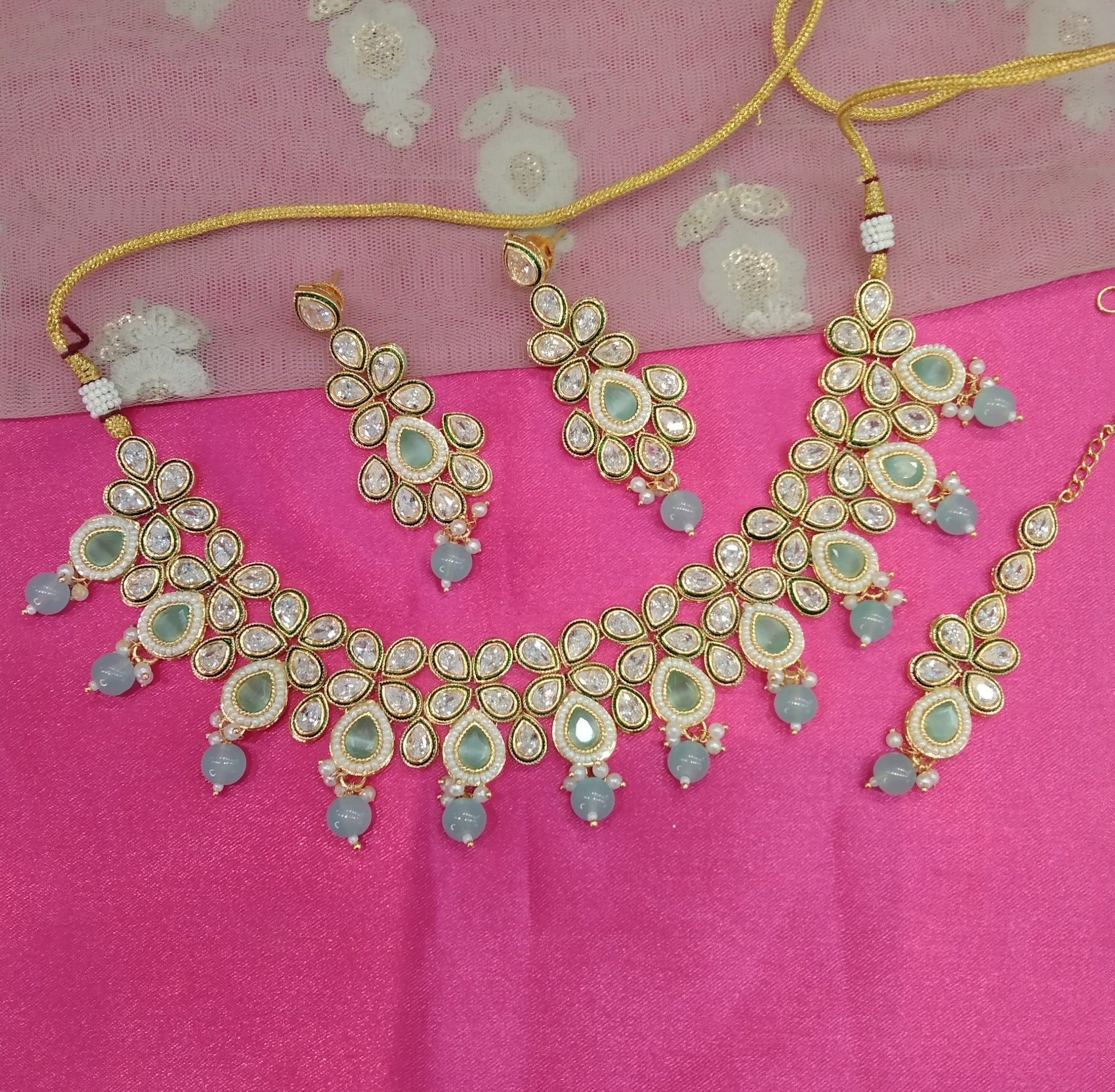 Sea Green Necklace Kundan Jewellery Swaziland Set