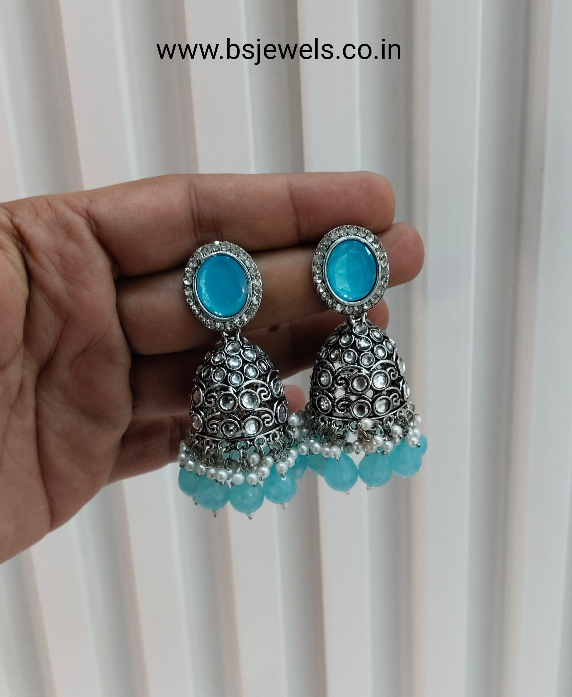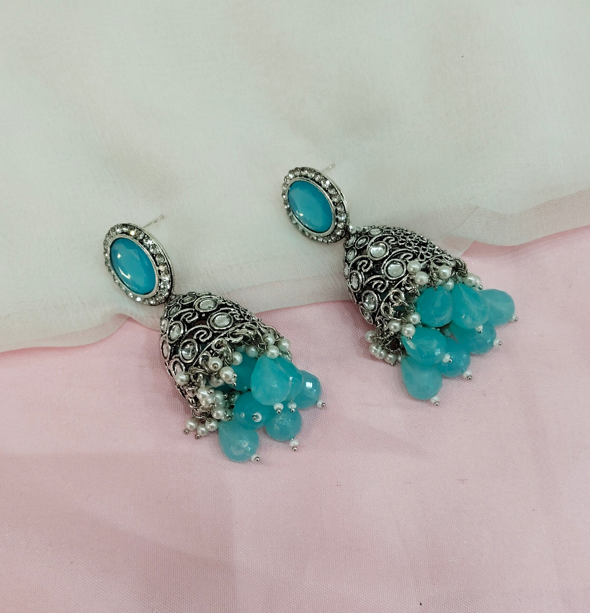 Sea Green Oxidized Metal Denber Jhumka Earrings Set