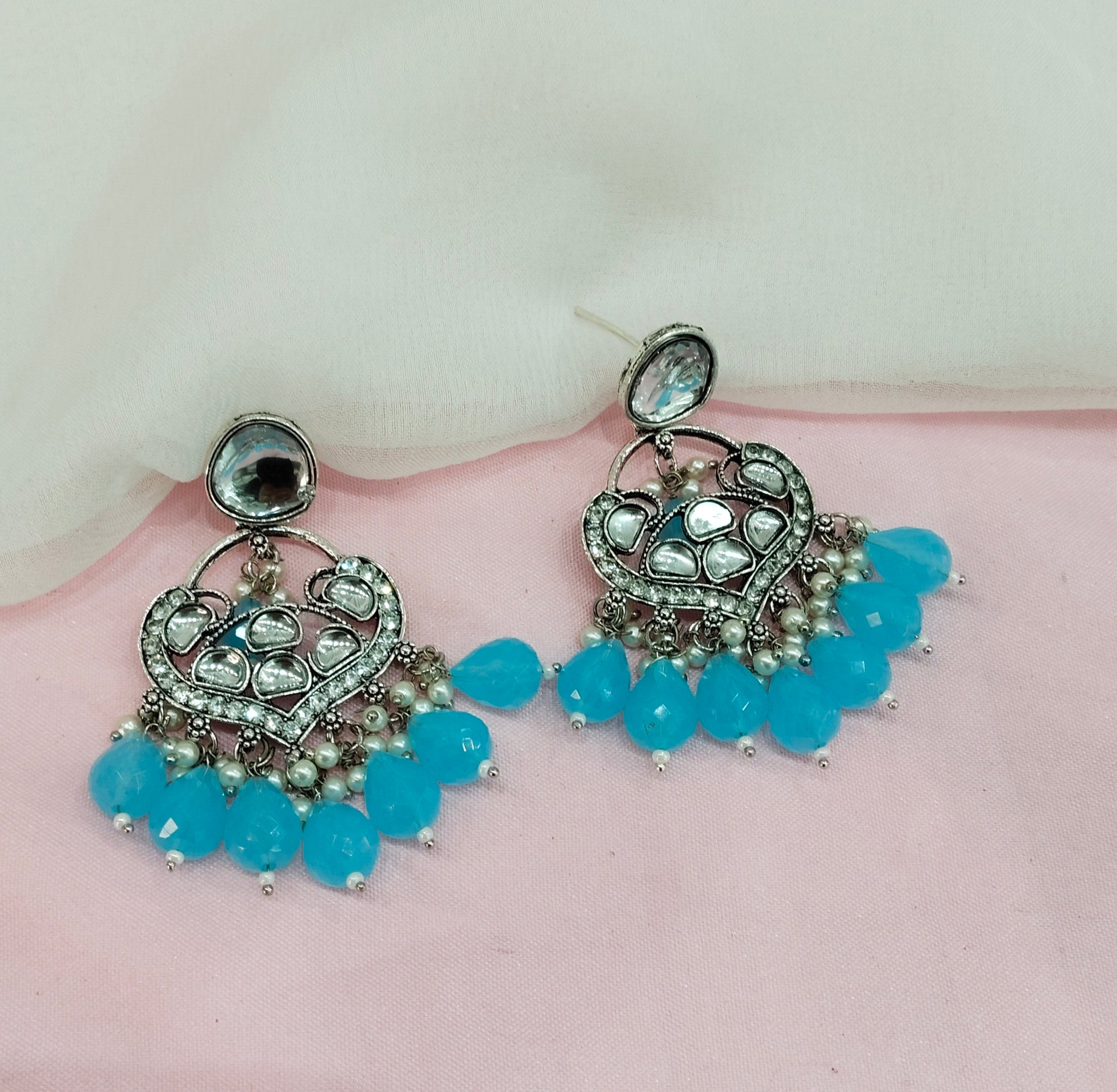 Sea Green Oxidized Metal Pushpa Earrings Set