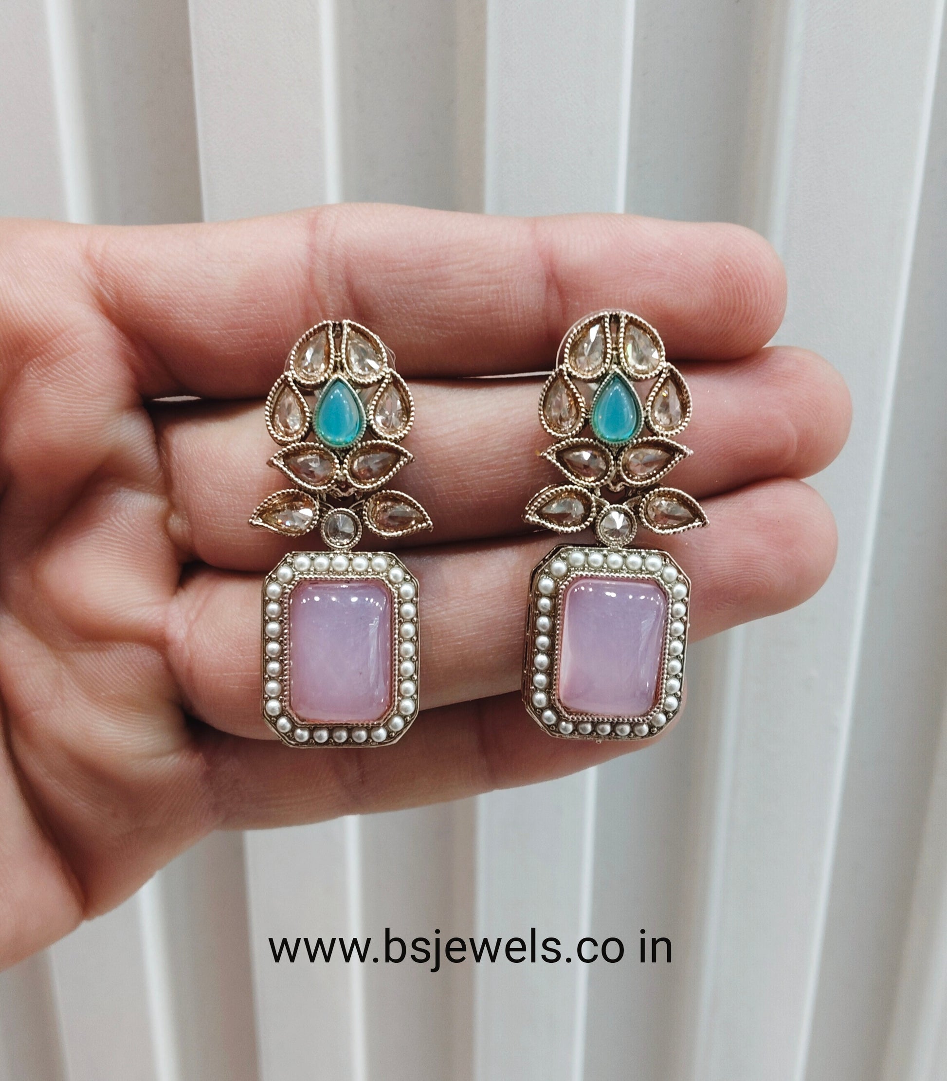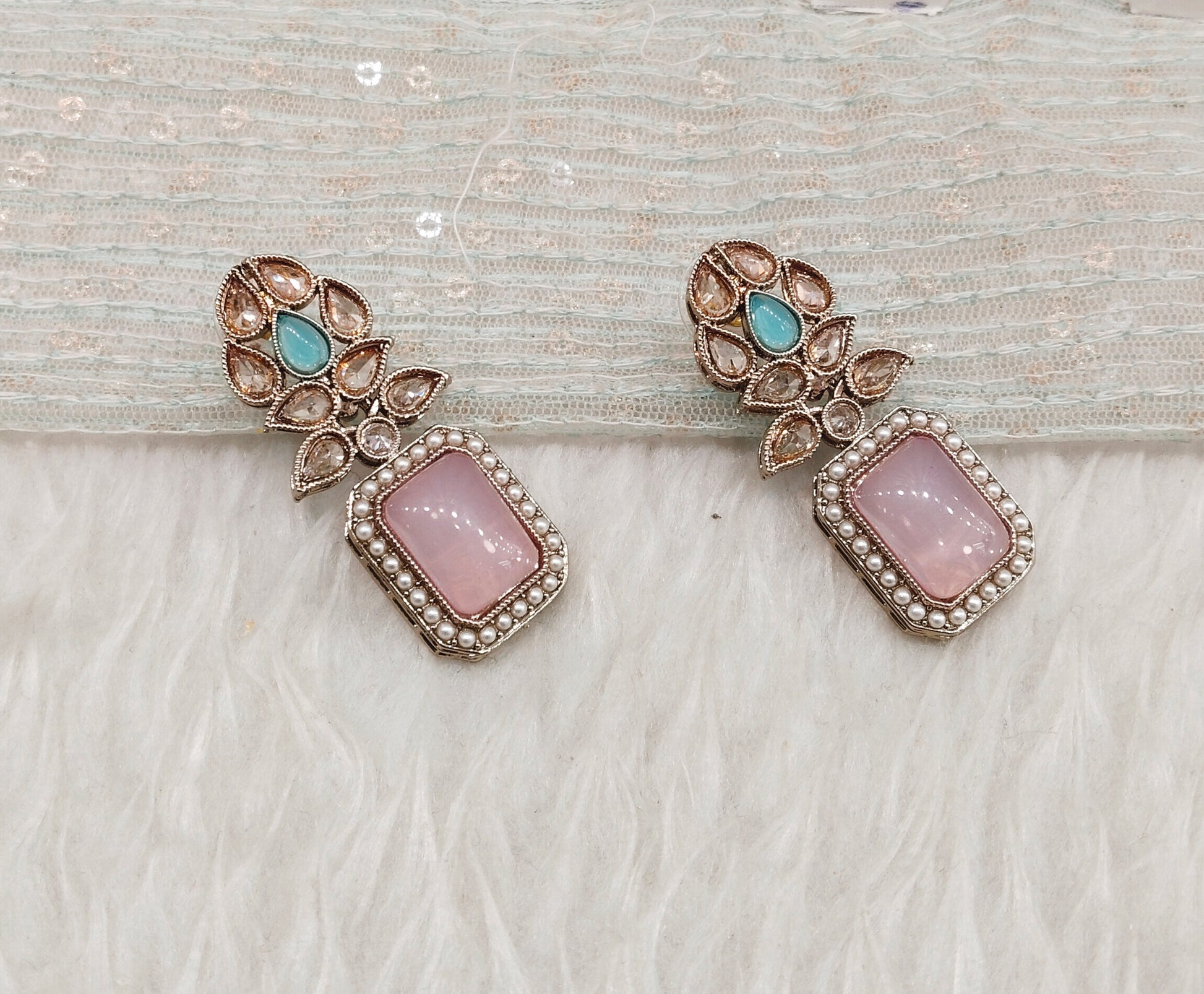 Sea Green Pink Antique Gold Bollywood Fine Earrings