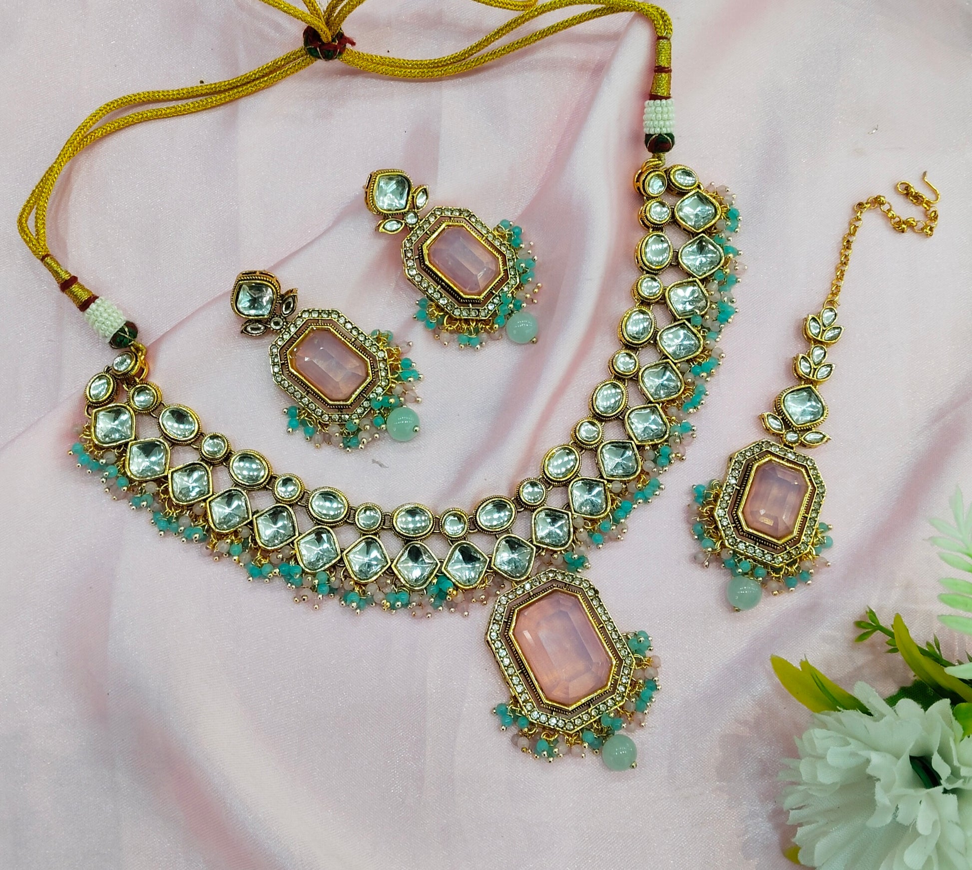 Sea Green Pink Kundan Necklace Jewellery Legend Set