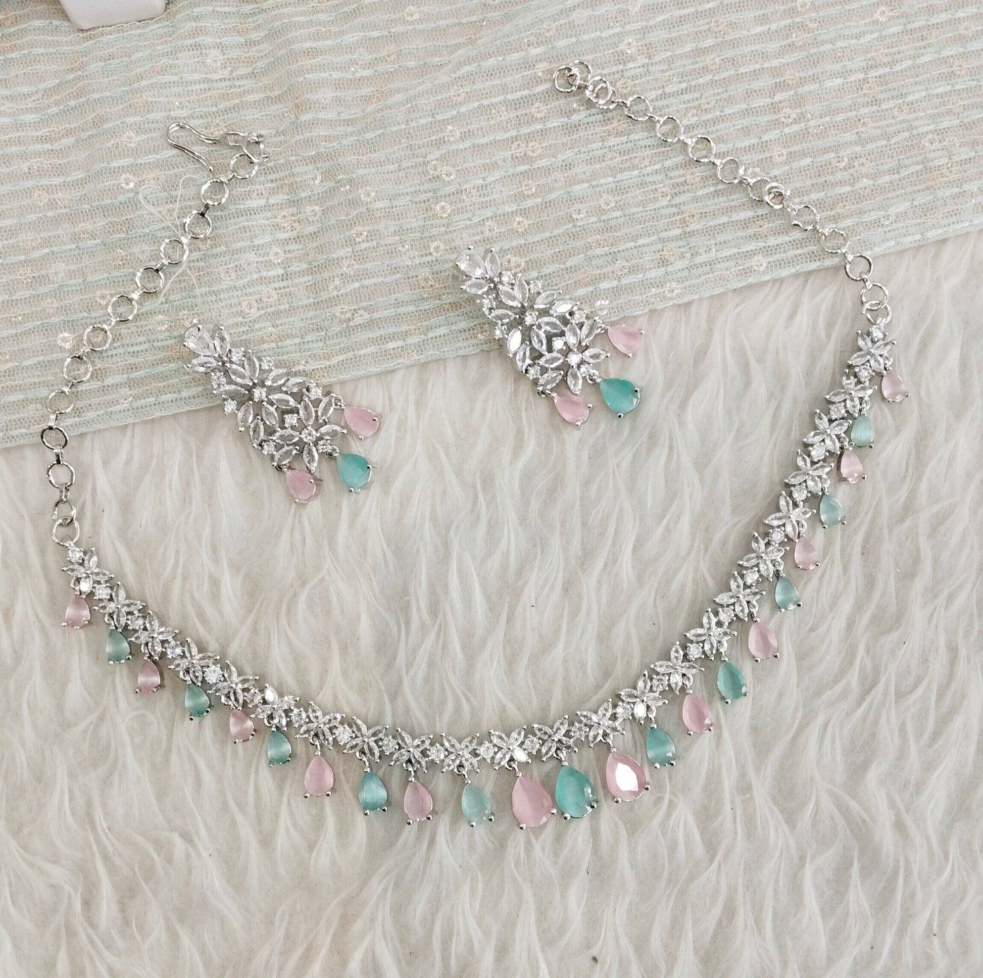 Sea Green Pink Silver CZ Necklace Jewellery Marker Set