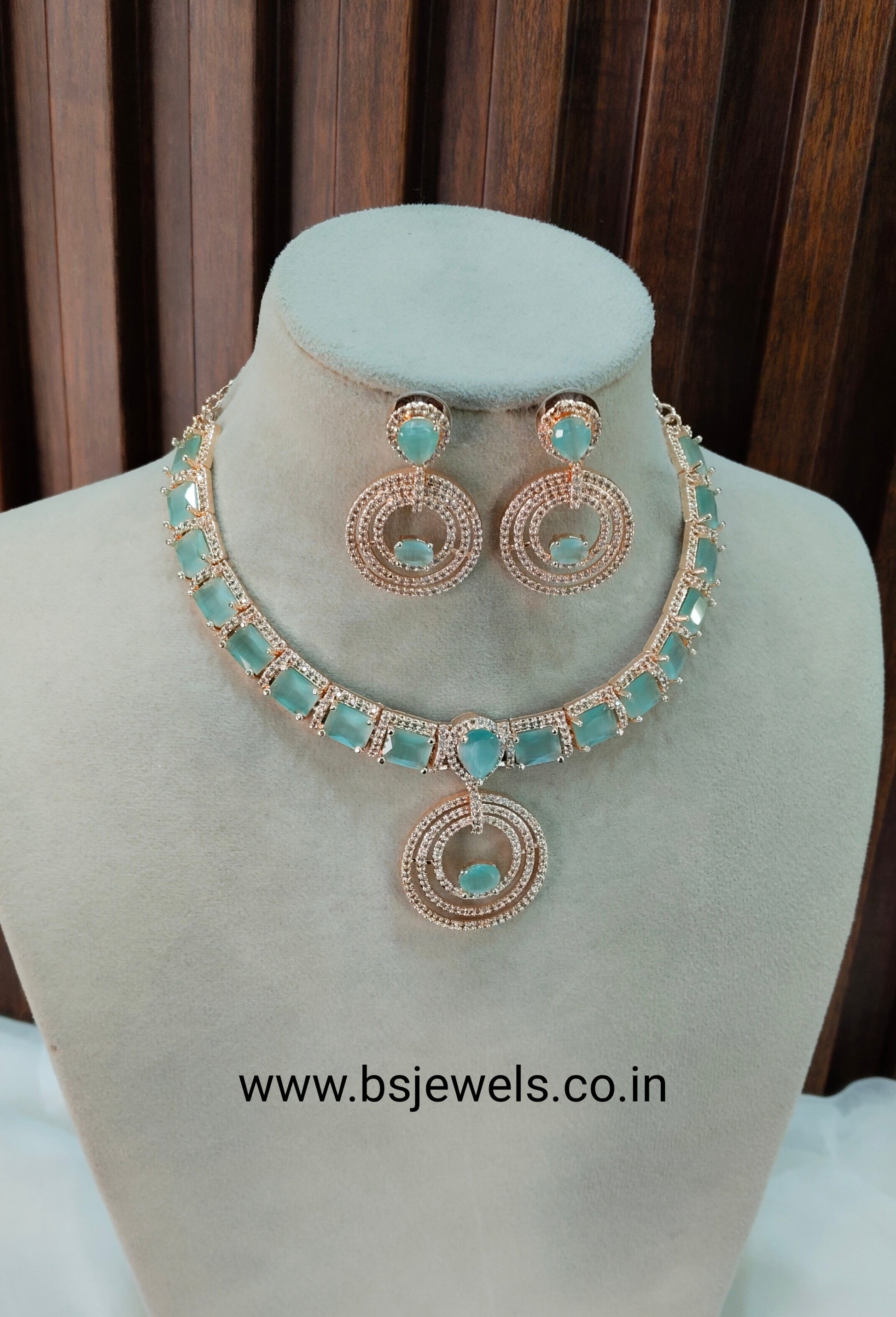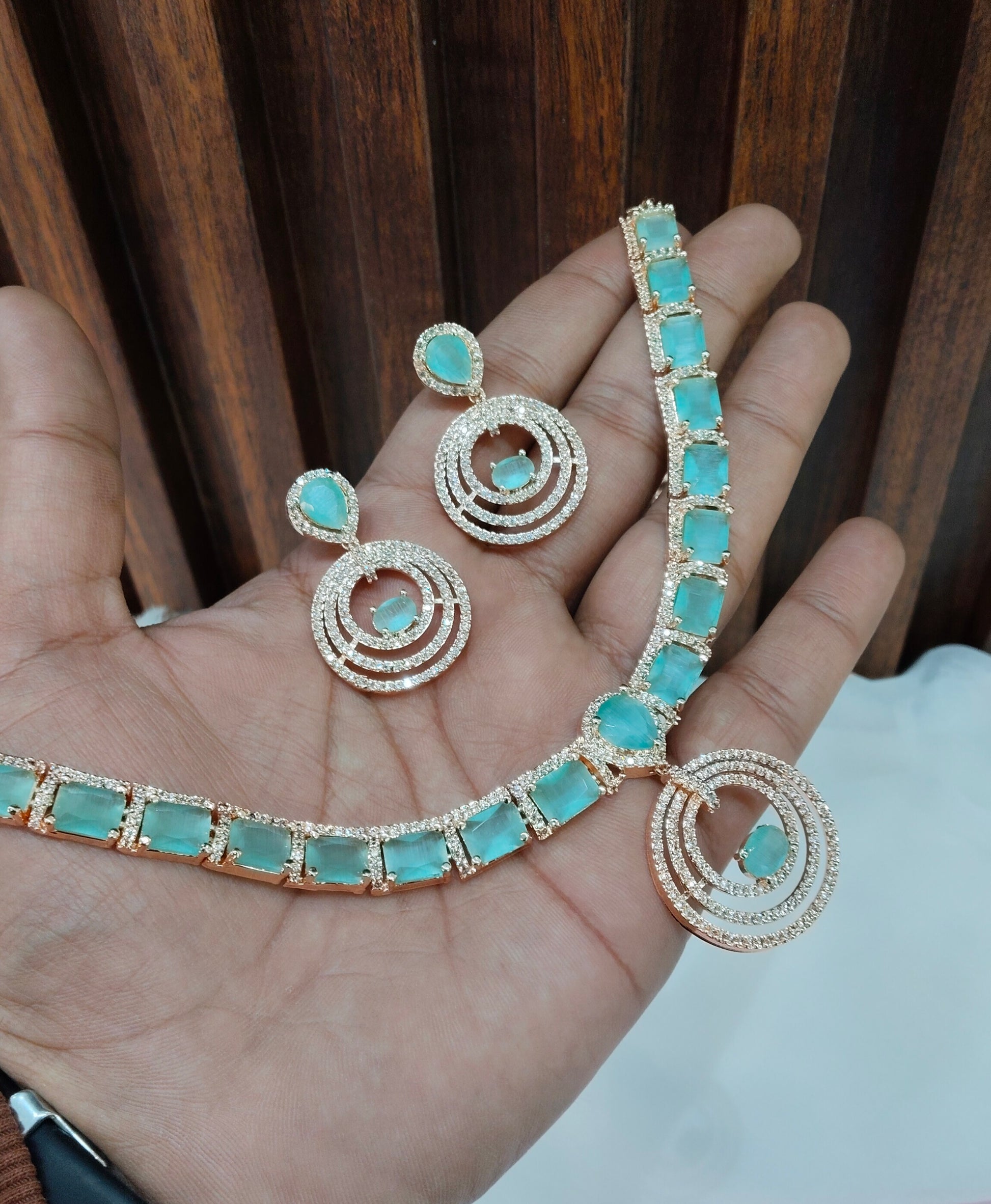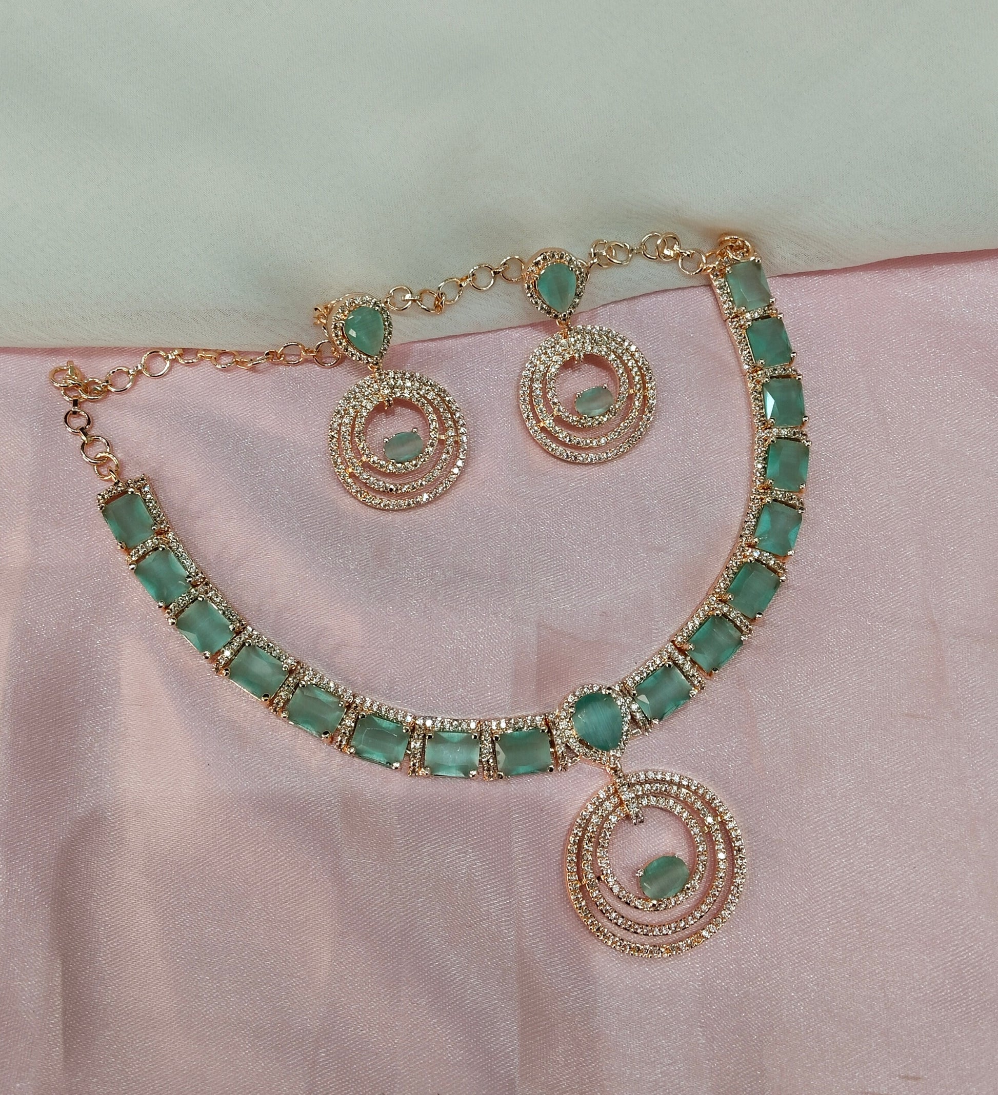 Sea Green Rose CZ Necklace Jewellery Republic Set
