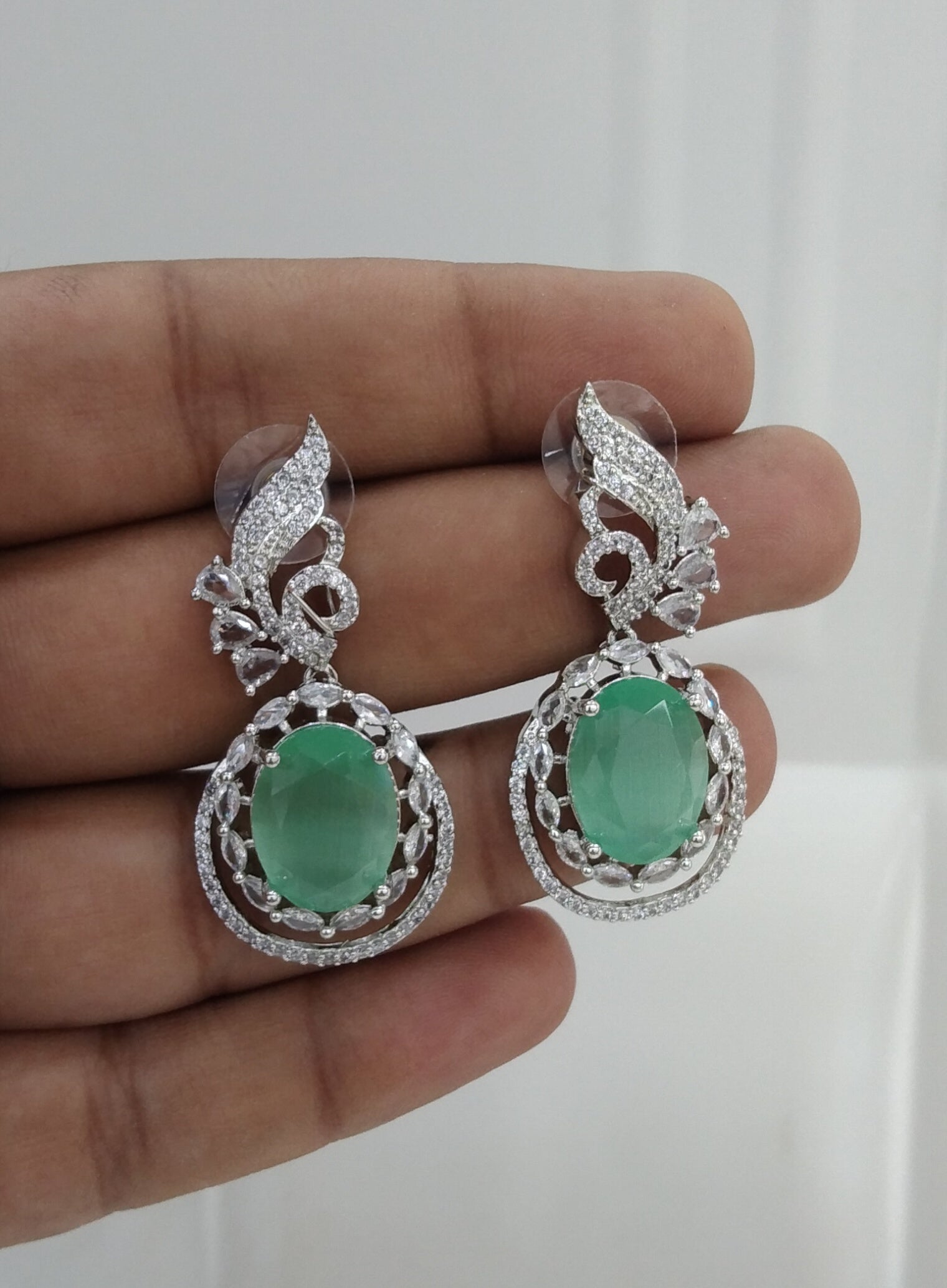 Sea Green Silver Cz American Diamond Earrings Kiran Jewellery Online
