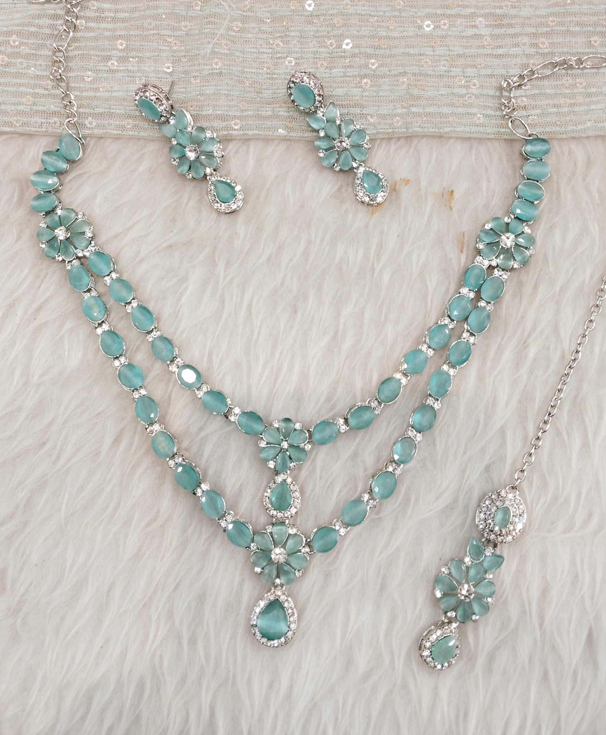 Pista Silver CZ Necklace Jewellery Harteij Set