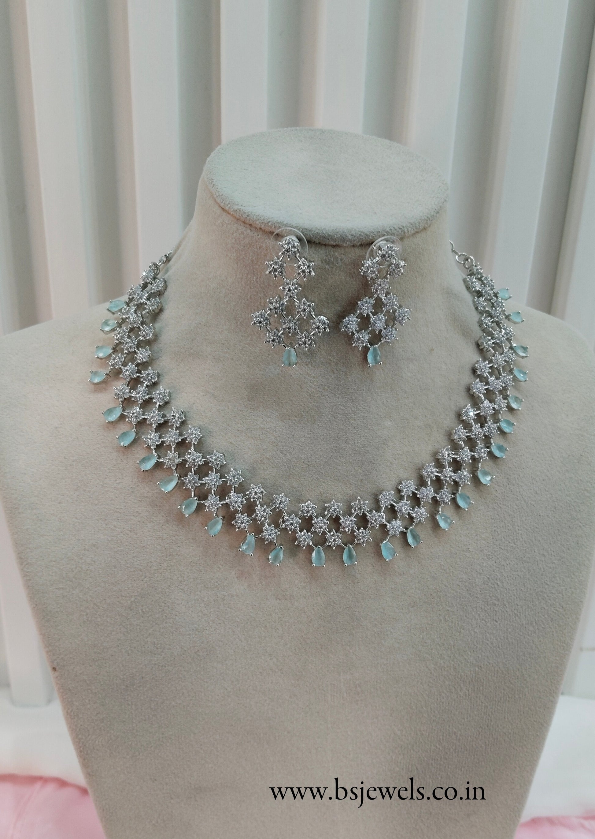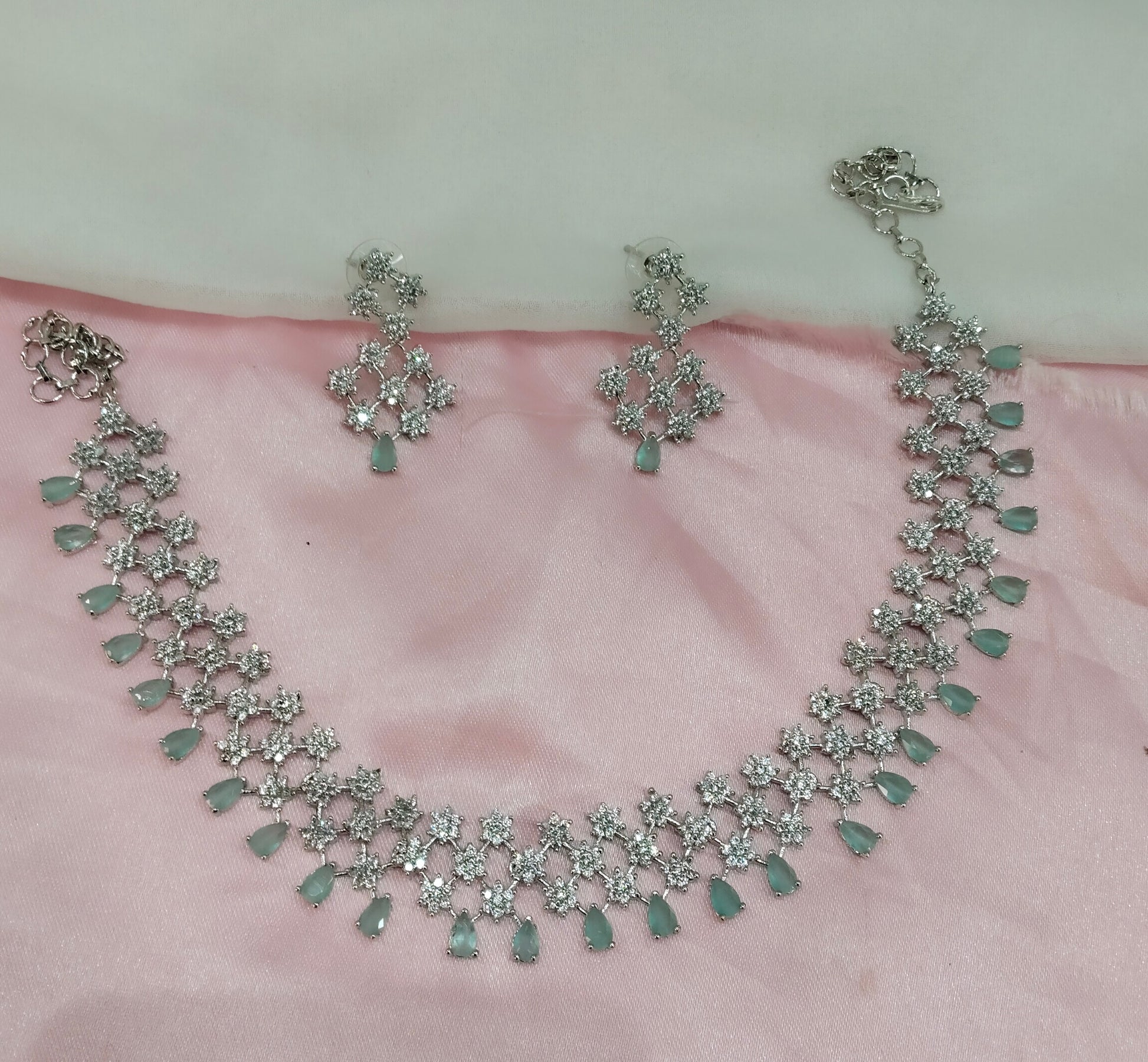 Sea Green Silver CZ Necklace Jewellery Levittown Set