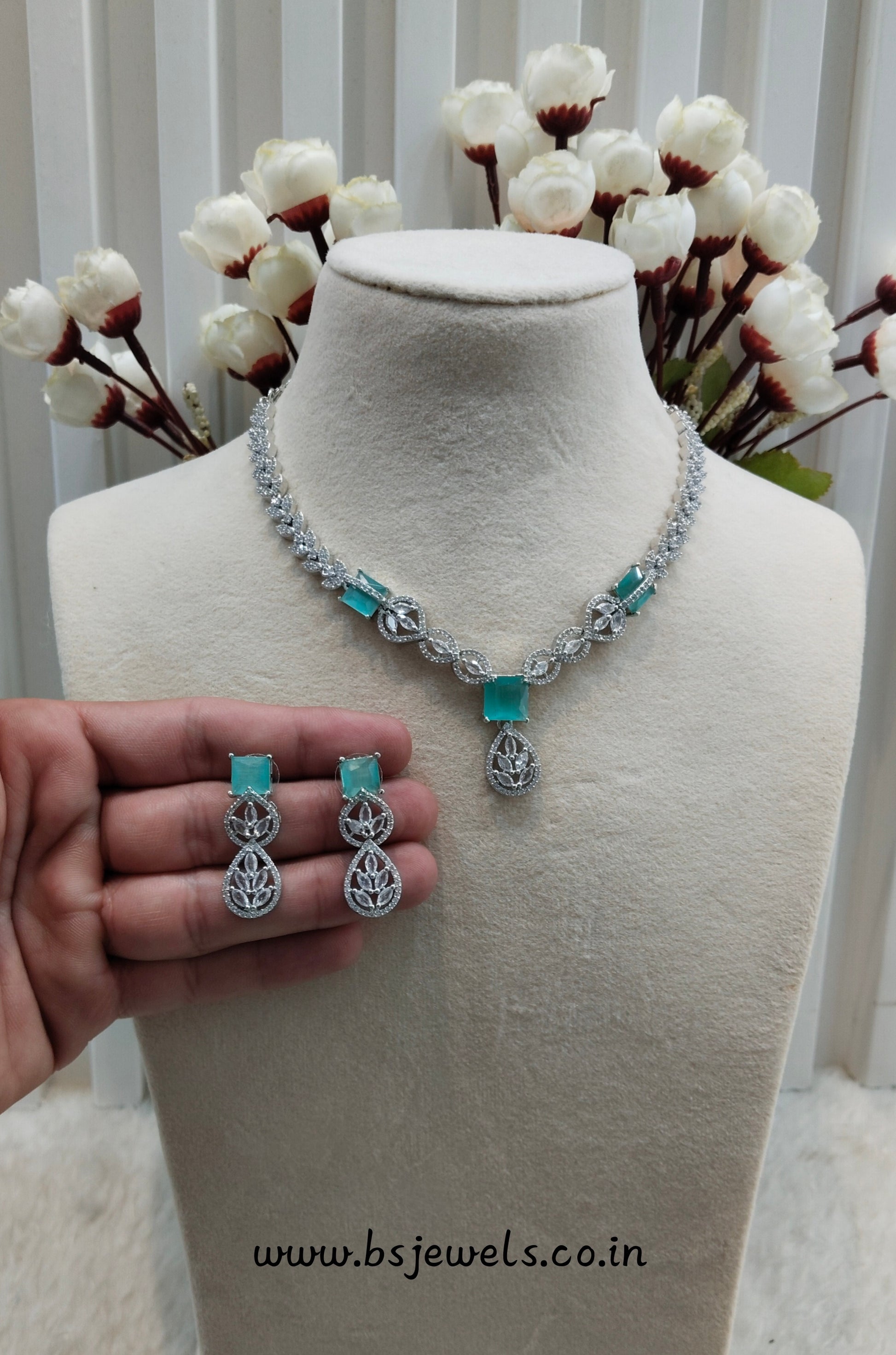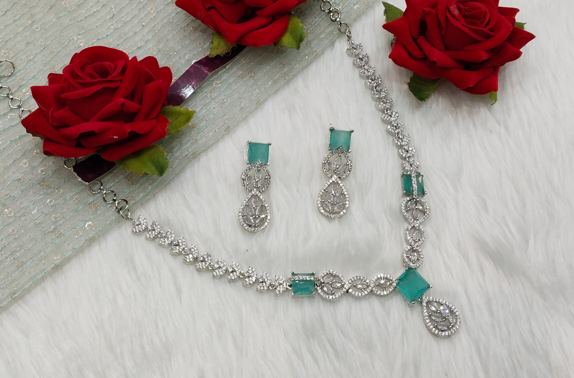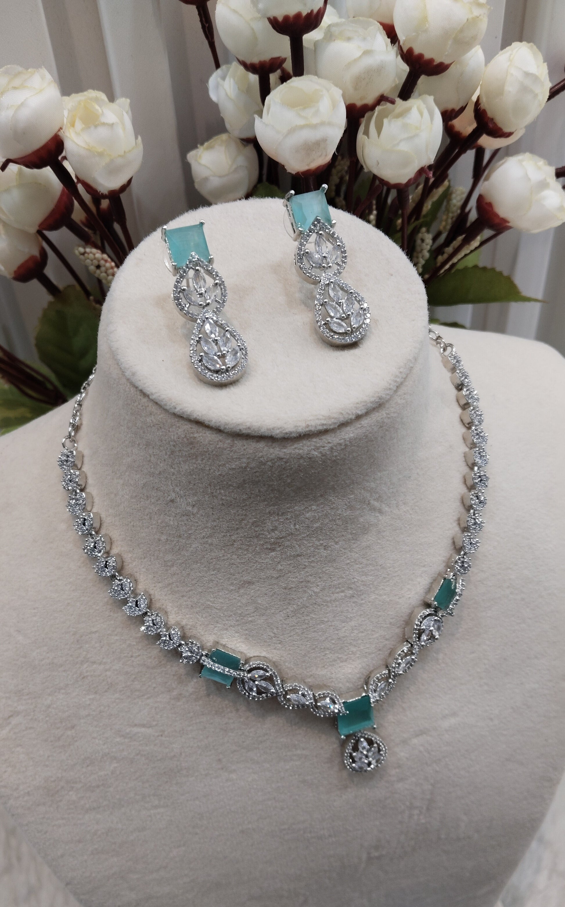 Sea Green Silver CZ Necklace Jewellery Peterson Set