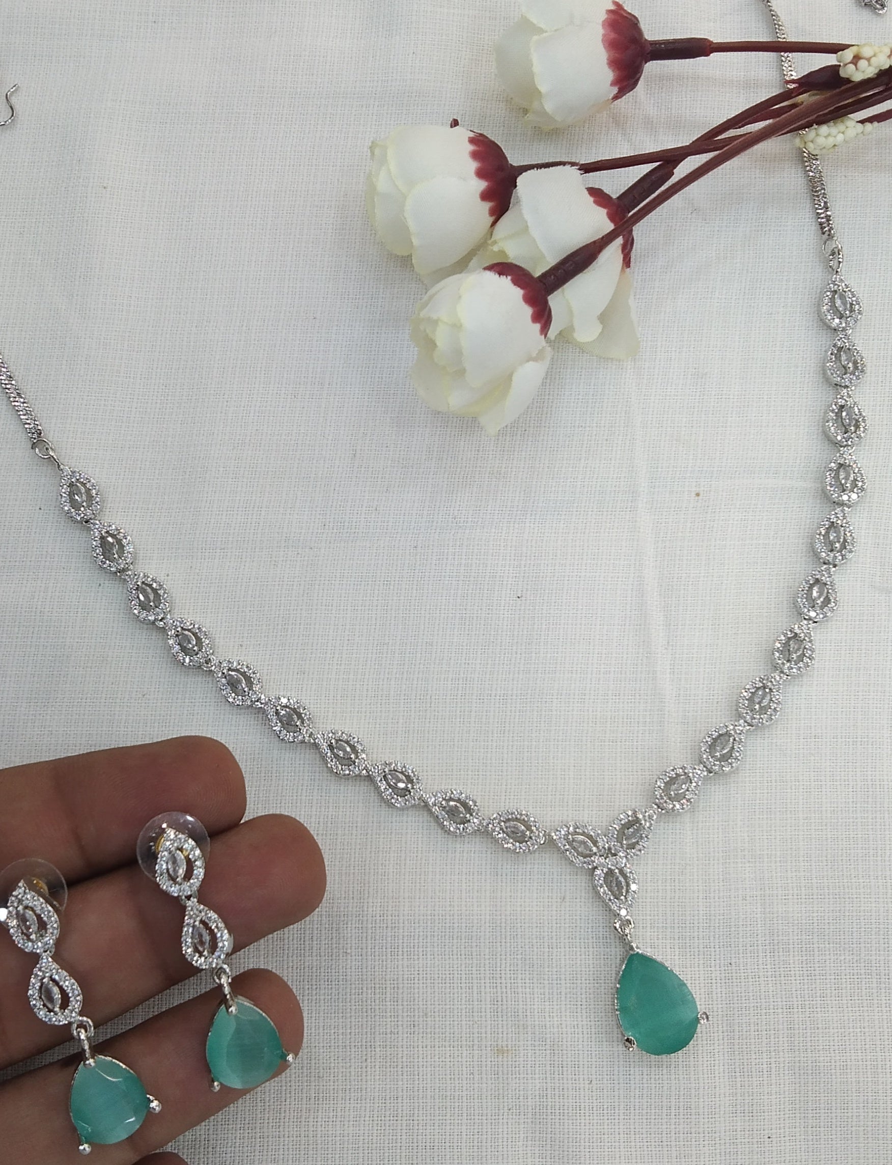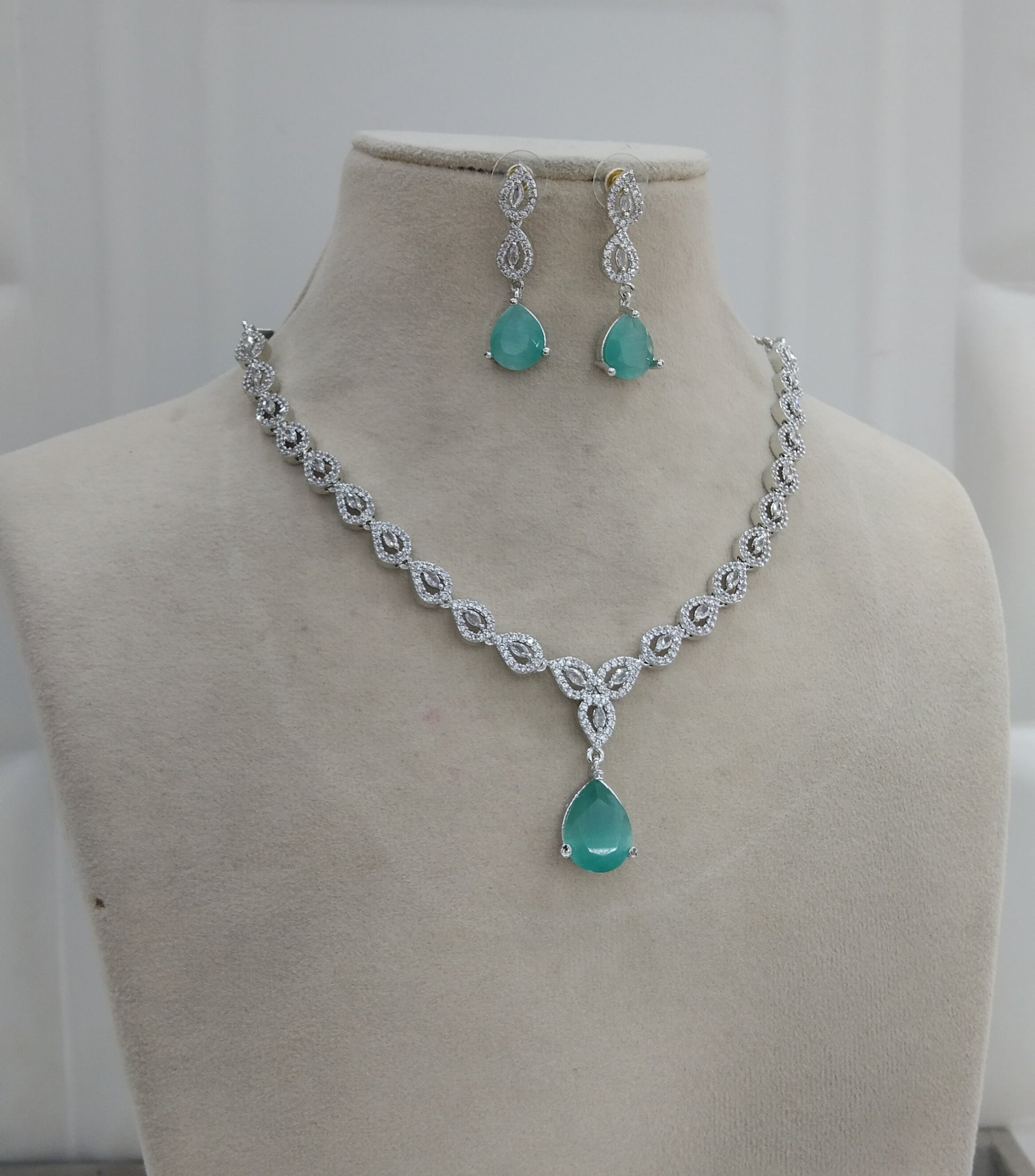 Silver American Diamond Sea Green Cz Necklace Jewellery Anu Set