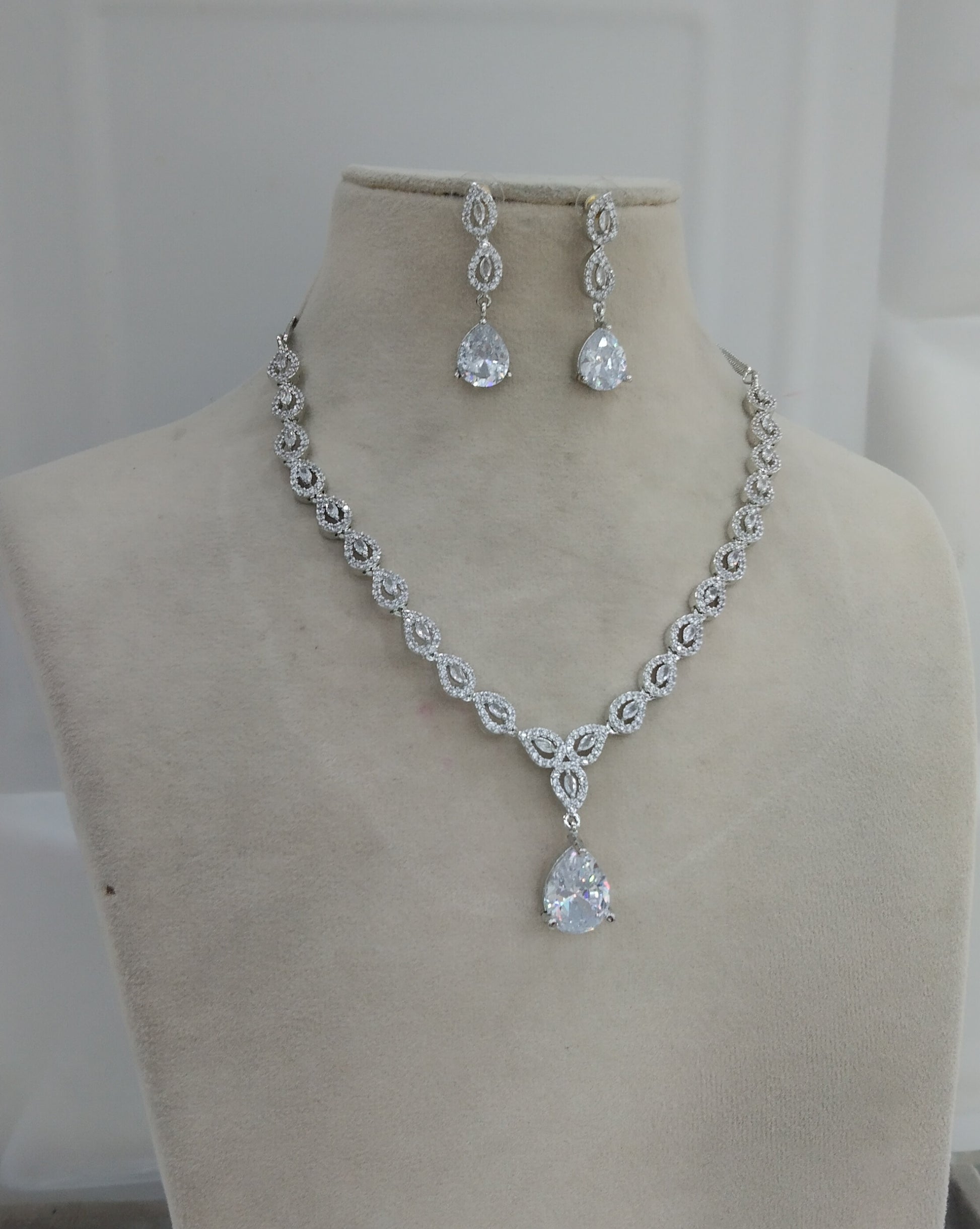 Silver American Diamond White Cz Necklace Jewellery Anu Set