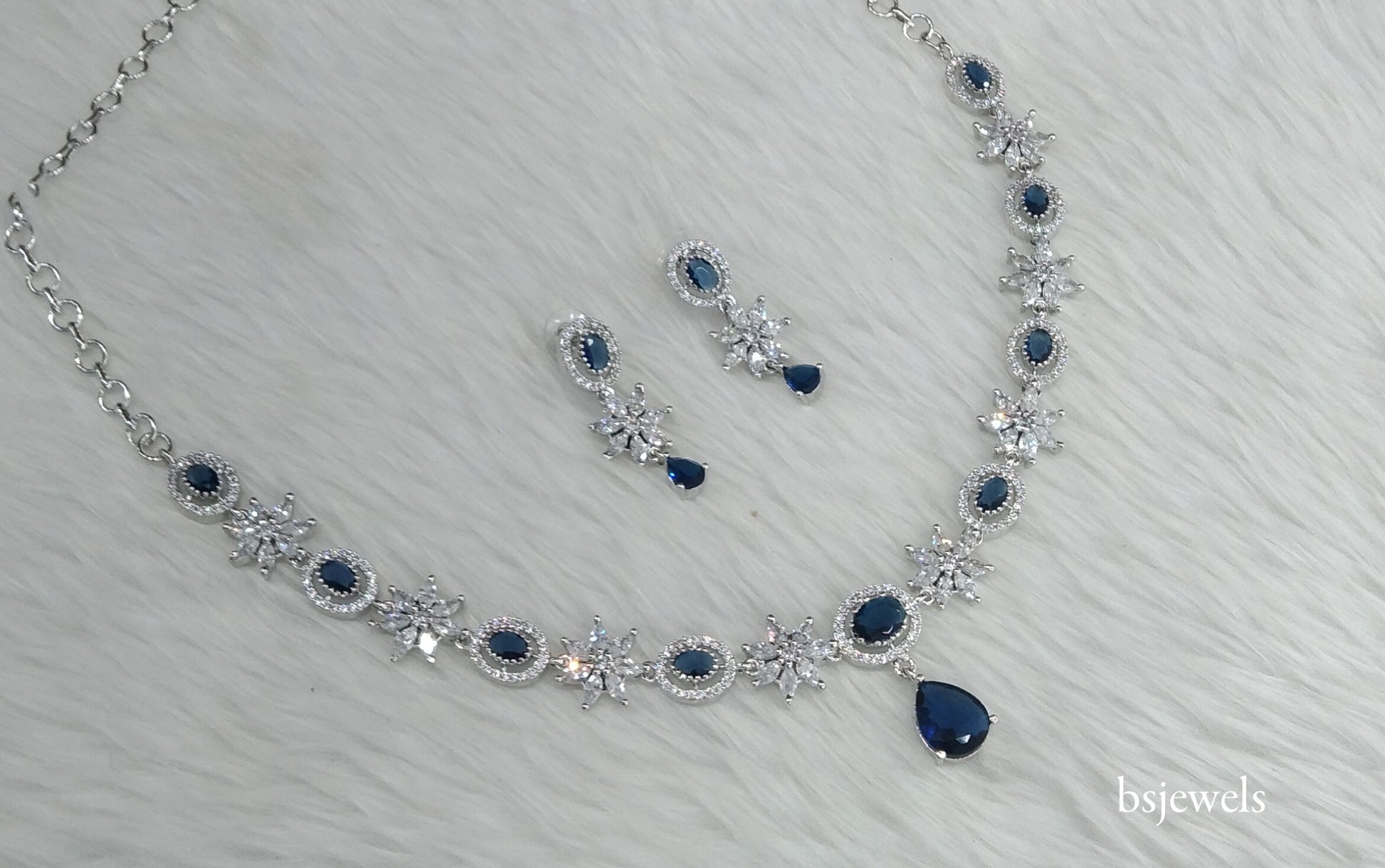 Silver Blue American Diamond Ad Tania Necklace Set