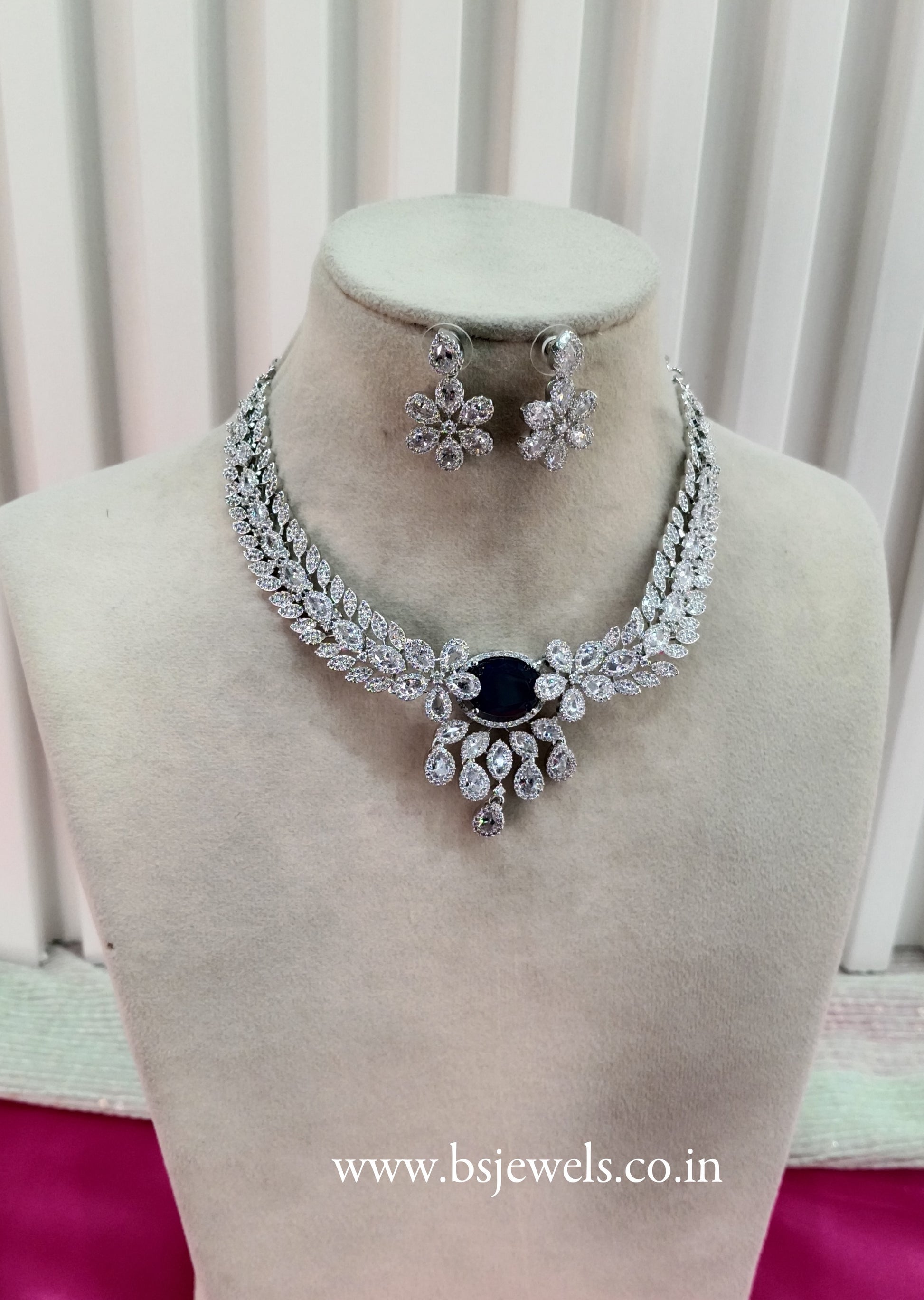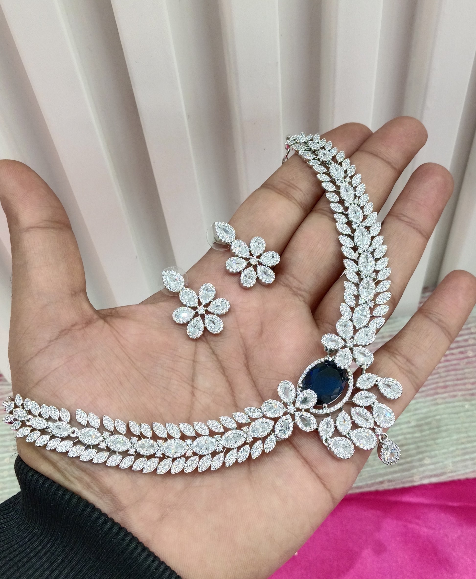 Silver Blue American Diamond Cz Necklace Jewellery Daljit Set