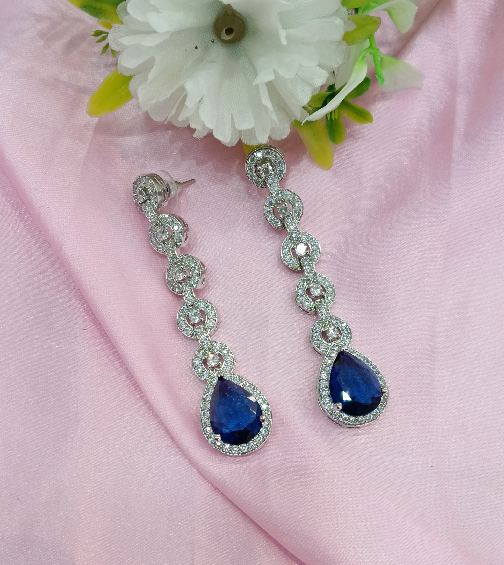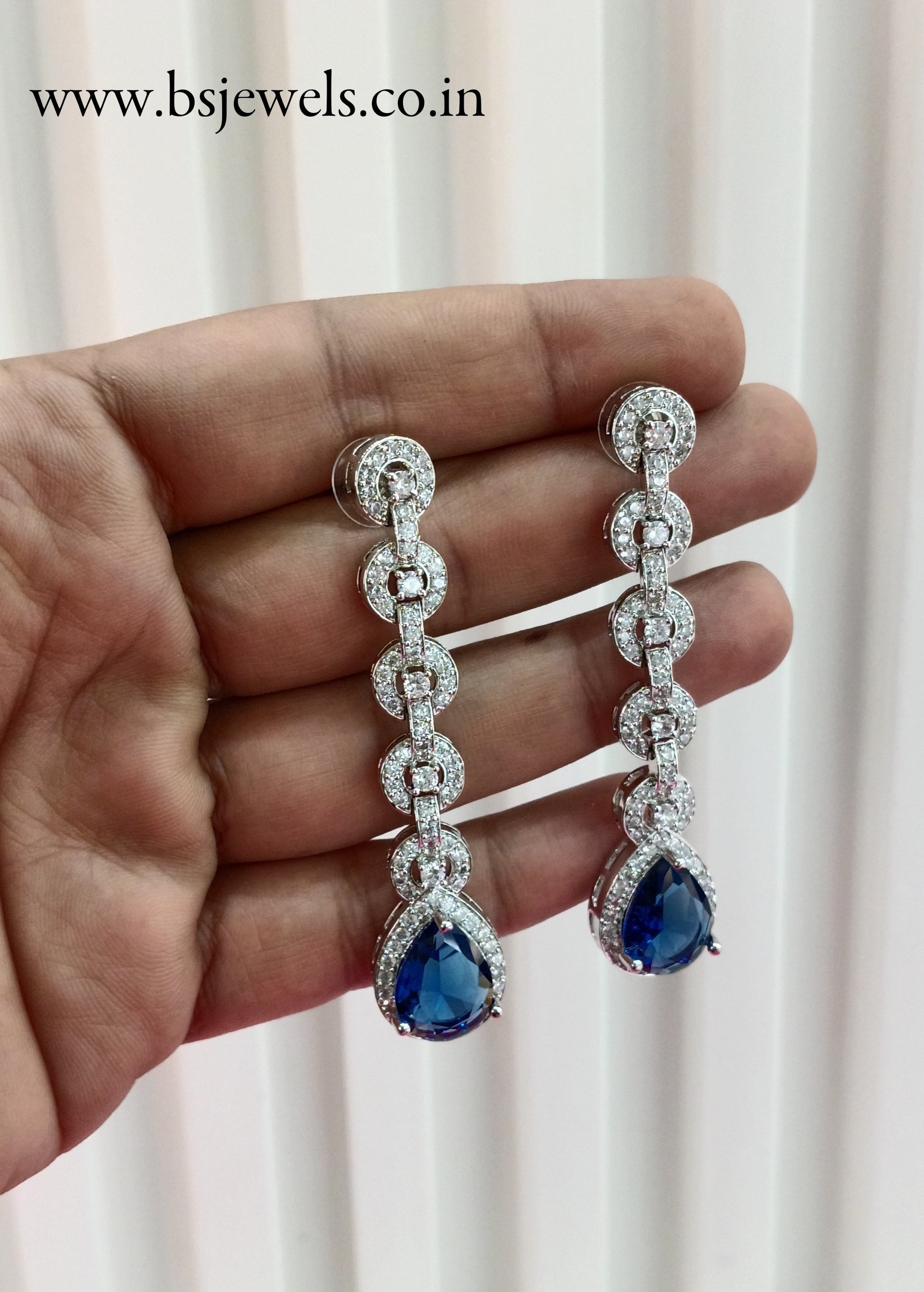 Silver Blue Cz American Diamond Earrings Prince Jewellery Online